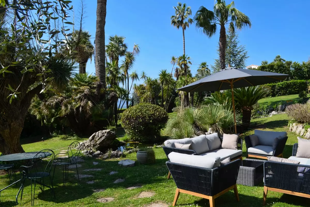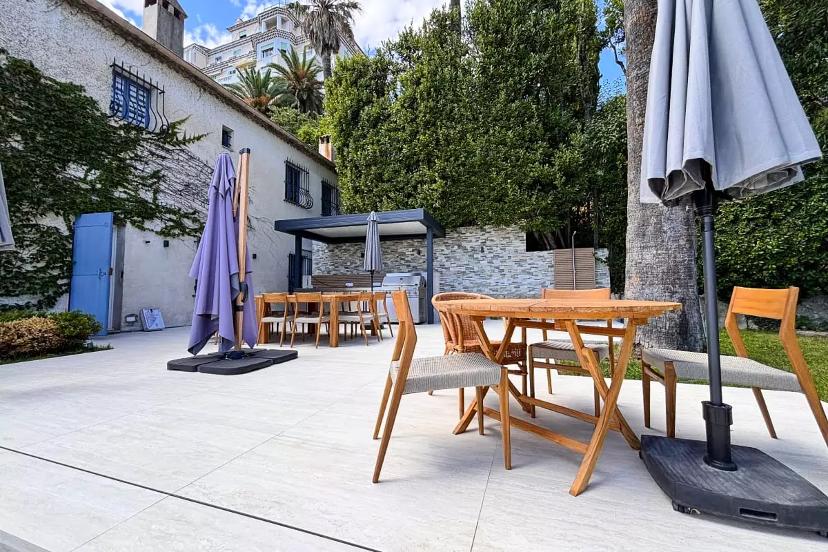 The 2,700m² garden is an oasis of tranquility, and is listed as a historical heritage site. You'll have the privilege of discovering its fascinating history. You can relax by the pool. The sunny terrace, equipped with comfortable deckchairs, elegant garden furniture, and a barbecue, is the perfect place to relax and recharge under the Côte d'Azur sun.