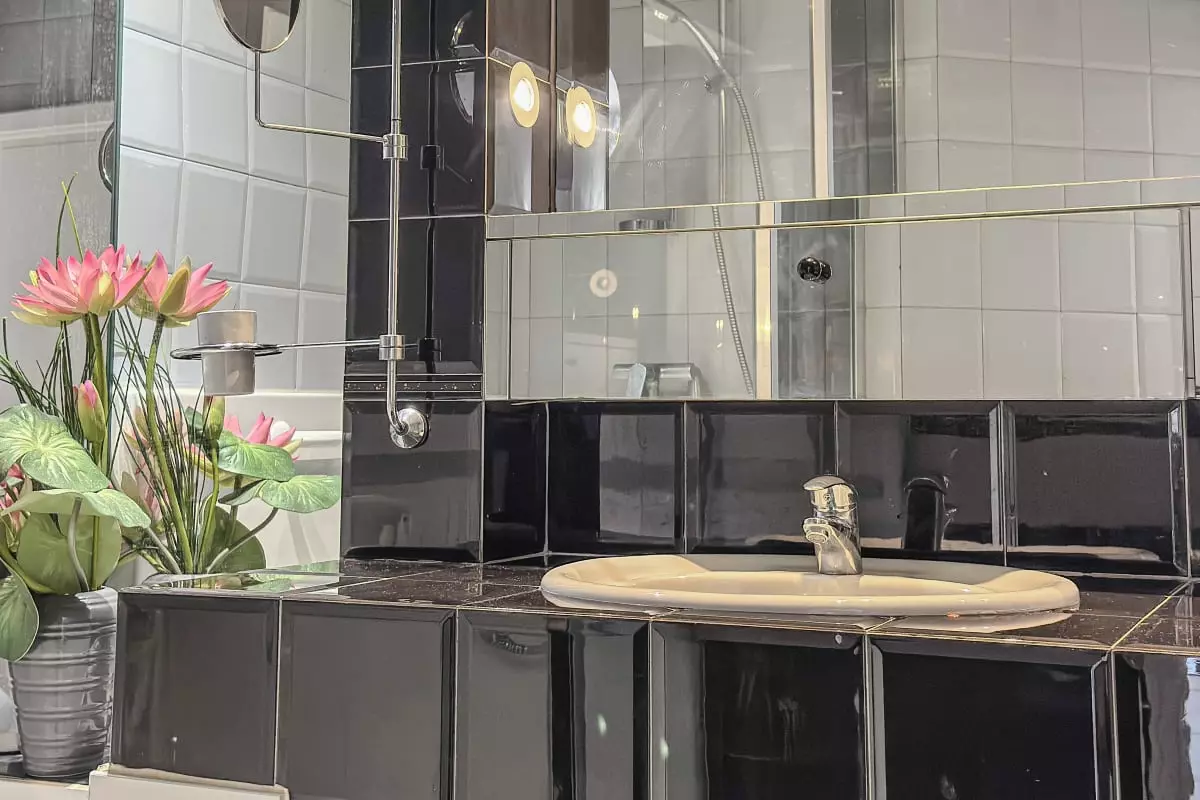 - a beautiful bathroom with bathtub: