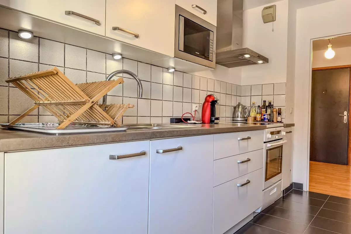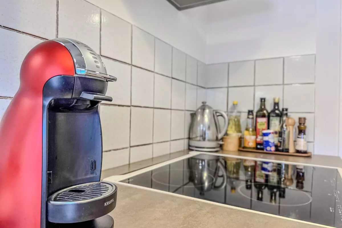 - a fully equipped independent kitchen: cooker with induction hob and oven, Dolce Gusto coffee maker (capsules not supplied), kettle, fridge/freezer, kitchen utensils;