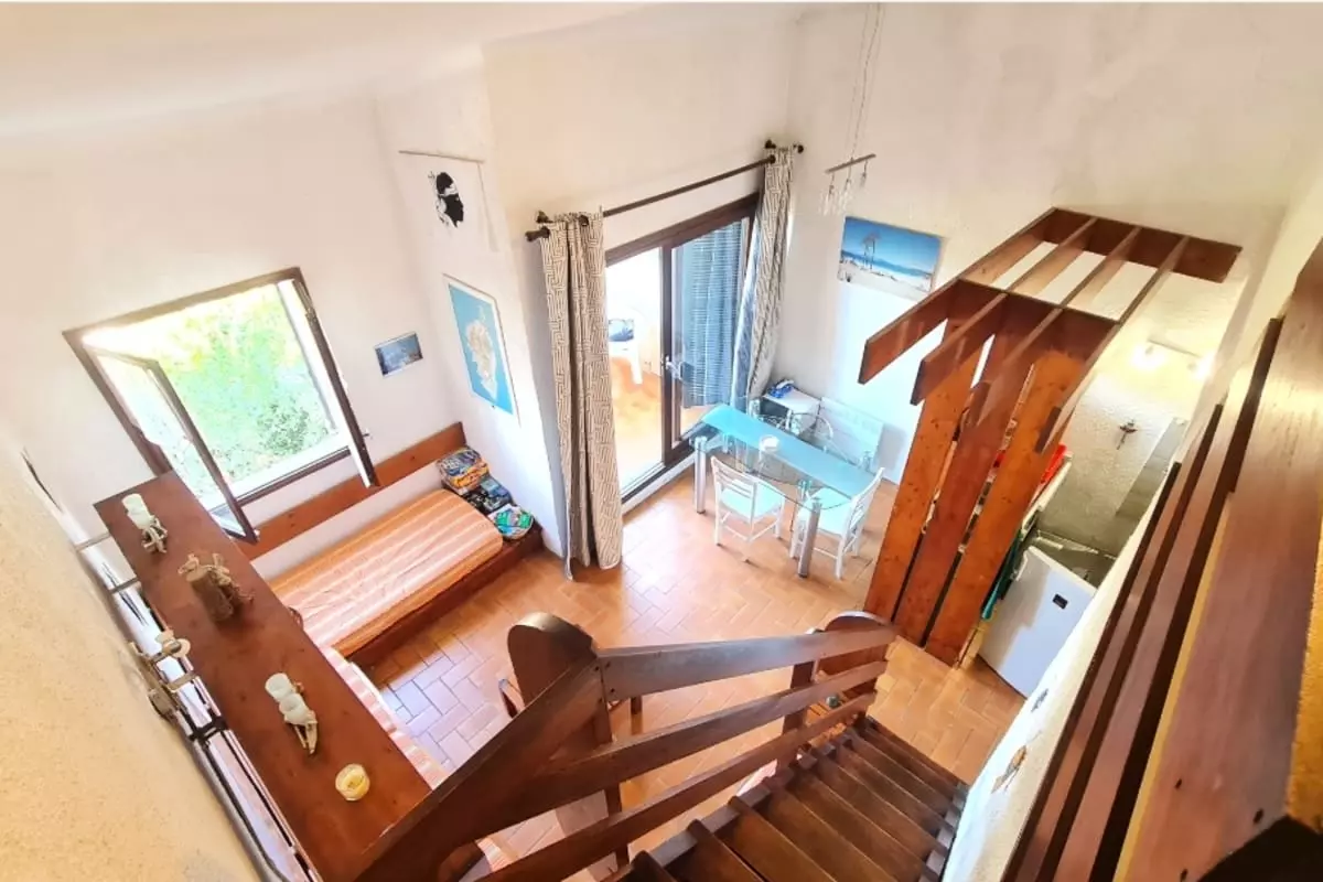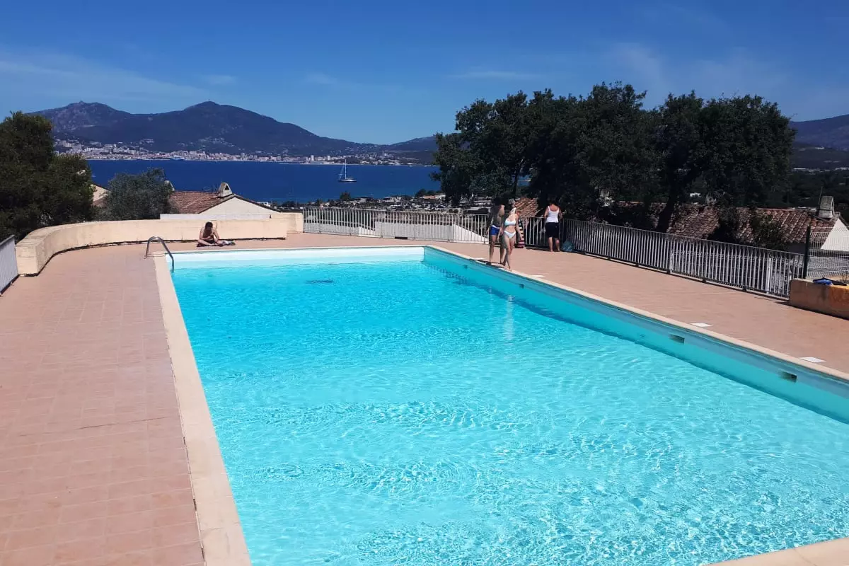 You can also enjoy the balcony with views of the surrounding area, perfect for a moment of relaxation. The house is part of a residence with a shared swimming pool, ideal for cooling off under the Corsican sun. For sports enthusiasts, a tennis court is also available.
