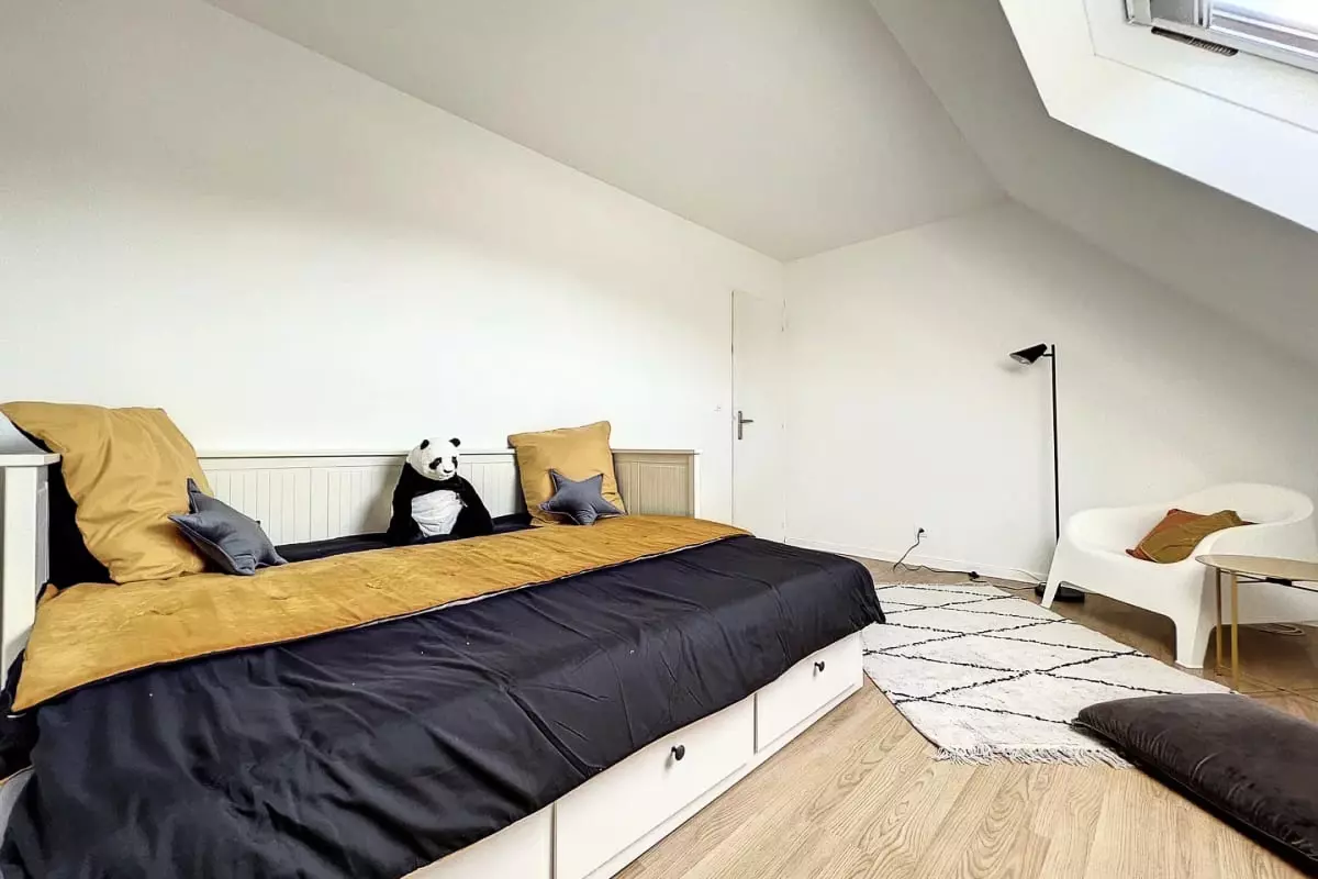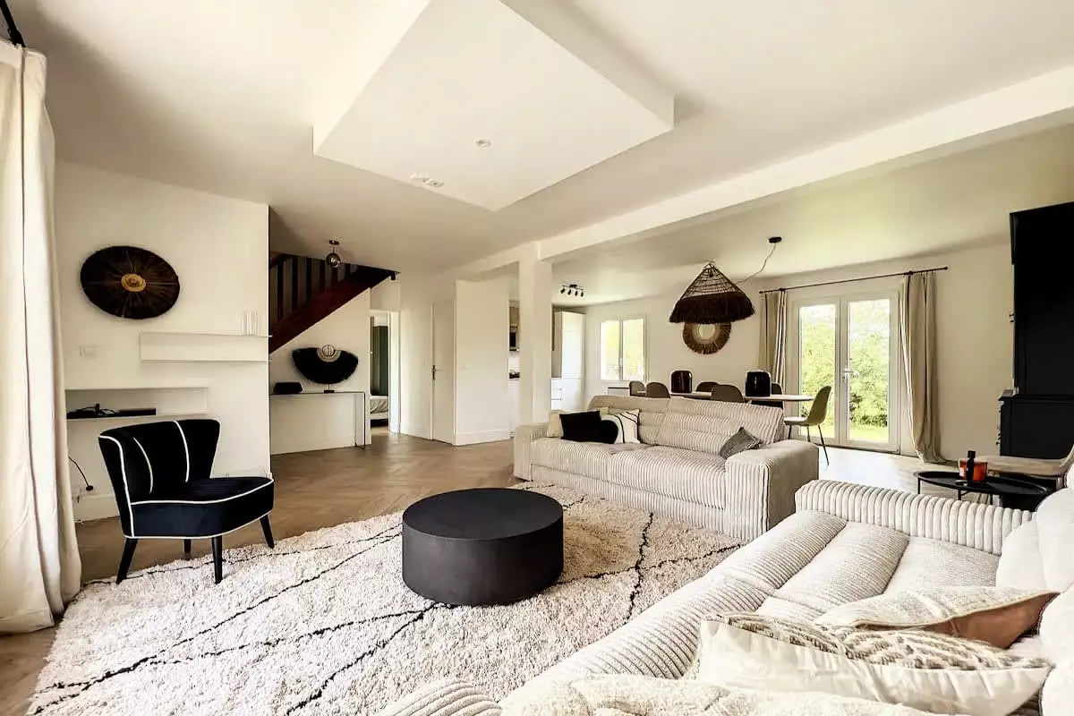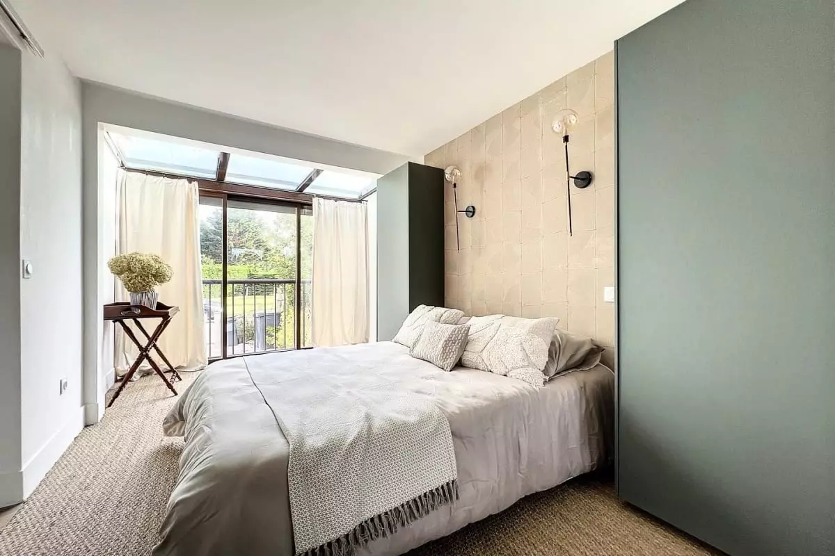 The bedrooms are equipped with premium bedding, ensuring restful nights of rest. Each piece of furniture has been carefully selected for its quality, using noble materials, to create a space that is both warm and elegant. The living room is bathed in natural light and offers a perfect space for relaxing with a television and Wi-Fi.