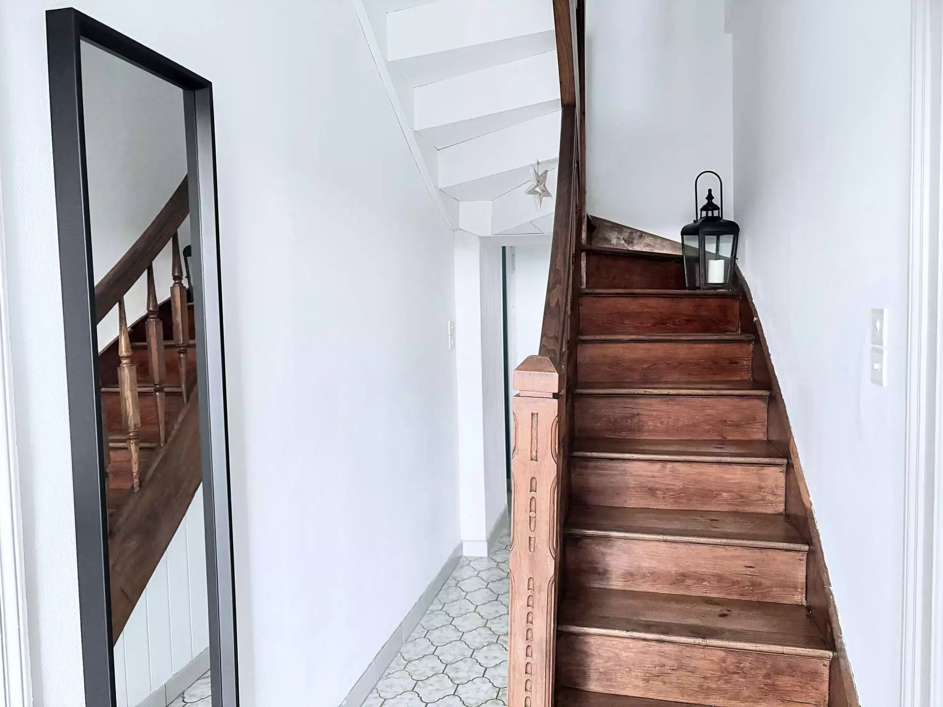 Les Mouettes, a house near the sea, boasts a beautiful sea view, garden, and private parking. 80 m², furnished and equipped for 4 to 5 people. On the ground floor: entrance hall, fitted kitchen and dining area, living room, bathroom, and separate toilet. Upstairs: two bedrooms, a shower room and toilet. Linens are optional. Pets are not allowed. Non-smoking accommodation. Final cleaning included. 4G Internet (Travel Wifi box).