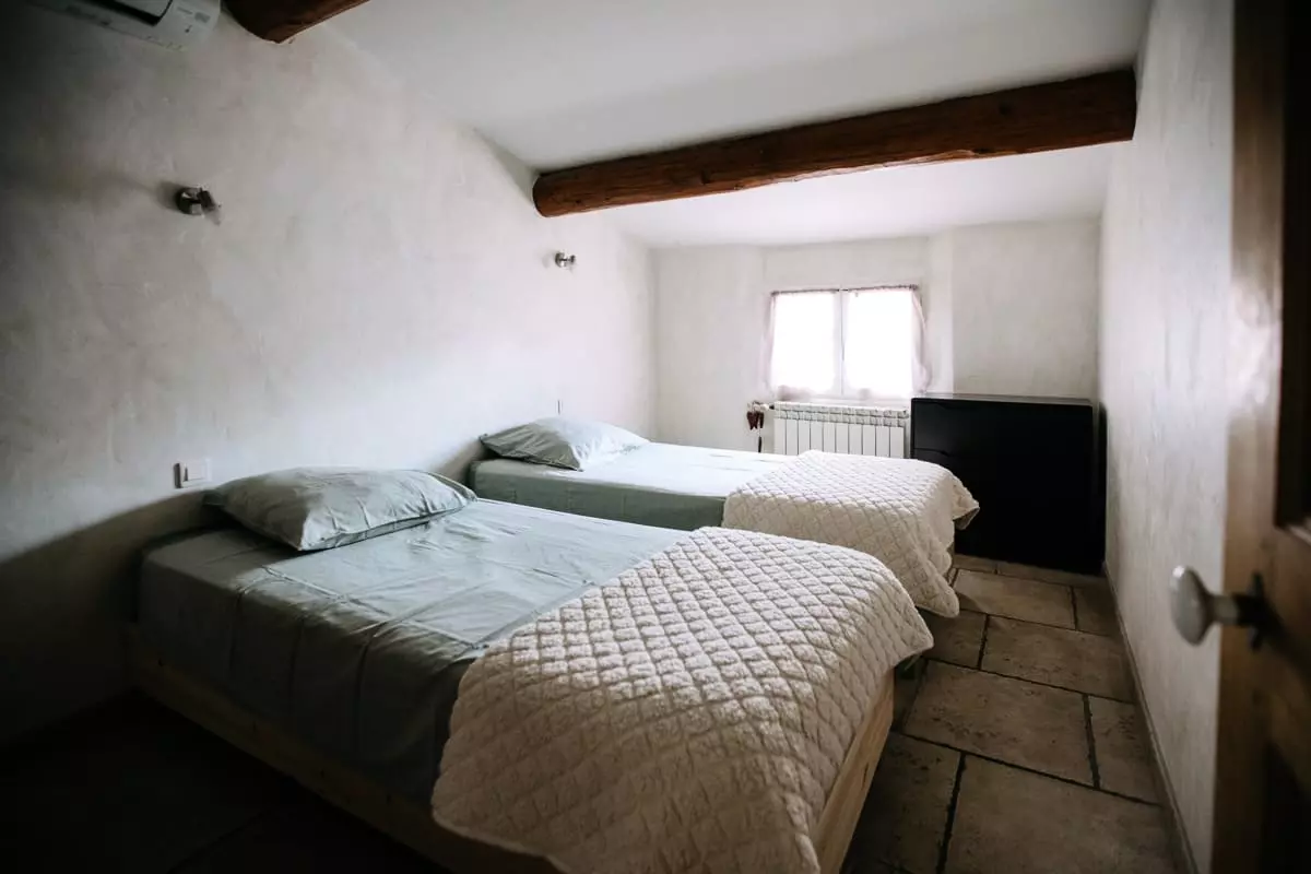The second bedroom is equipped with two single beds, perfect for families or friends traveling together.