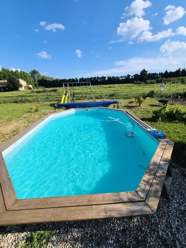 Ideal for a vacation with family or friends, this place offers a 6.5 x 4.5 meter semi-inground swimming pool, perfect for cooling off under the Provençal sun. Children and adults alike can have fun thanks to the available facilities: ping-pong table, pétanque court, swing, and trampoline.
