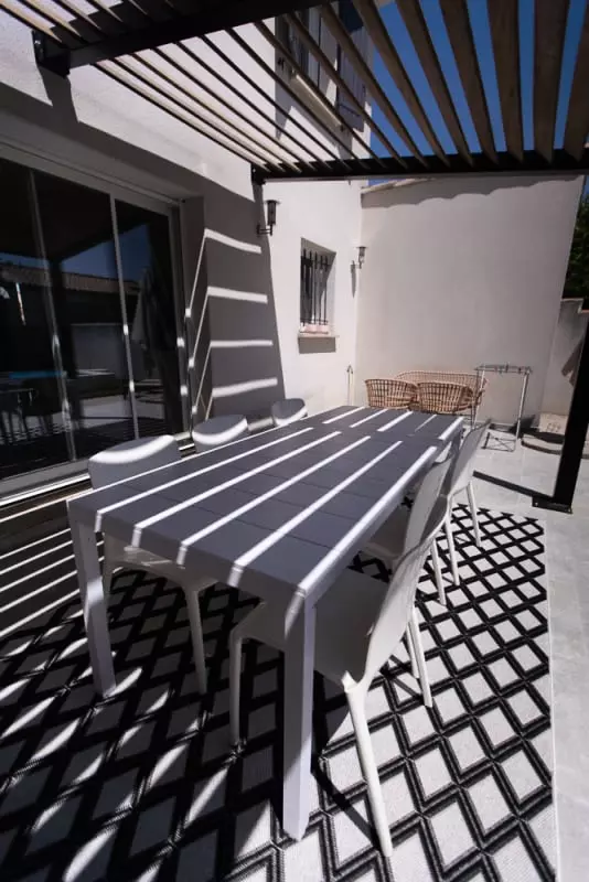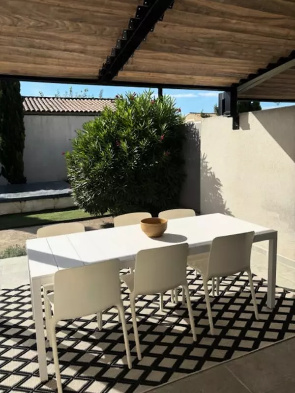 Charming, quiet house at the end of a cul-de-sac, with a large terrace and garden, just a 7-minute walk from the historic town center of Isle-sur-Sorgue. Enjoy the charm of the historic center and the weekly market without the hassle of a vehicle or parking.