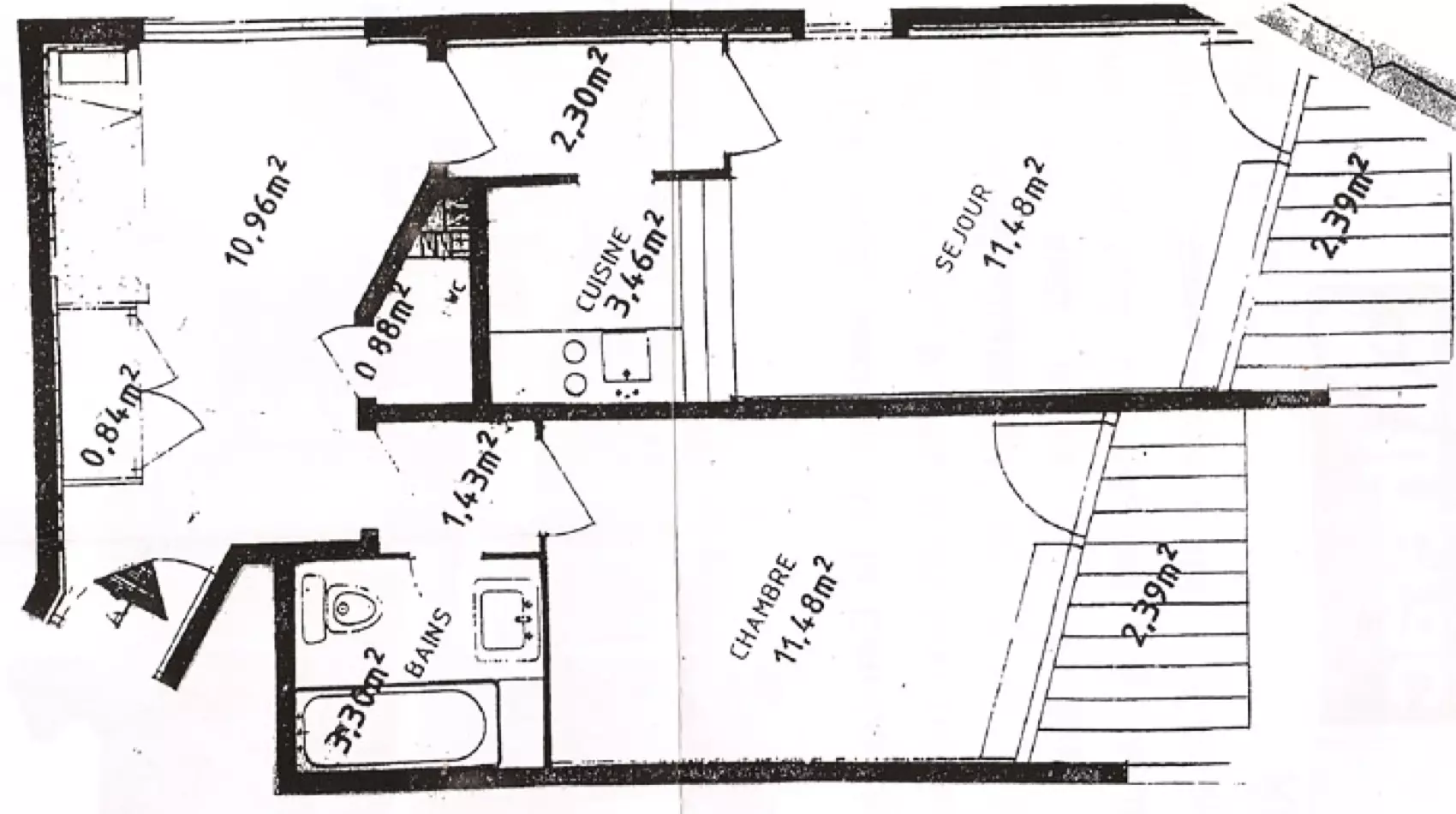 BATHROOM: 3.30 m2, sink, bathtub, WC, washing machine,