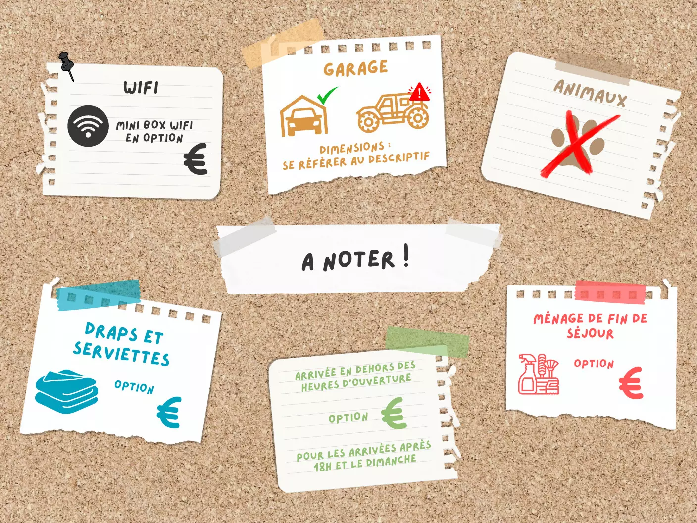 - Mini wifi box, for apartments not equipped, €7/day and €39/week (limited stock)