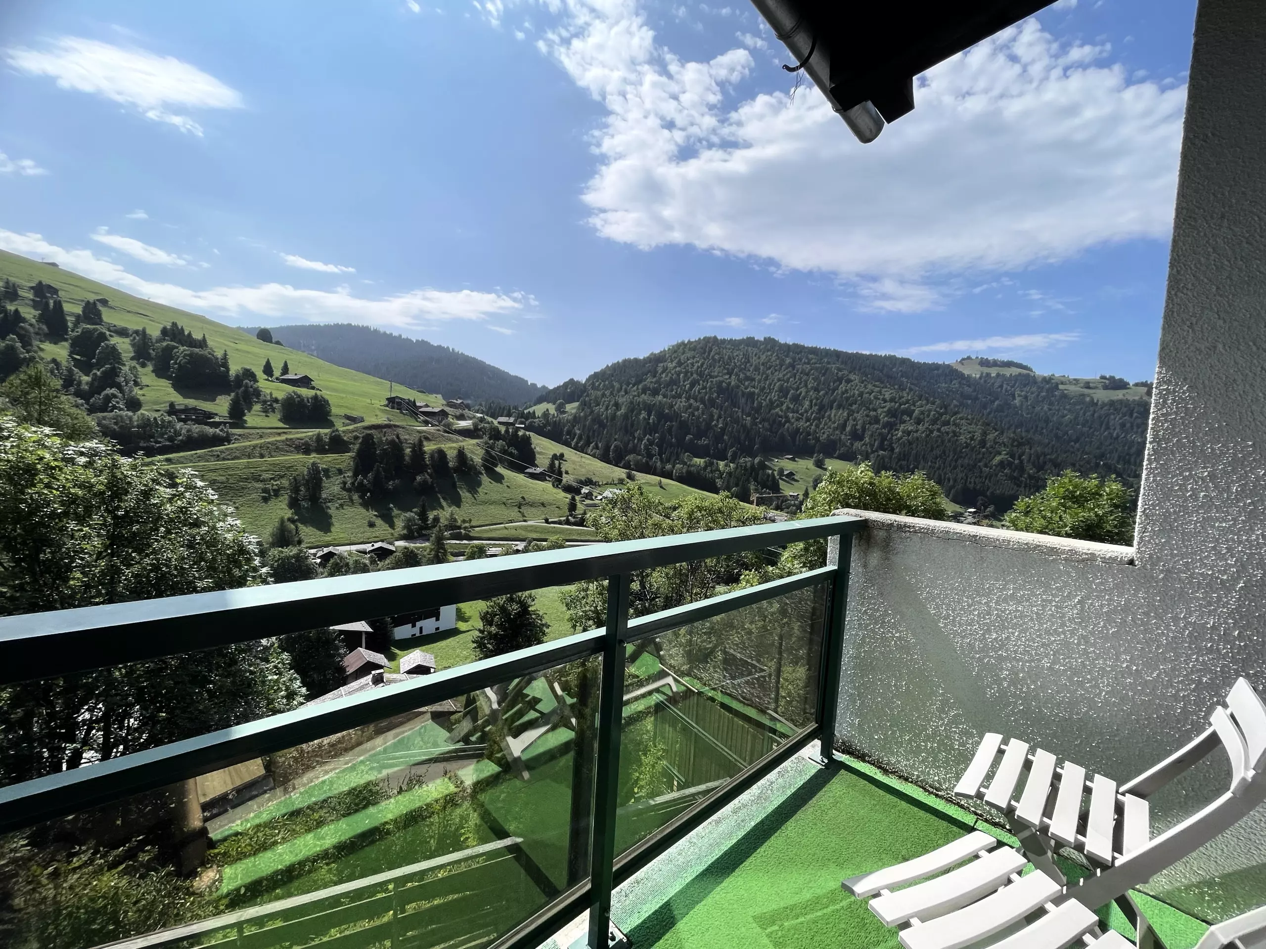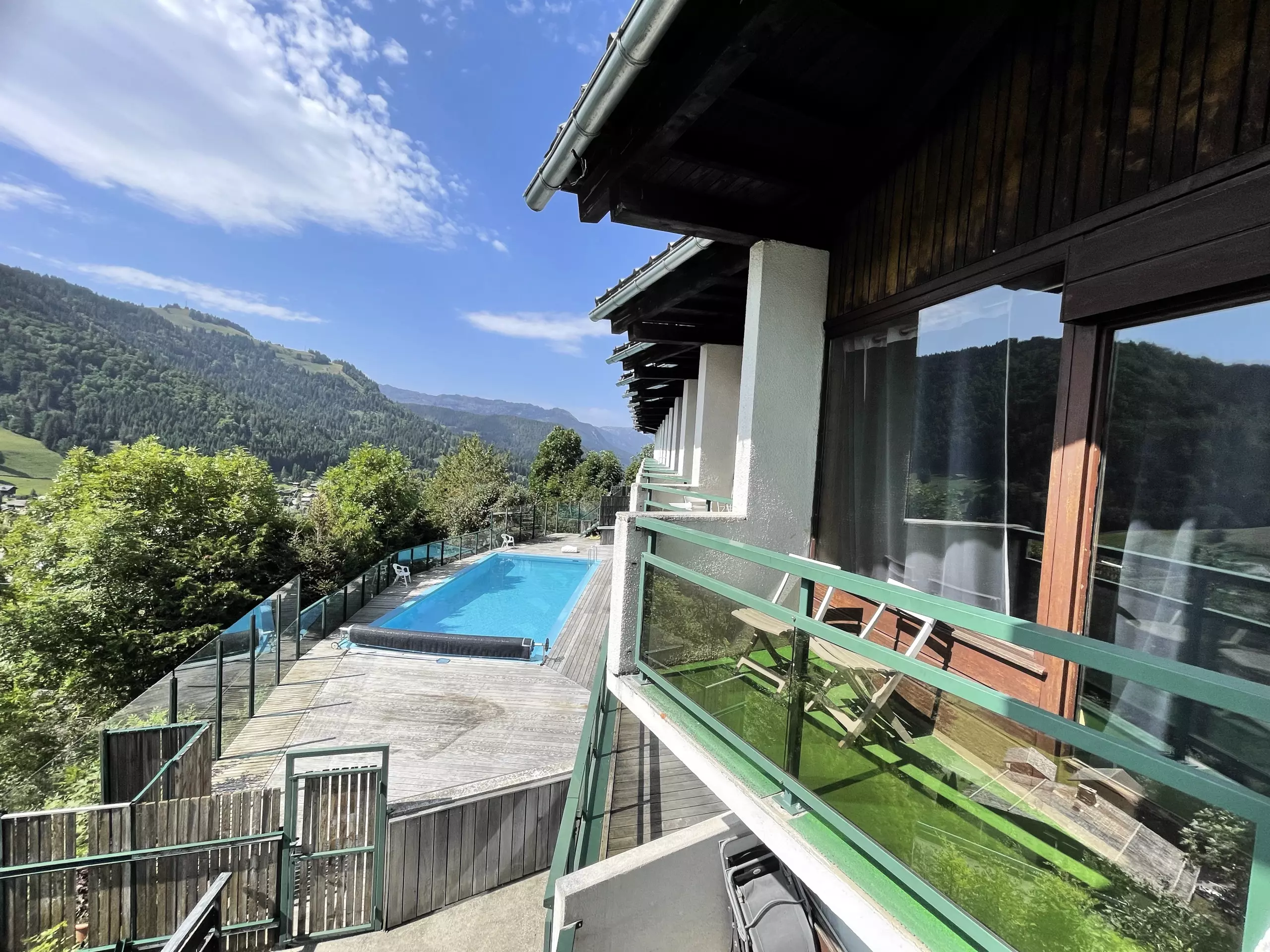Apartment on the level (entrance level on R+1 on ground floor) of a two-level residence, with 14 apartments, built in 1988, located 50 meters from the ski lifts, set back from the Col des Aravis road, and 3.5 km from the center of LA CLUSAZ. Direct access, behind the residence, to the Combe des Juments slope allowing you to reach the chairlift and the Transval 30 m away. 150 m from a ski bus stop (free). Quiet location, beautiful view of the Etale and Beauregard Massif. Summer: access to a private heated swimming pool (24C°) at the unsupervised residence.