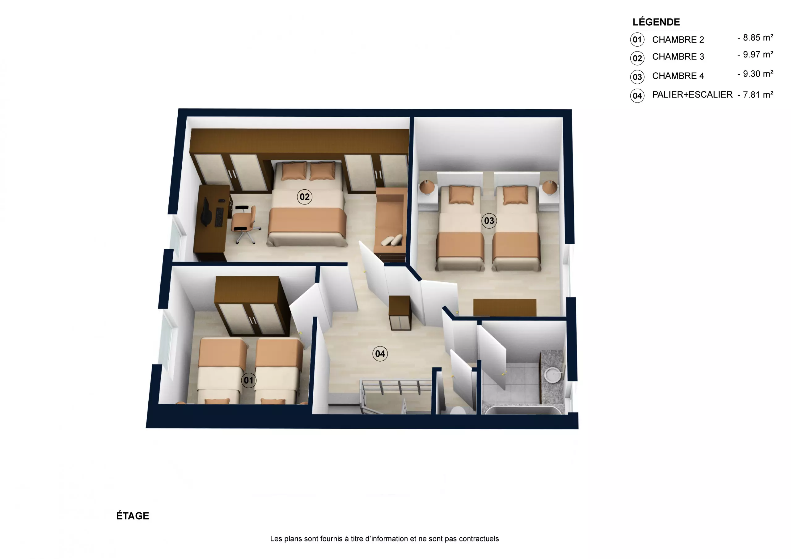 BEDROOM 3: 10 m2, 1 DOUBLE BED (160/duvet), sofa, wardrobe, desk, south-facing window, roof window.