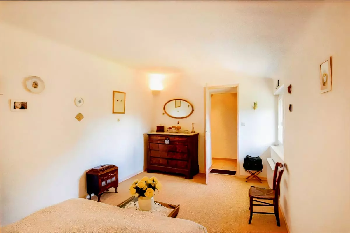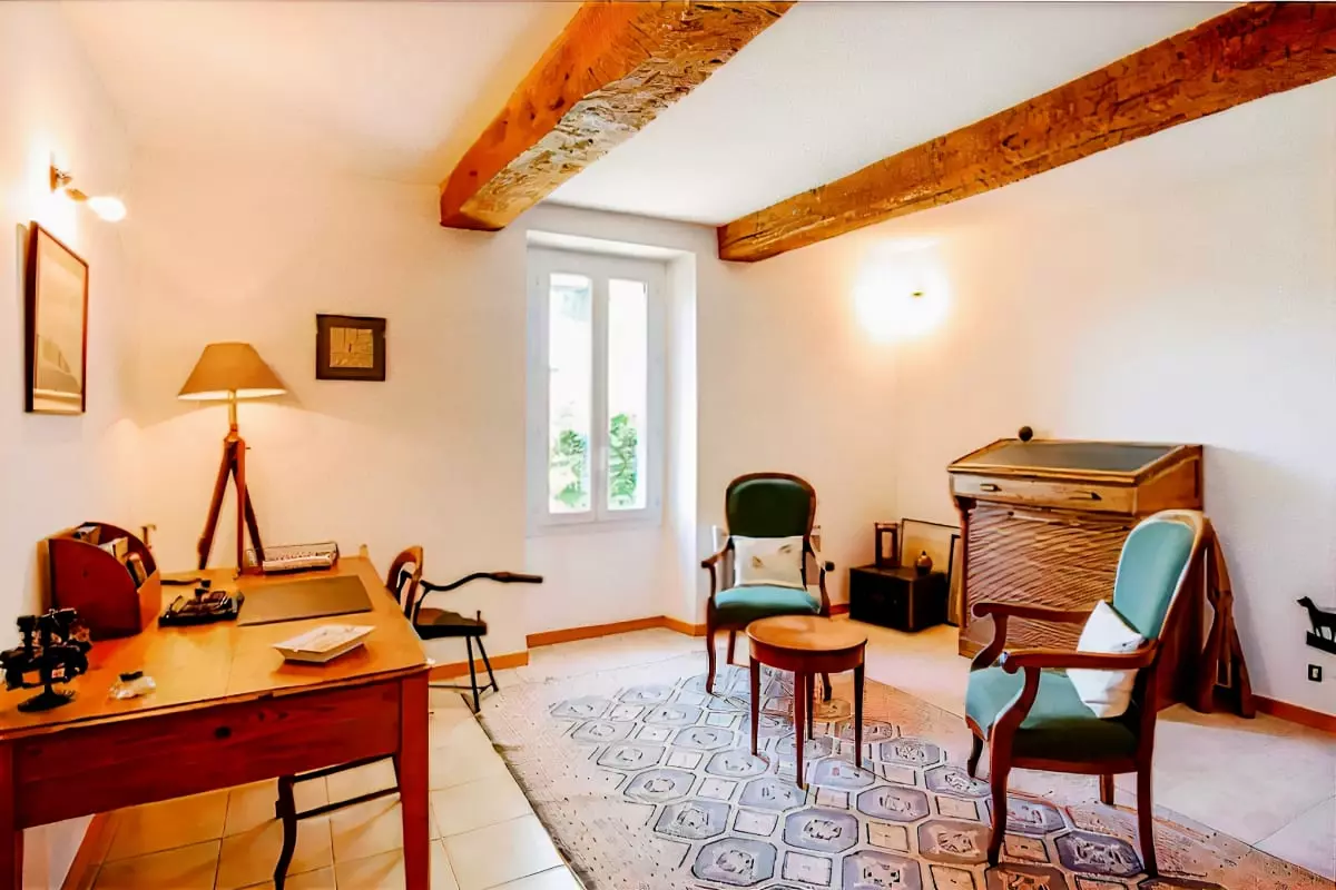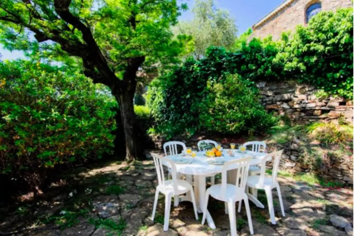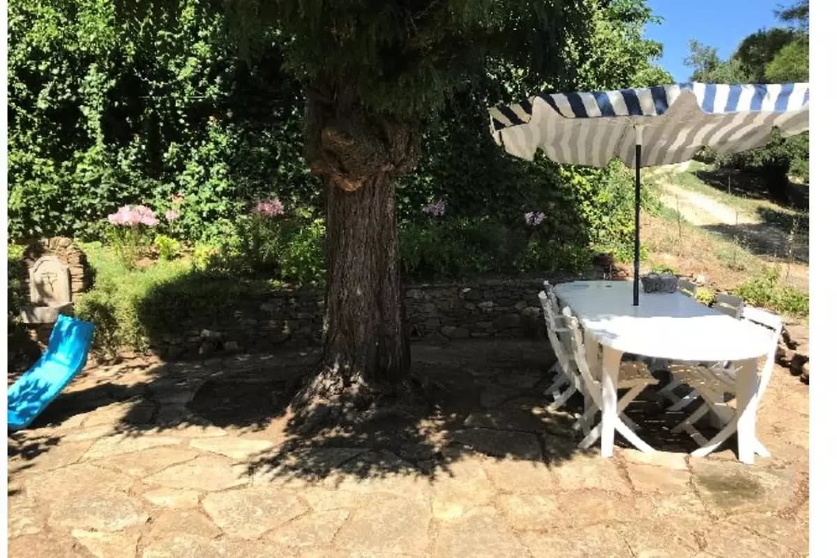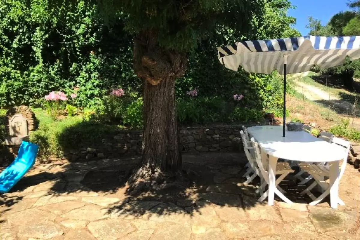 Almost all windows have mosquito nets, and the house is equipped with air conditioning in the bedrooms. A fireplace will warm you up on autumn or winter evenings. The house has all the necessary comforts for you to have a pleasant stay, while retaining its old-fashioned charm. It opens onto a shaded, enclosed terrace and is equipped with a table for 8 people, a parasol, two adult and two children's lounge chairs, a sun lounger, and a barbecue. You will appreciate the panoramic view of the hills and the forest.