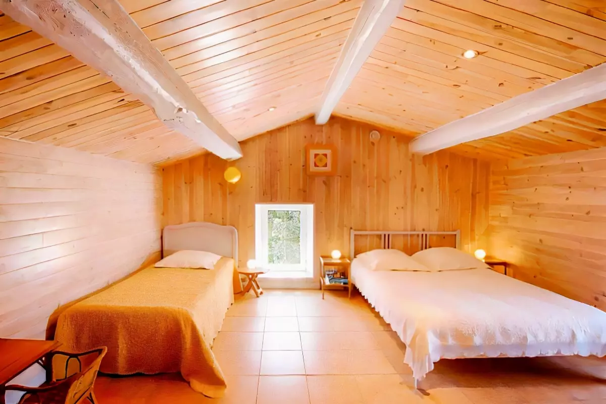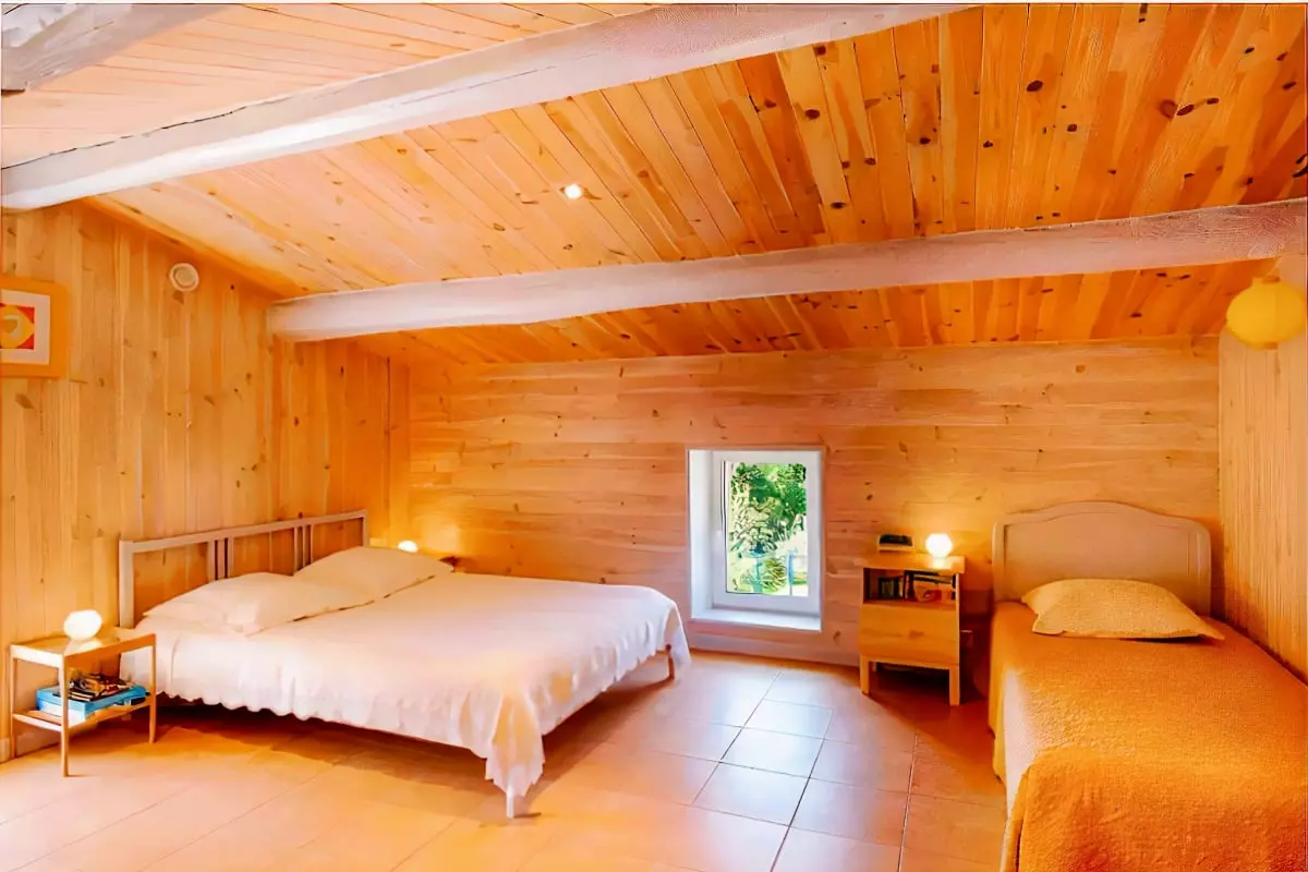- two air-conditioned attic bedrooms (1 double bed/1 double bed and two single beds) where you can stand up