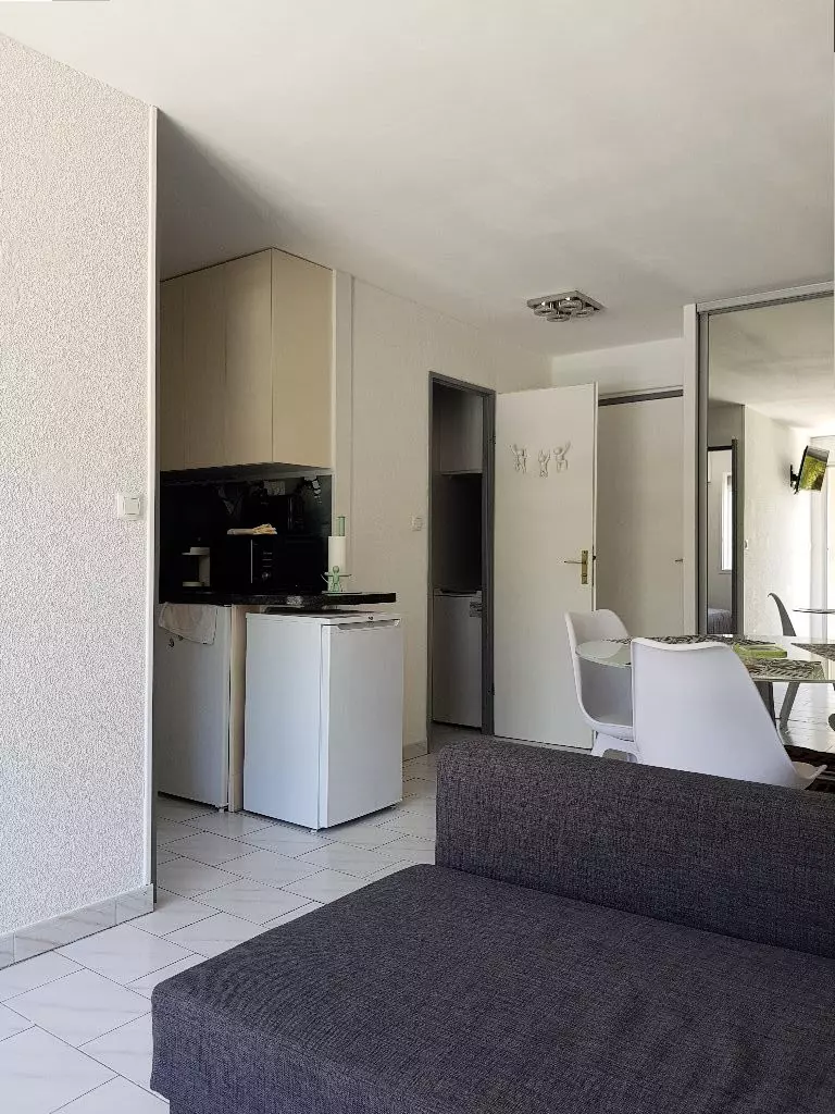 500m from the beaches of Couchant, modern apartment sleeping 4, fully equipped; from the west-facing balcony, lovely view of the residence's large swimming pool and its wooded setting. This two-room apartment consists of a master bedroom and a large living room with lounge and fully equipped kitchen area; the accommodation has all the features for a pleasant family vacation: air conditioning, WIFI, washing machine and private parking.