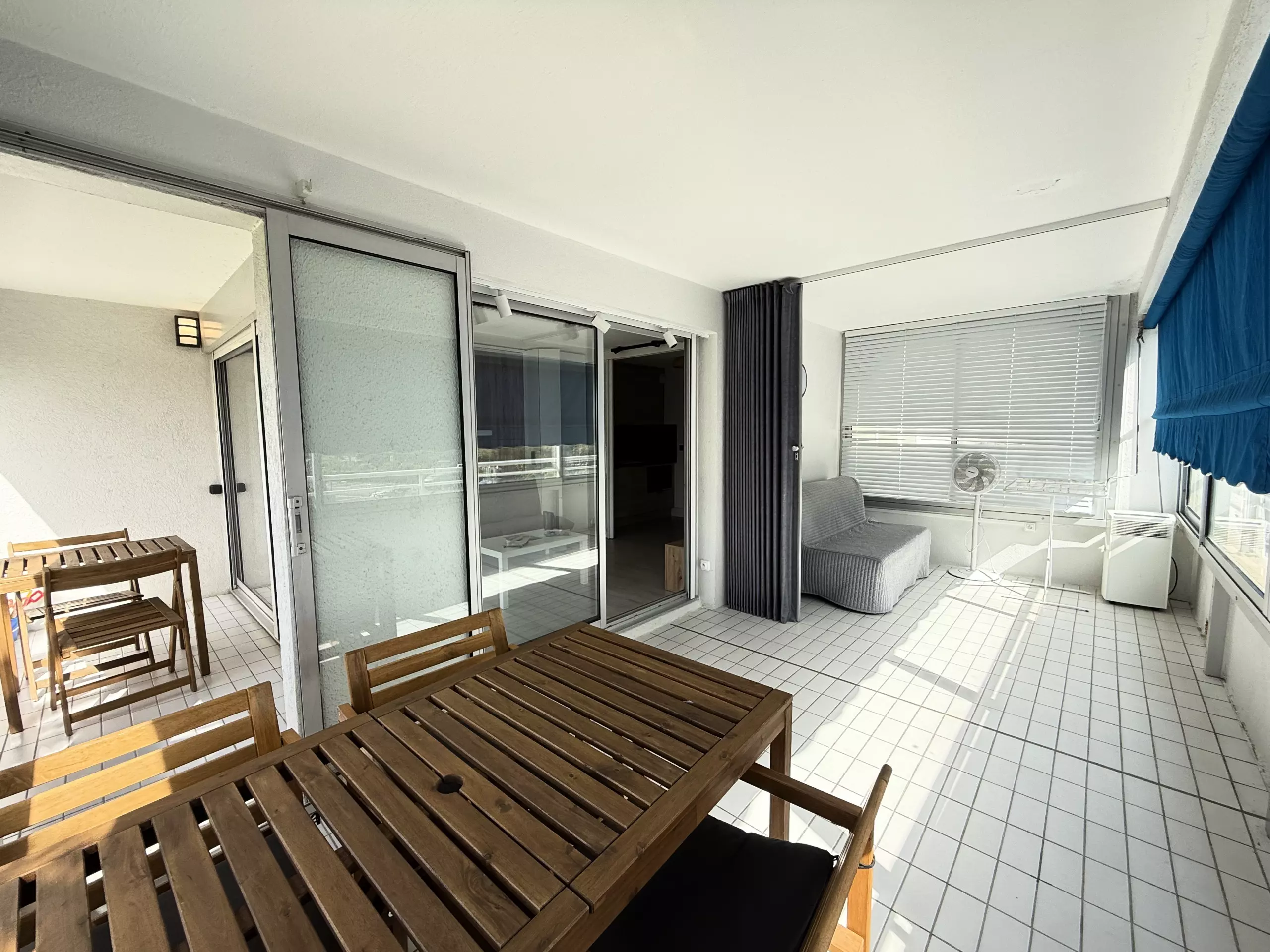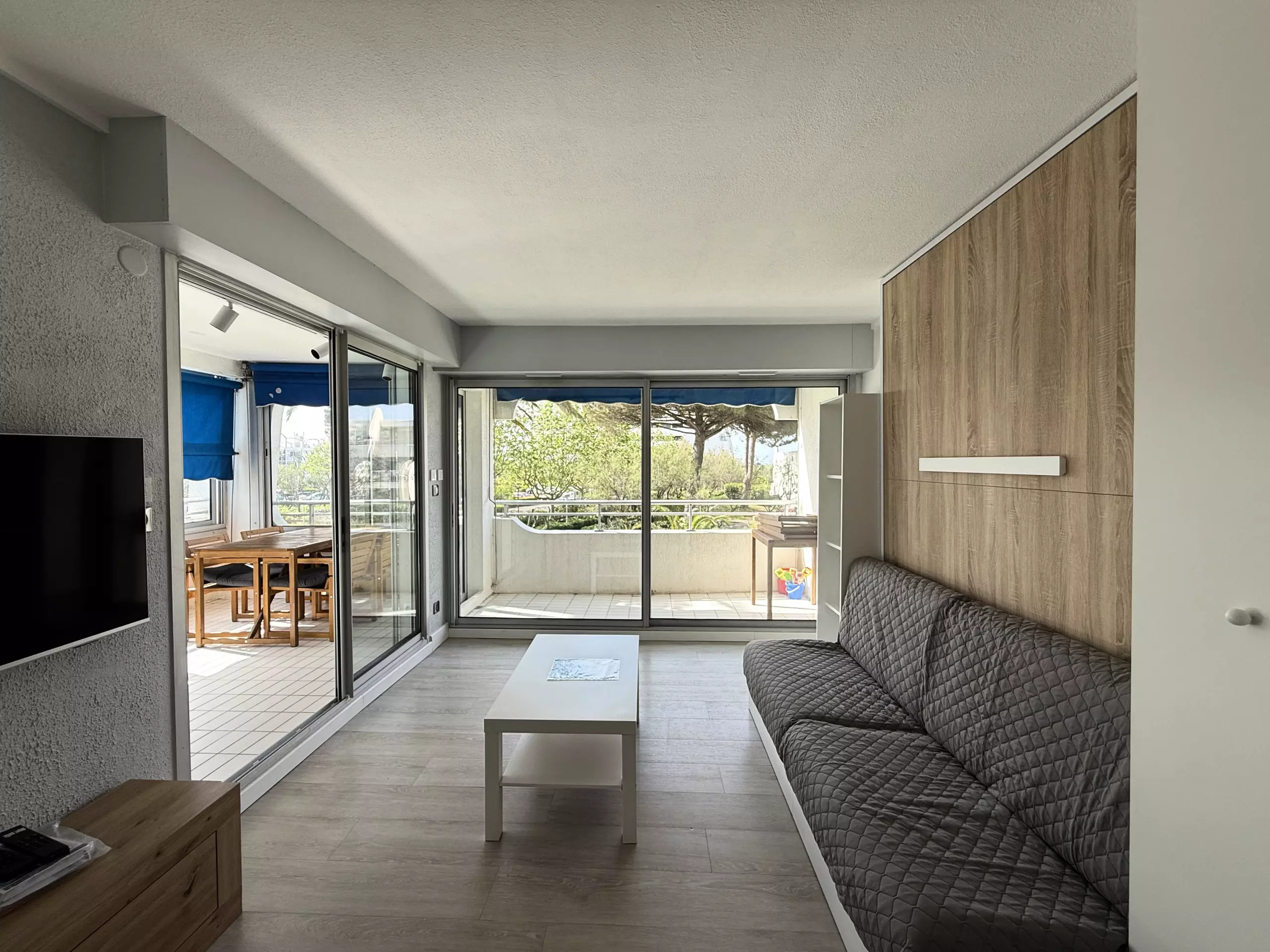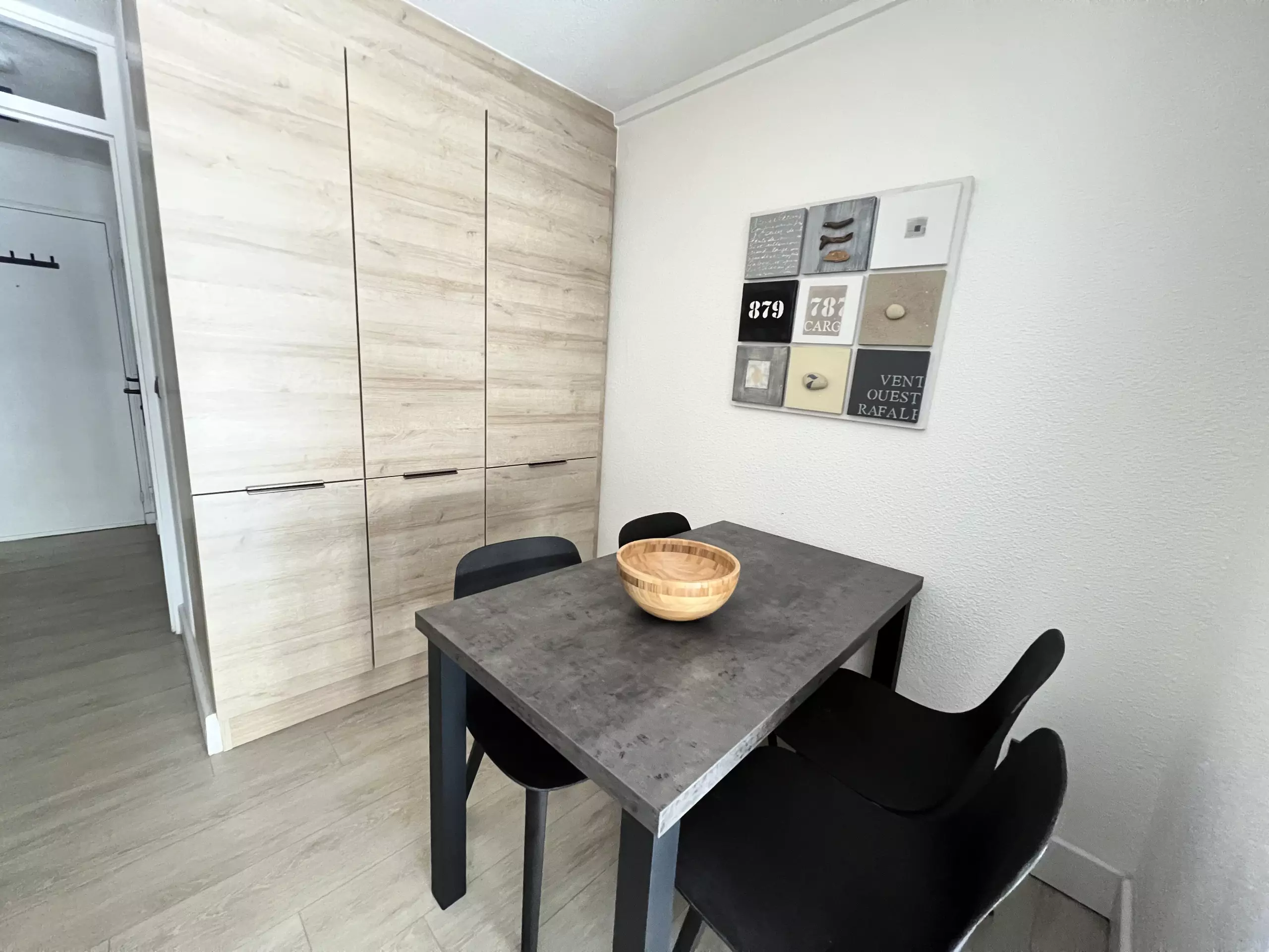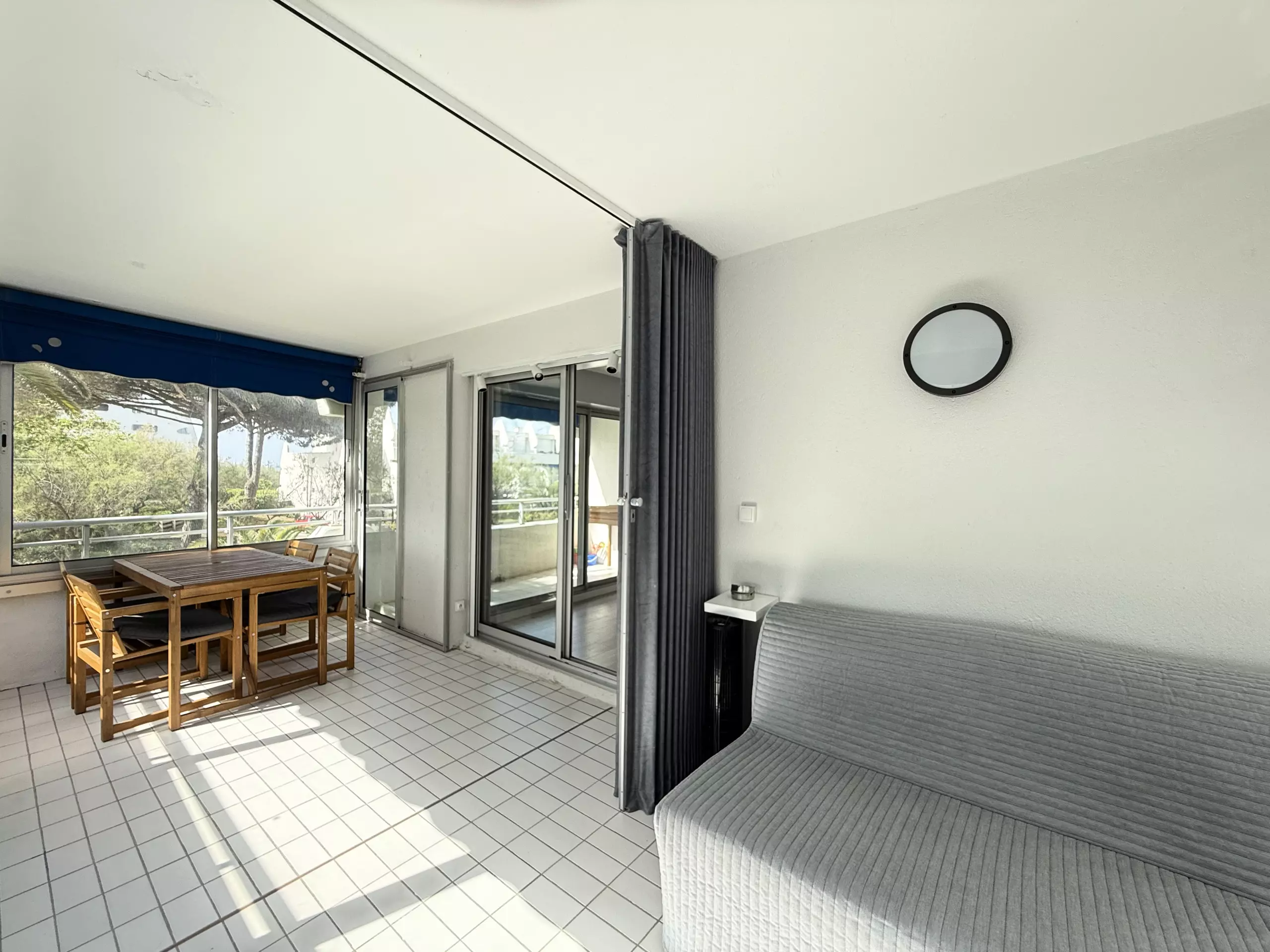 Large modern apartment for 6 people in a second-line residence just a stone's throw from the beaches; in 5 minutes on foot, you can reach the beautiful beaches of Couchant and the many local shops. The particularity of this accommodation is that it is entirely modular, depending on your desires of the moment: a large corner loggia which can be transformed into an open balcony for meals outside or into a closed room (dining room and/or sleeping for 2), the living room with its folding bed opening onto a small balcony, the separate kitchen area, the cabin area and the bathroom at the entrance. For your stay, you will have all the elements of comfort: fully equipped modern kitchen, WIFI, washing machine and private parking space.