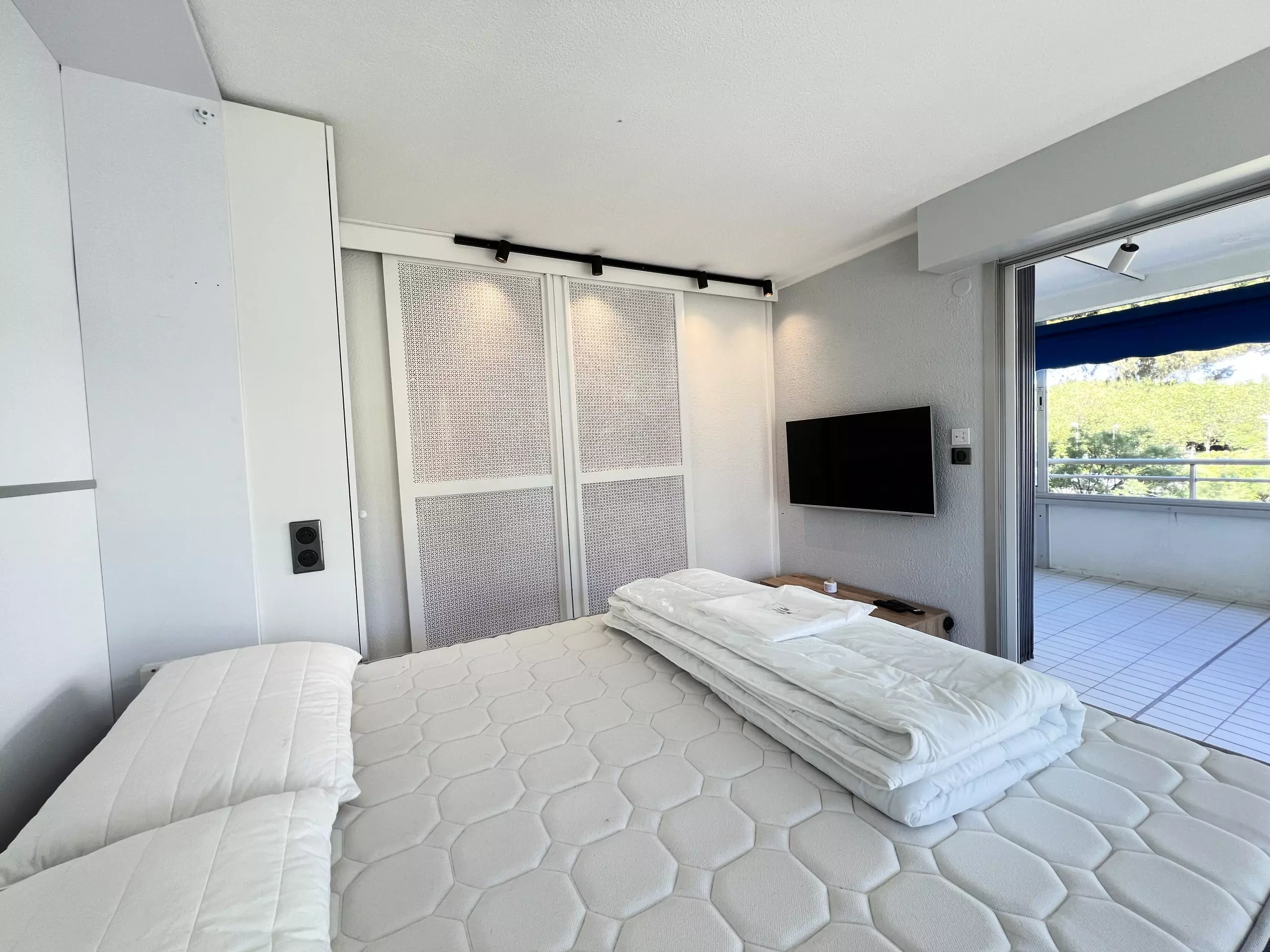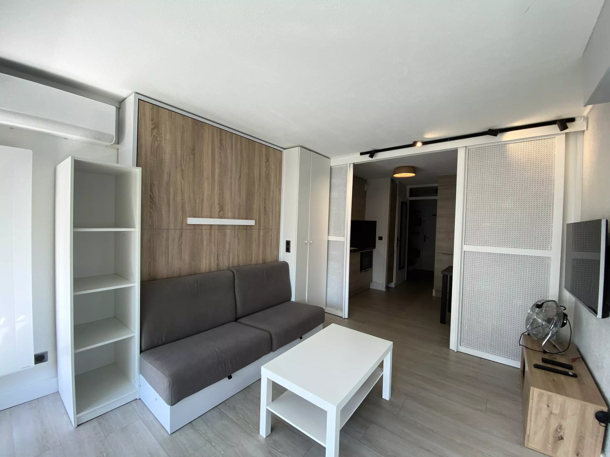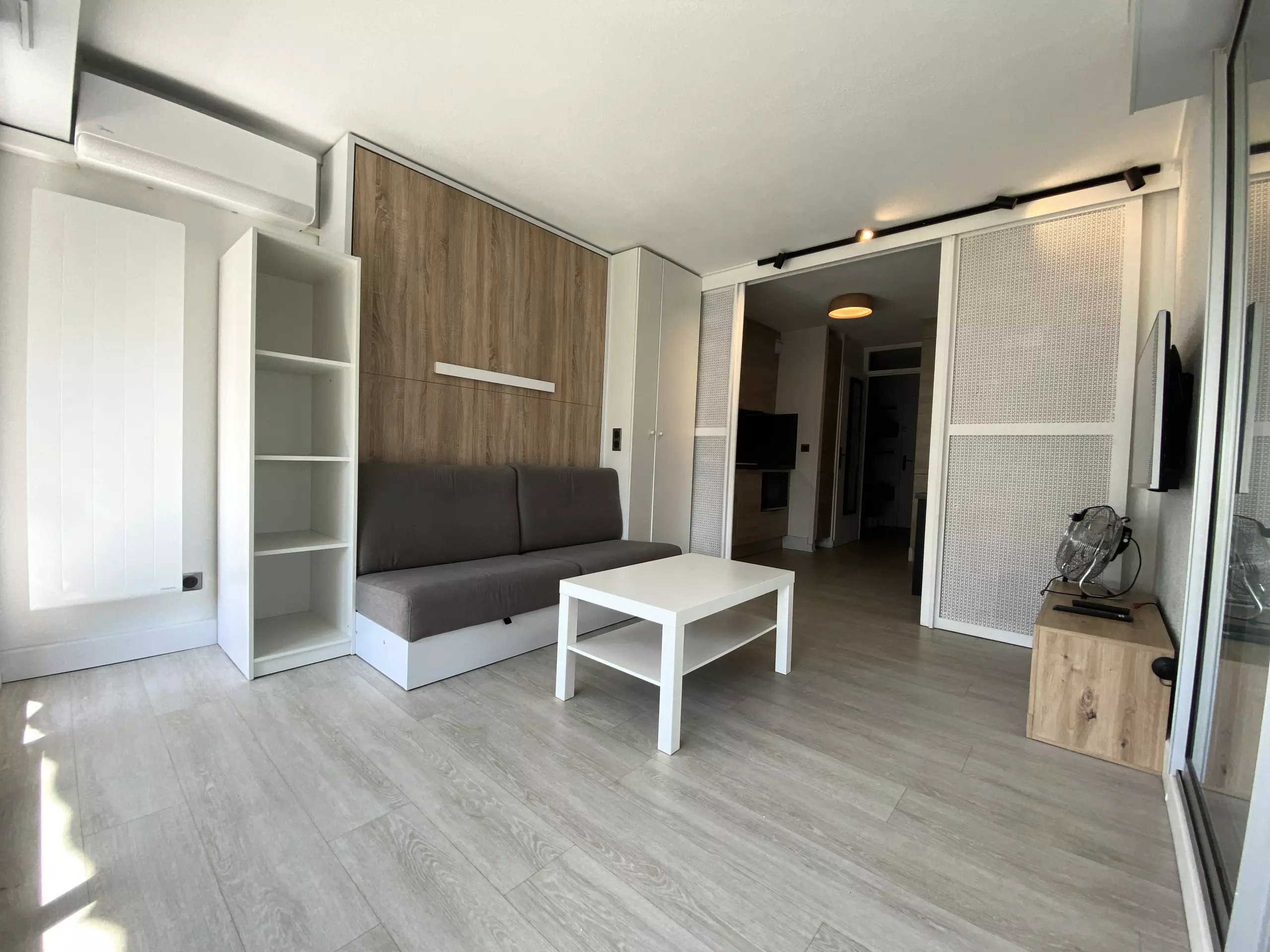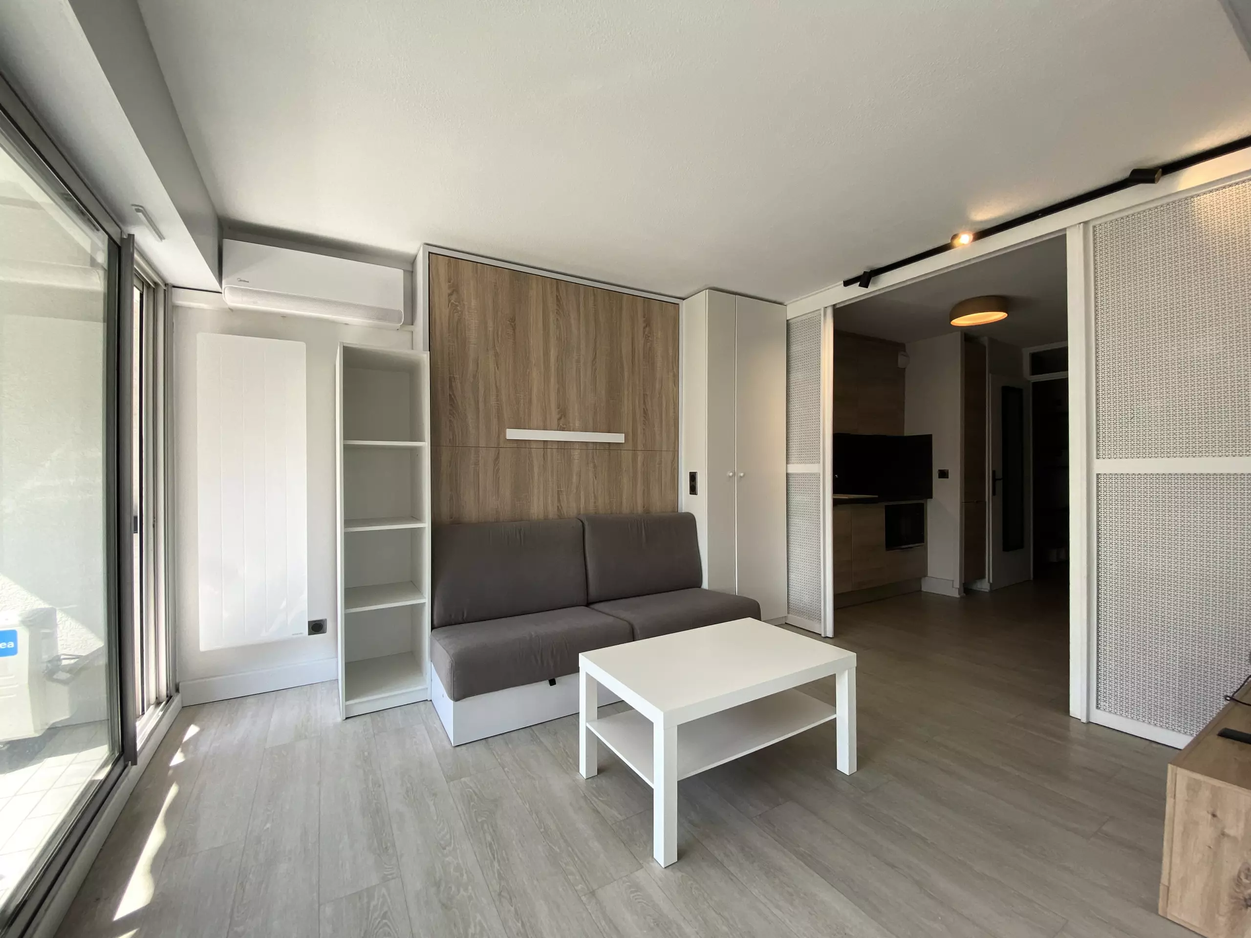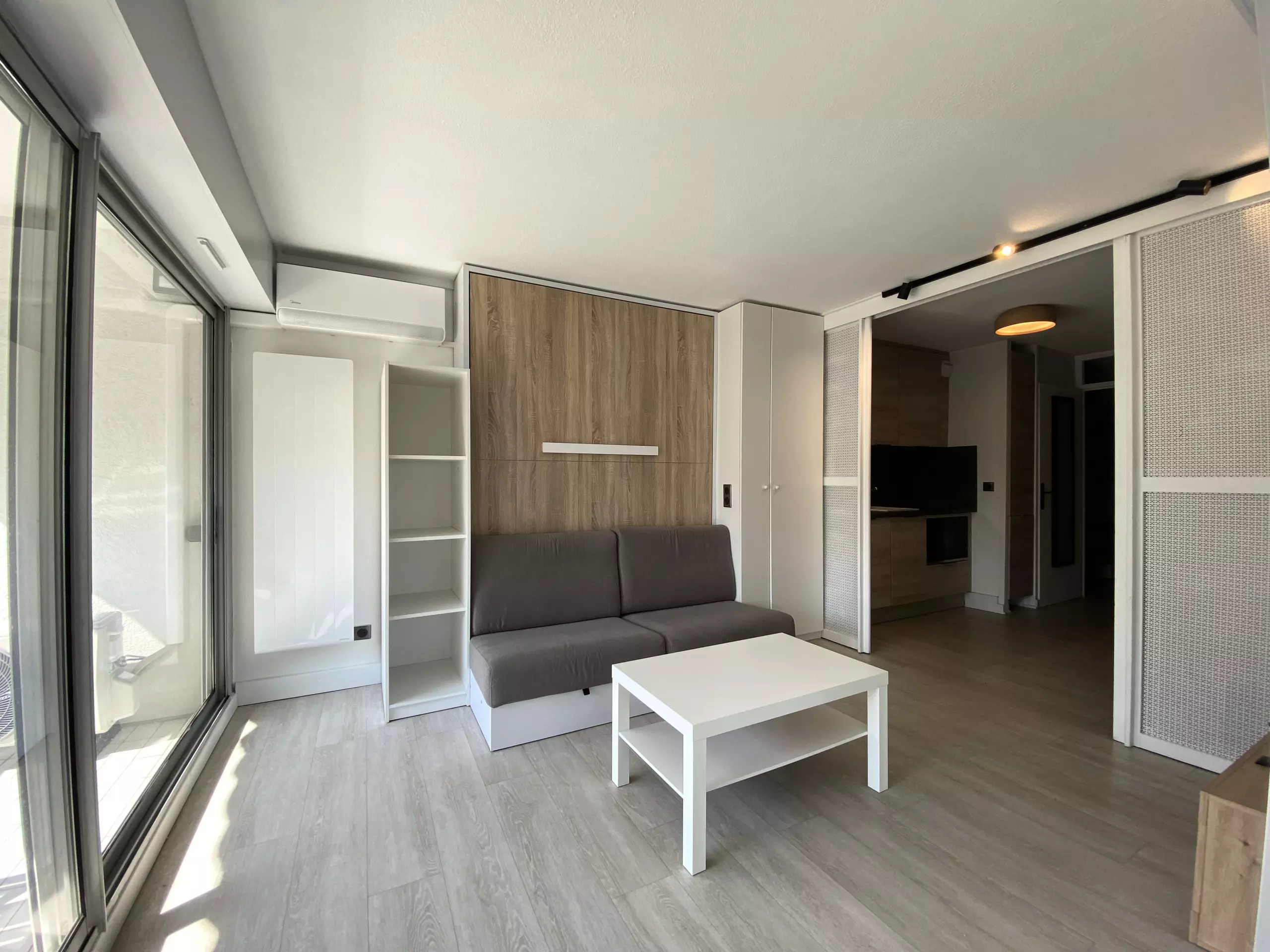 Large modern apartment for 6 people in a second-line residence just a stone's throw from the beaches; in 5 minutes on foot, you can reach the beautiful beaches of Couchant and the many local shops. The particularity of this accommodation is that it is entirely modular, depending on your desires of the moment: a large corner loggia which can be transformed into an open balcony for meals outside or into a closed room (dining room and/or sleeping for 2), the living room with its folding bed opening onto a small balcony, the separate kitchen area, the cabin area and the bathroom at the entrance. For your stay, you will have all the elements of comfort: fully equipped modern kitchen, WIFI, washing machine and private parking space.