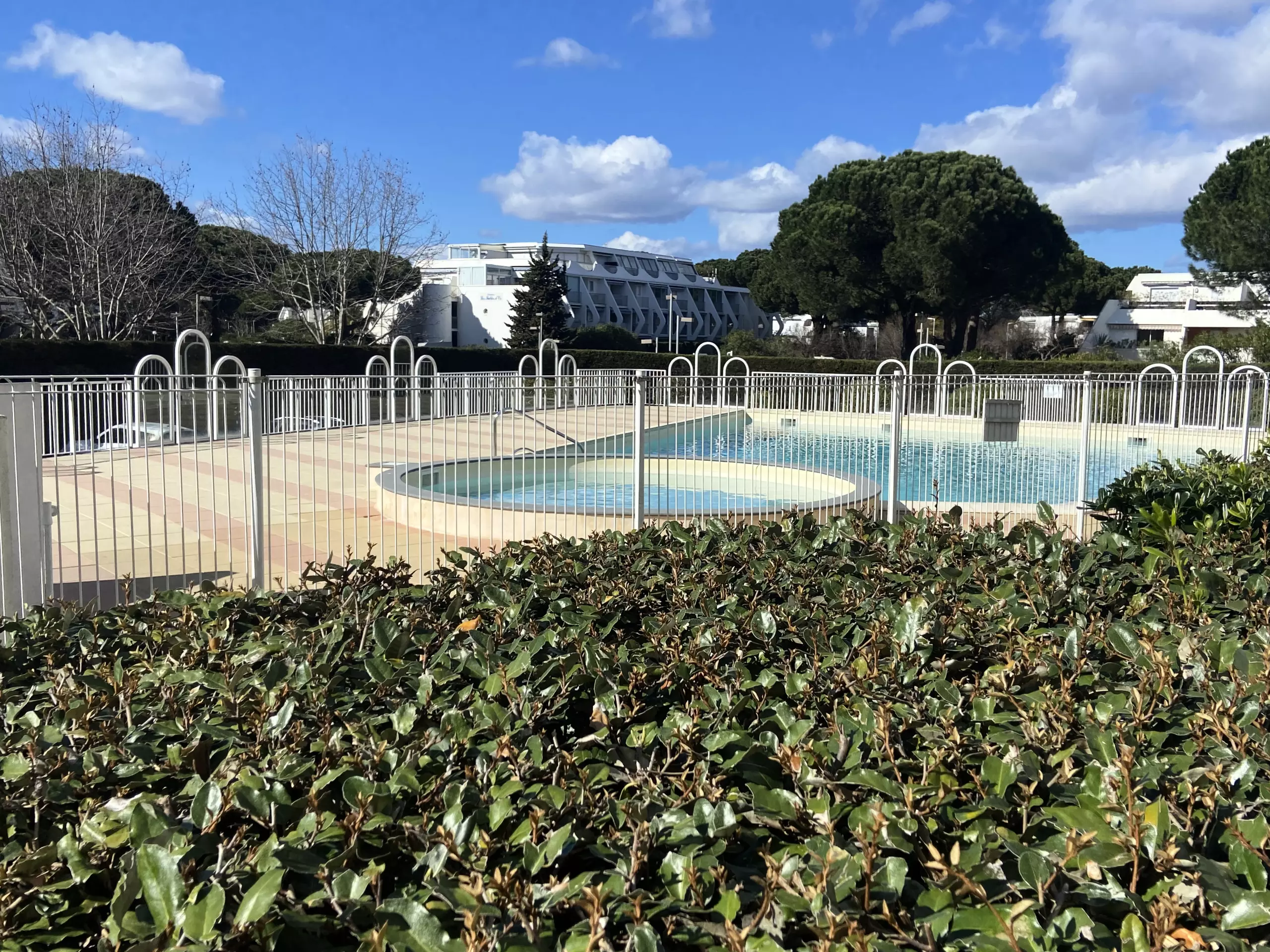 In a sought-after residence with swimming pool, come and enjoy this very well-located holiday accommodation in the Couchant district close to shops and beaches; located on the ground floor, you can enjoy its beautiful and large terrace with deckchairs and sun blind facing West, ideal for relaxing at the end of the day. This 2-room cabin has a fitted kitchen area open to the living room with sofa bed, a bedroom with a bed for 2 people and a cabin at the entrance with bunk beds (up to 5 beds) and a bathroom with separate WC; once you have left your car in the garage in the basement of the residence, all daily activities are within walking distance: shops, restaurants, beaches.