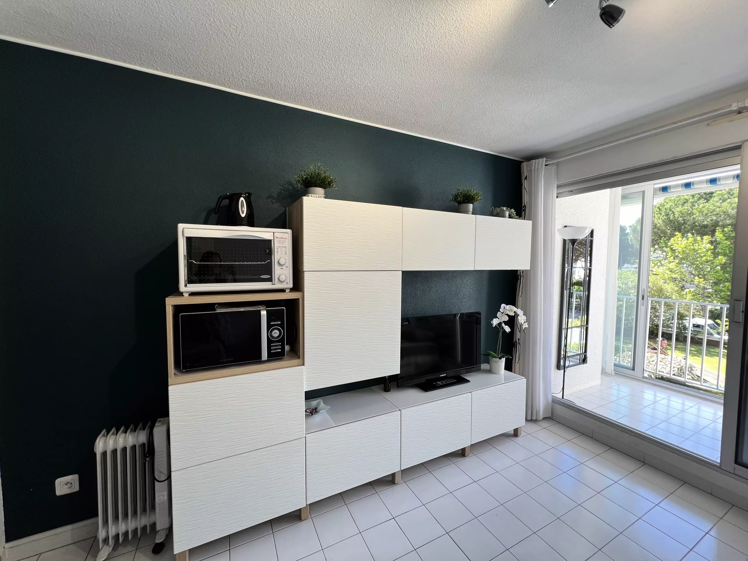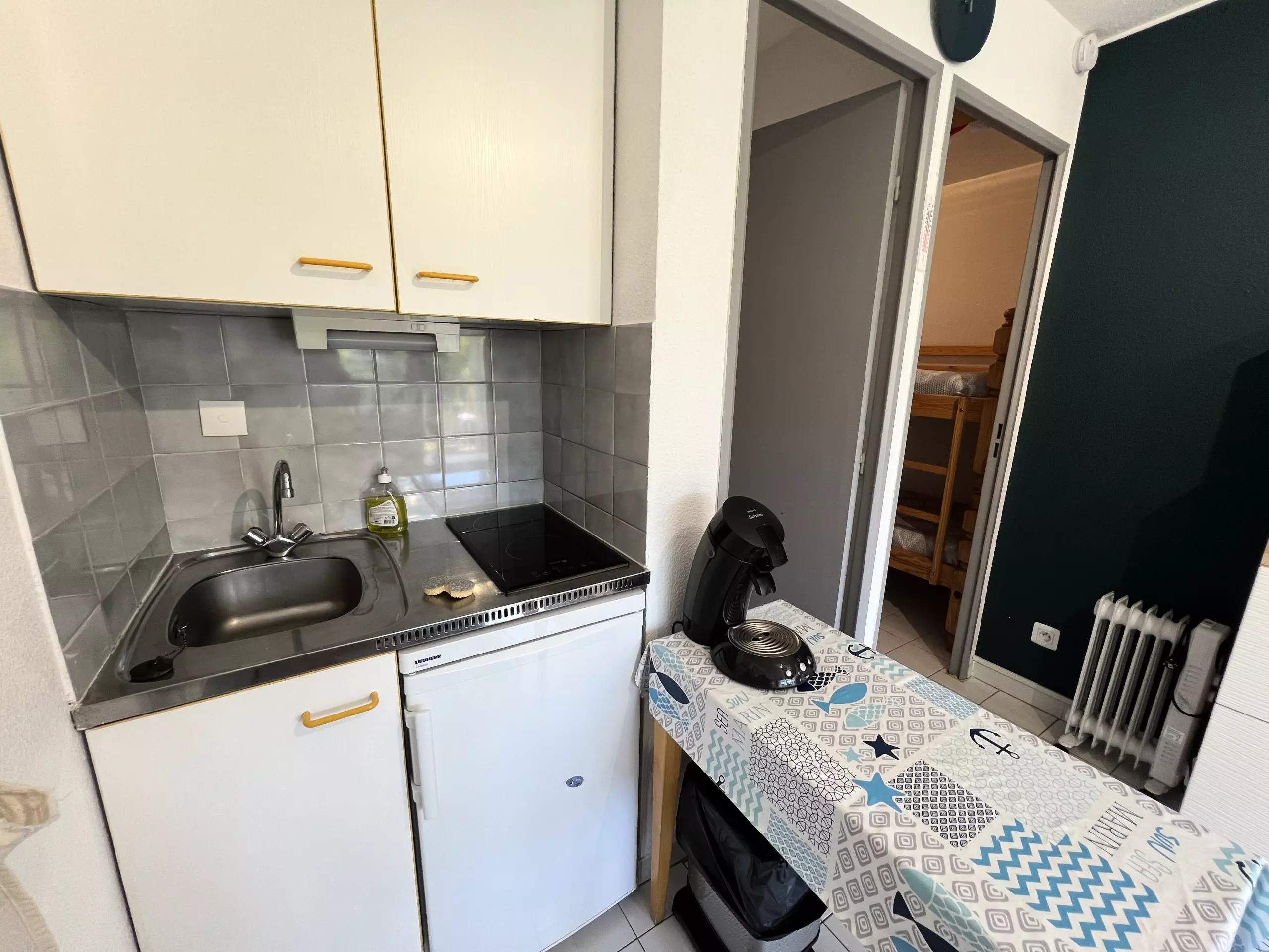 500m from the beaches of Couchant and in a quiet residence with swimming pool and its pleasant garden, come and enjoy an ideal environment for your holidays; many shops nearby. Located on the 1st floor, this accommodation for 4 people has a very pleasant terrace with a view of the garden, a real living space for your holidays in the sun; it has a living room with its fully equipped kitchen area, a small separate bedroom; the American kitchen, induction, is equipped with refrigerator, microwave, oven, freezer, dishes/cutlery, utensils/kitchen, coffee maker, toaster and kettle; modern and renovated apartment with all the necessary equipment for a pleasant stay!