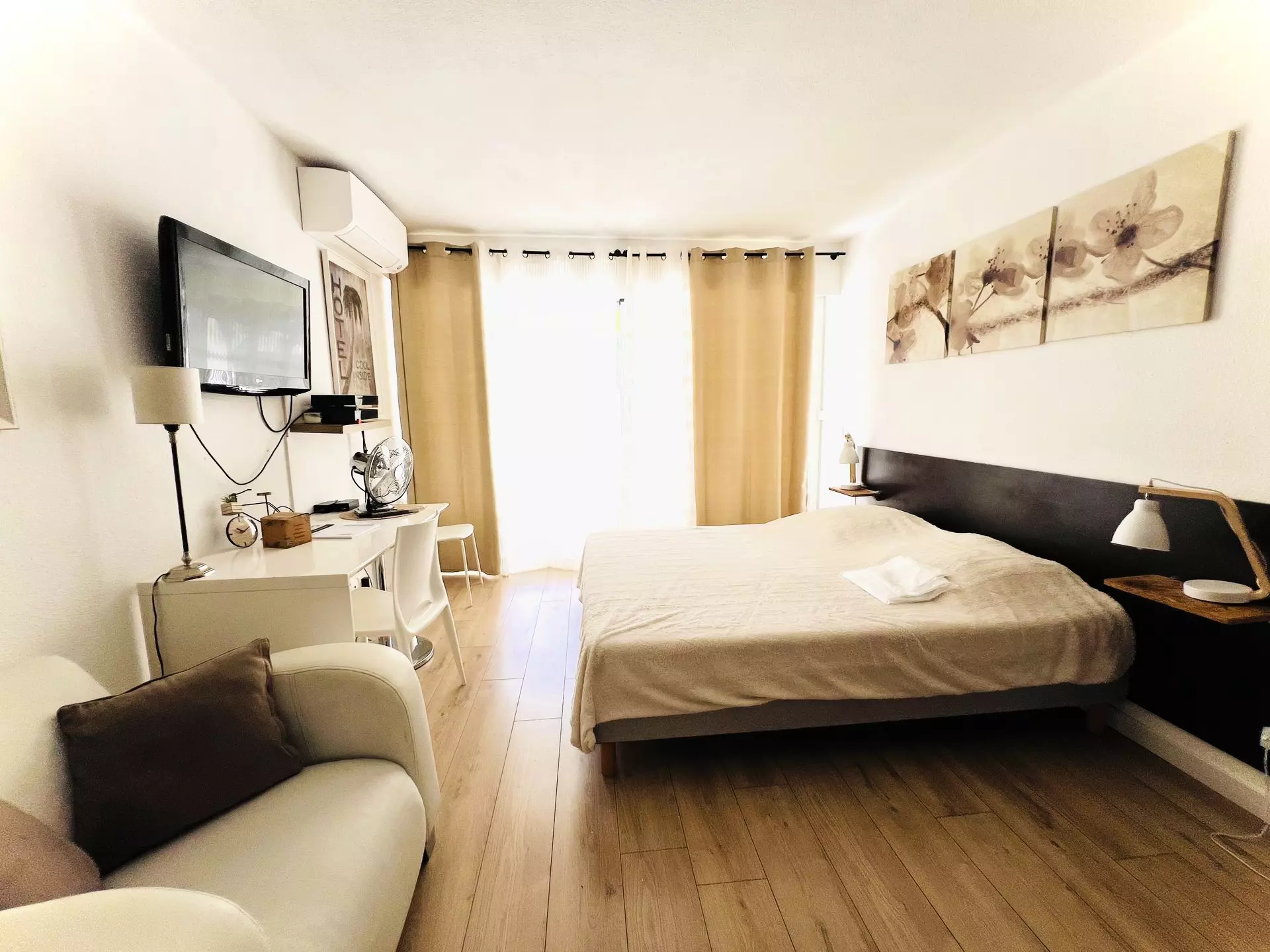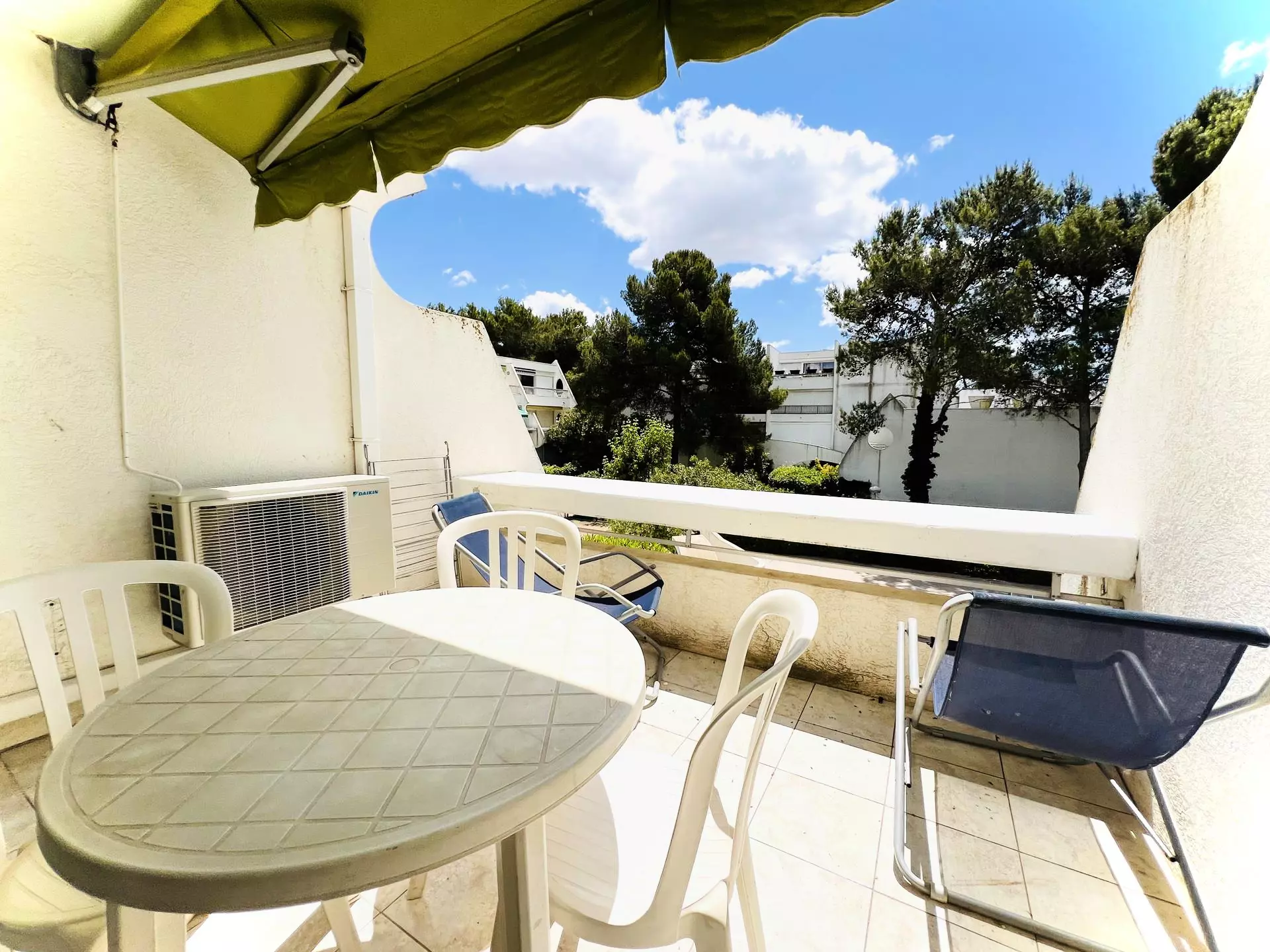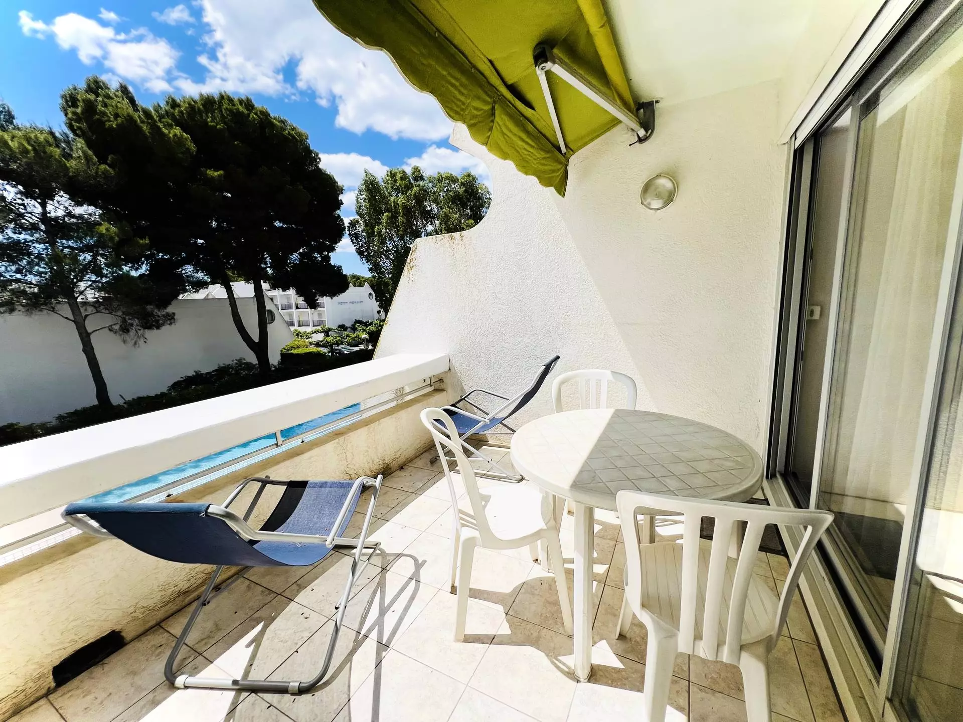 Located in La Grande-Motte, just a stone's throw from the Golf Course and the charming Port du Ponant, this functional and well-equipped apartment is ideal for a successful stay. Its living room opens onto a south-facing terrace with a view of the swimming pool. It is equipped with a large comfortable 160 cm bed, a flat-screen TV, a kitchenette with 2 electric hotplates, a TOP refrigerator, and a storage cupboard. The separate cabin has two single bunk beds (the upper bed is not suitable for children under 6 years old in accordance with Article 6 of Decree No. 95-949 of August 25, 1995). A shower room and toilet are also available.
