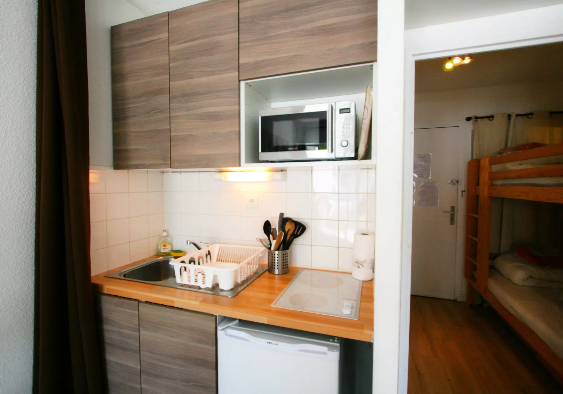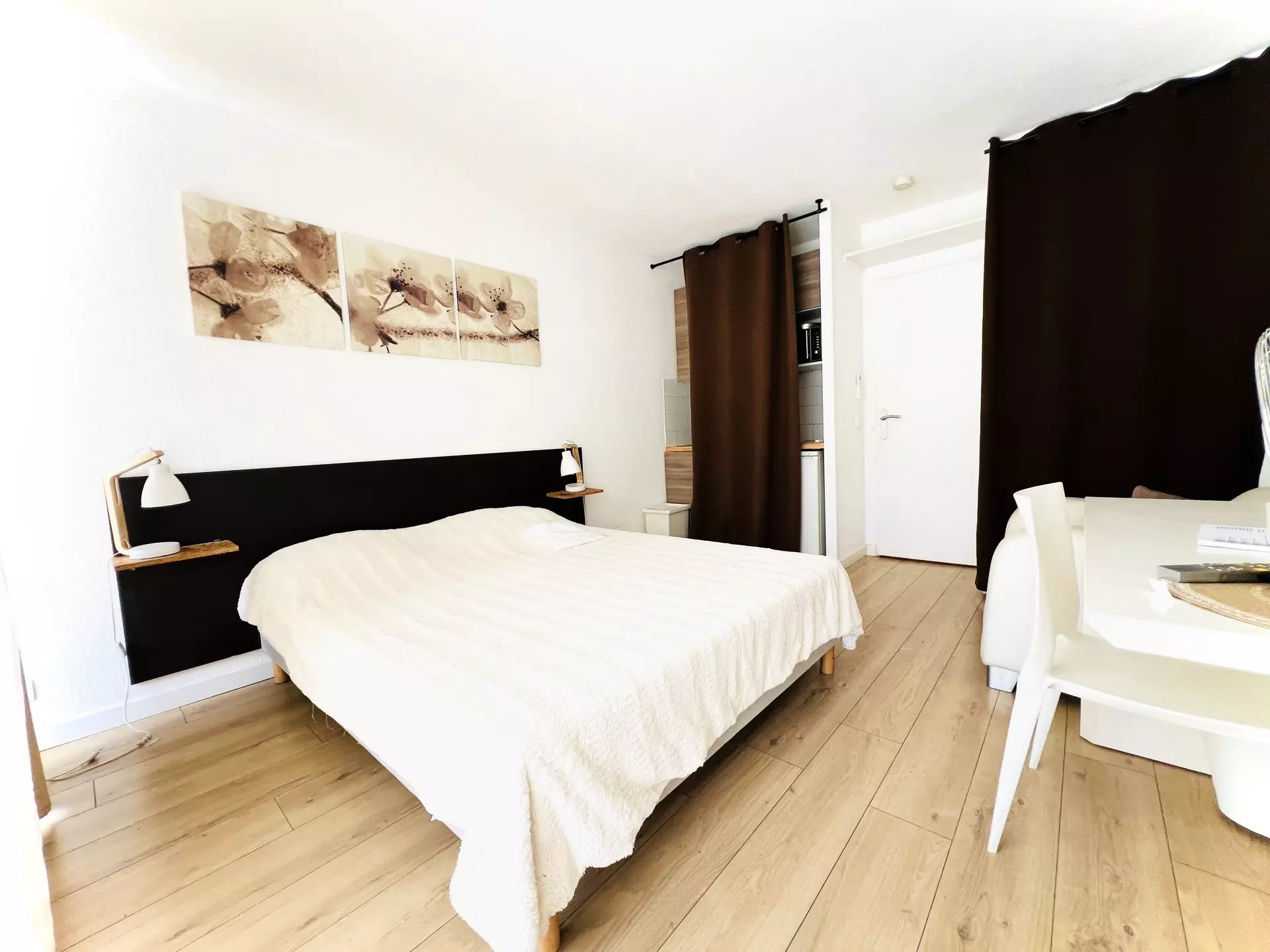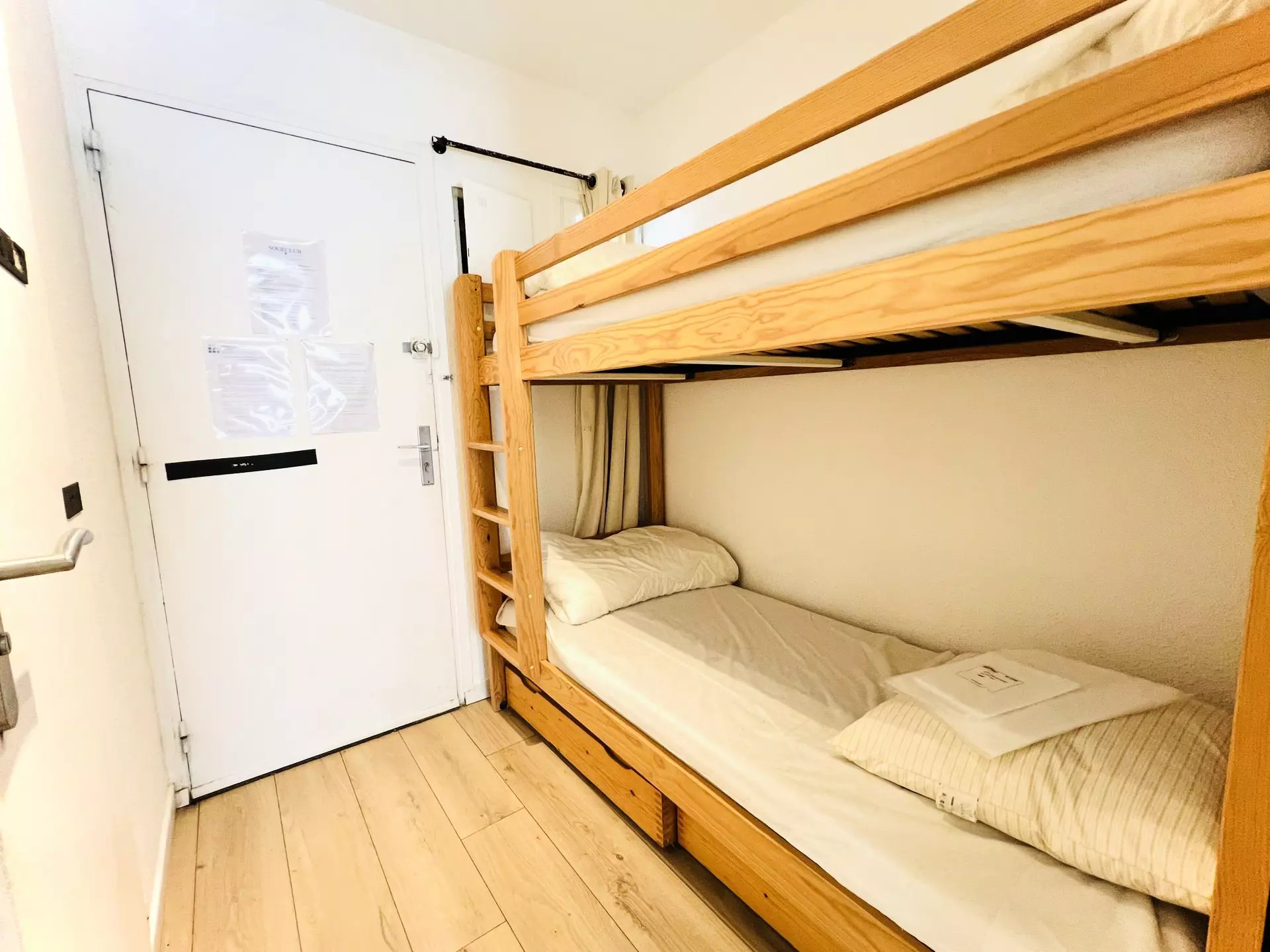 Located in La Grande-Motte, just a stone's throw from the Golf Course and the charming Port du Ponant, this functional and well-equipped apartment is ideal for a successful stay. Its living room opens onto a south-facing terrace with a view of the swimming pool. It is equipped with a large comfortable 160 cm bed, a flat-screen TV, a kitchenette with 2 electric hotplates, a TOP refrigerator, and a storage cupboard. The separate cabin has two single bunk beds (the upper bed is not suitable for children under 6 years old in accordance with Article 6 of Decree No. 95-949 of August 25, 1995). A shower room and toilet are also available.