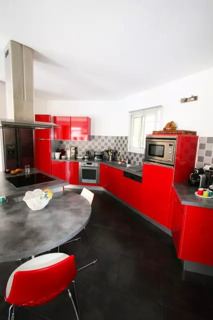 It benefits from all the comforts to ensure you have a relaxing stay. Built around the outdoor pool, it has air conditioning in all 3 bedrooms. You will miss nothing, you will find all the equipment you could need and more, the villa has a spacious living room (not air-conditioned), an American kitchen fully equipped with everything you will need to prepare delicious meals and has among other things an oven, a microwave, a Nespresso coffee machine, a citrus press, a kettle, a toaster, a refrigerator/freezer, a dishwasher etc... The spacious dining room is open to the living room facing the pool.