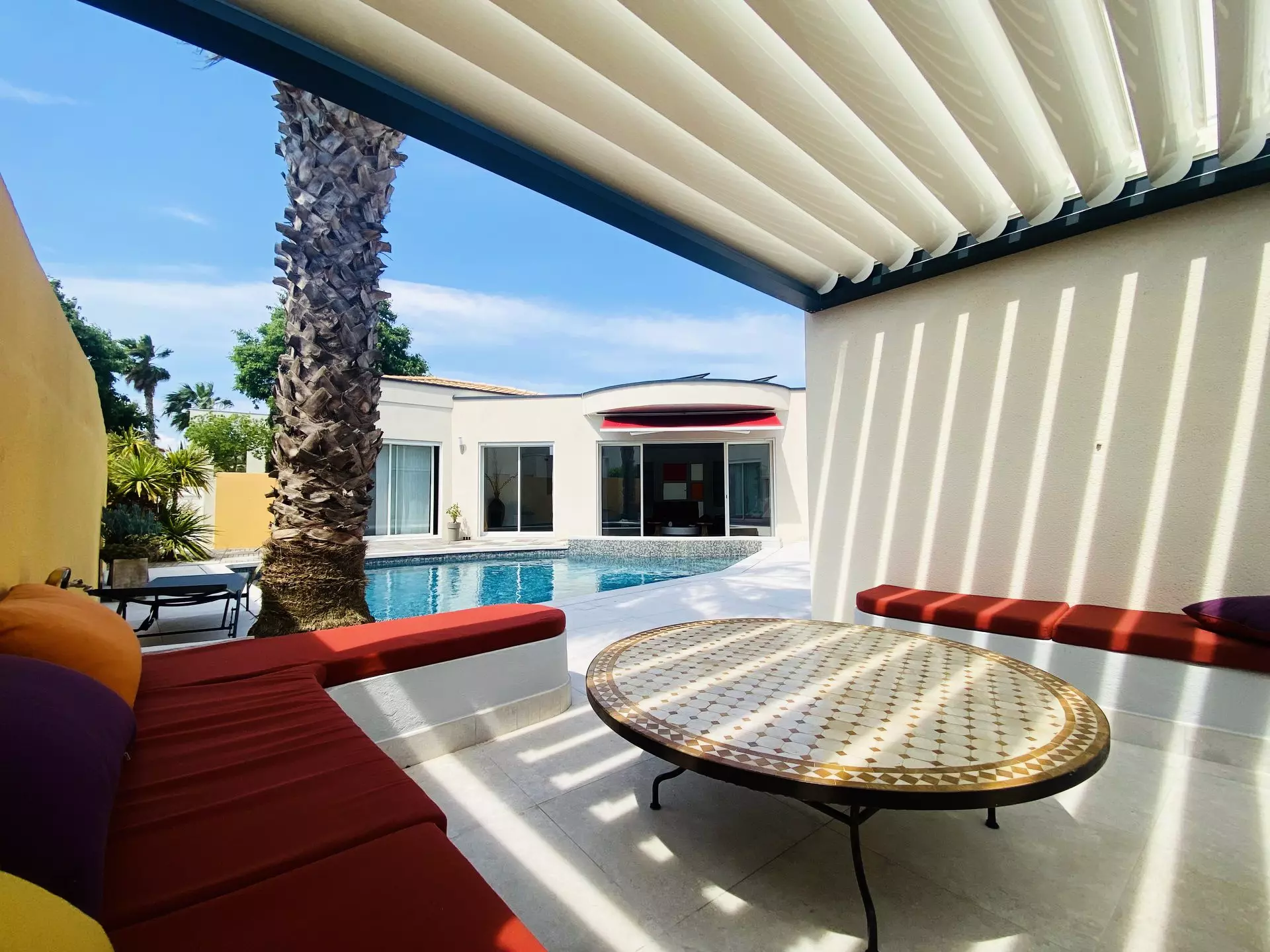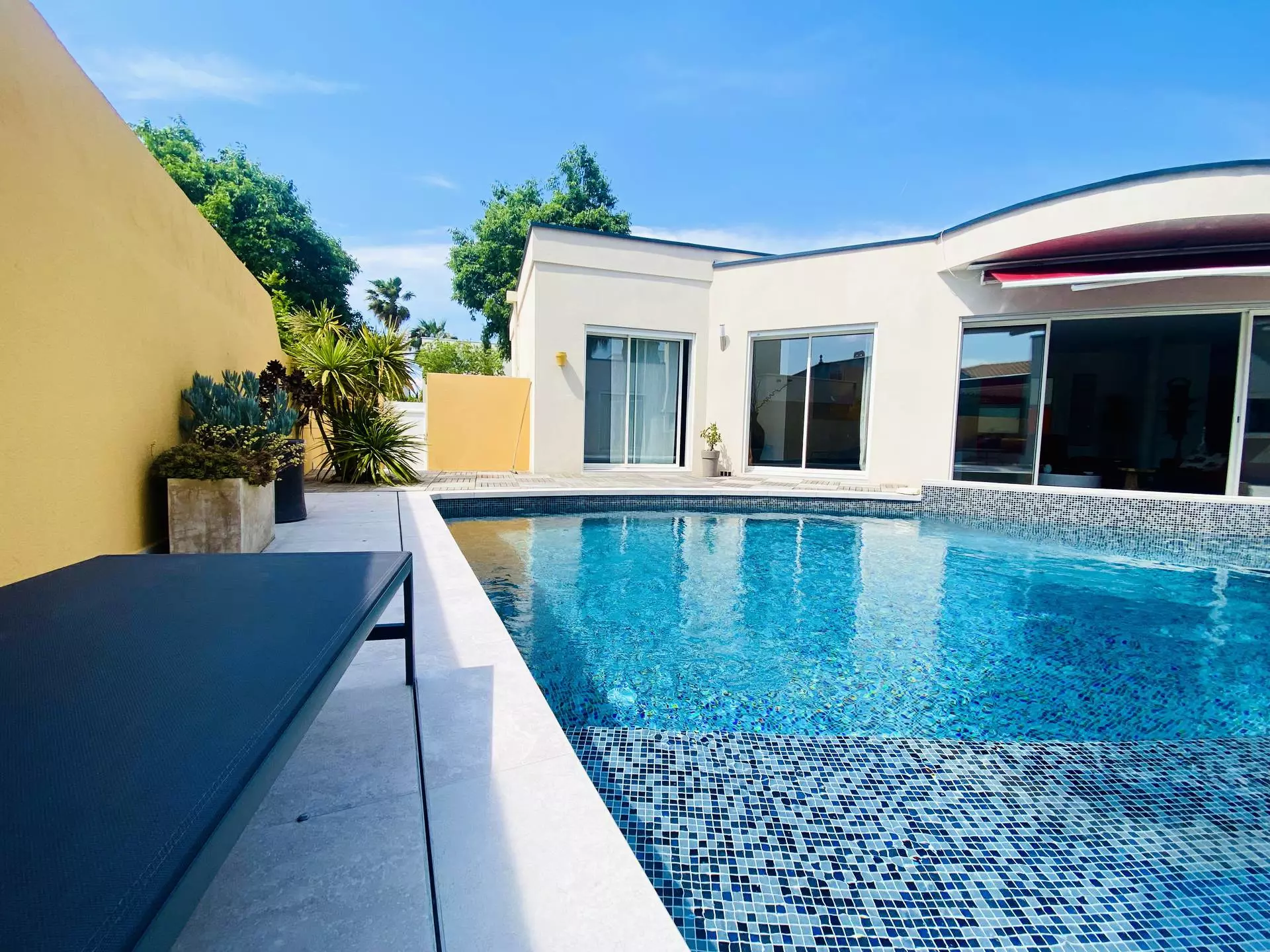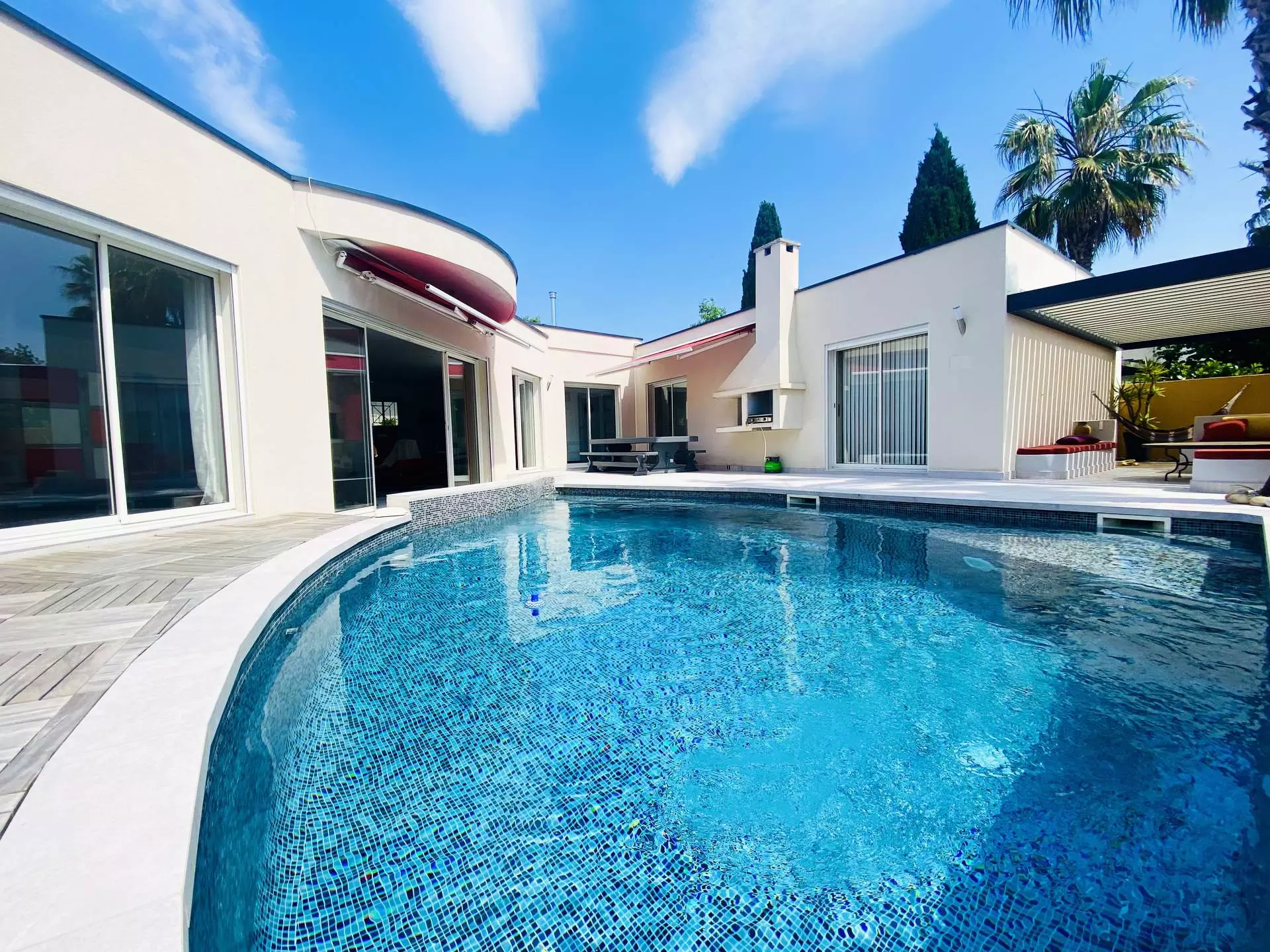 You will of course enjoy the outdoor space with the beautiful private swimming pool (approximately 6 x 8), the patio with bioclimatic pergola and the dining area with a large table and plancha.