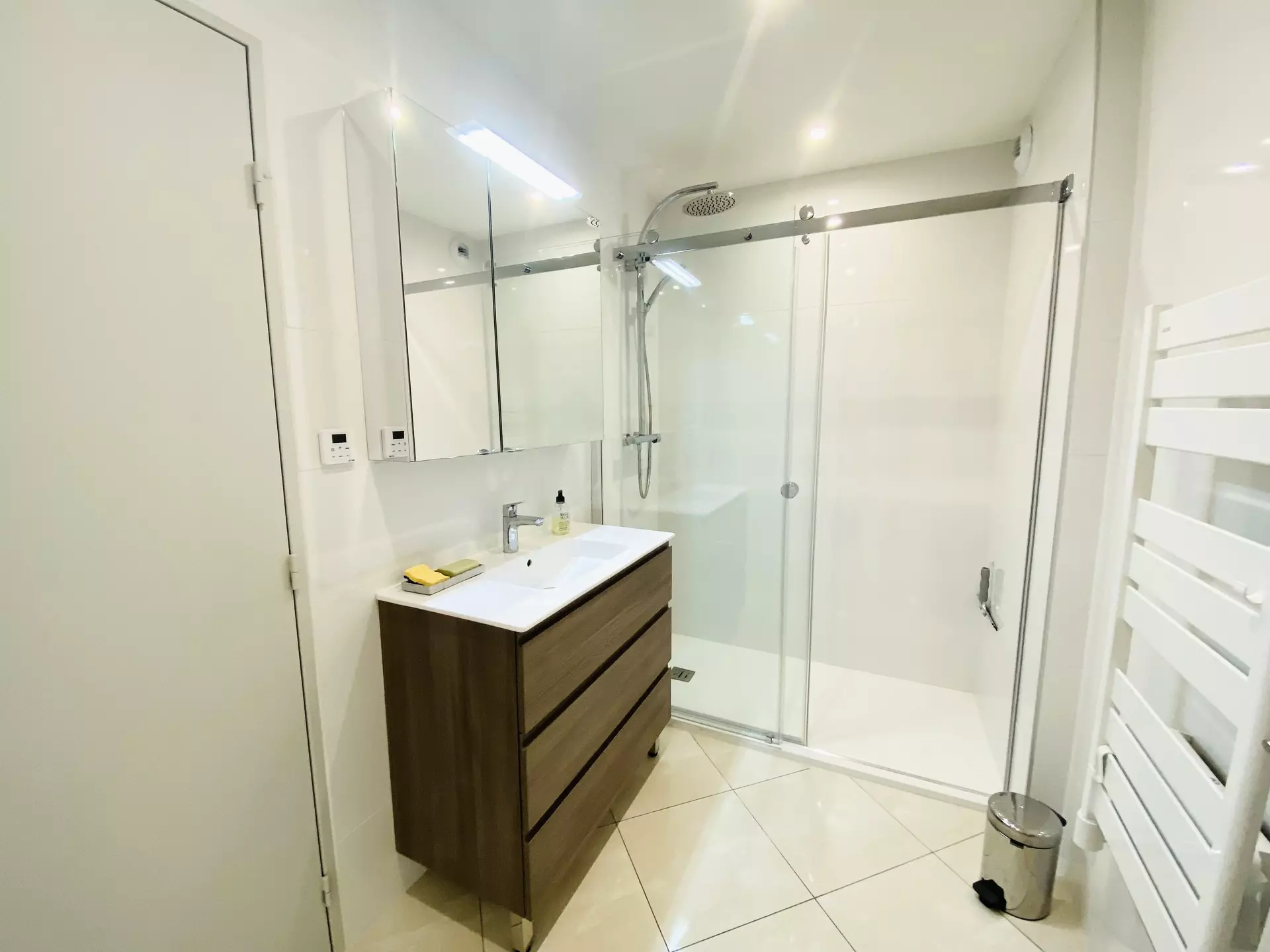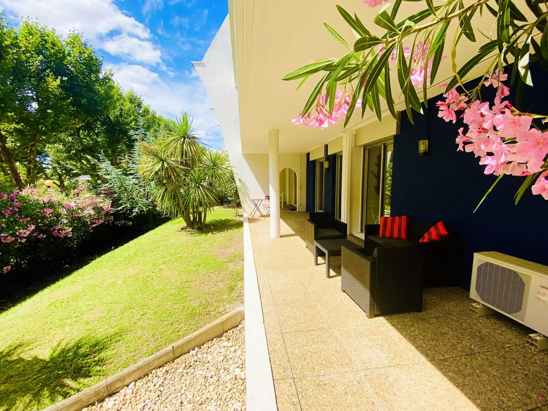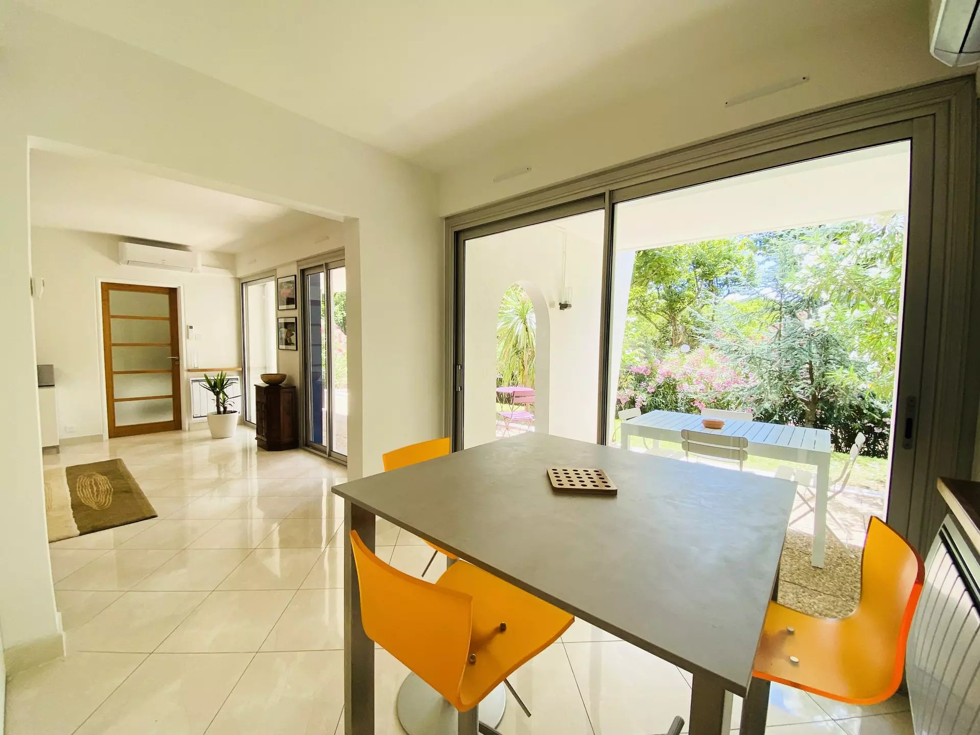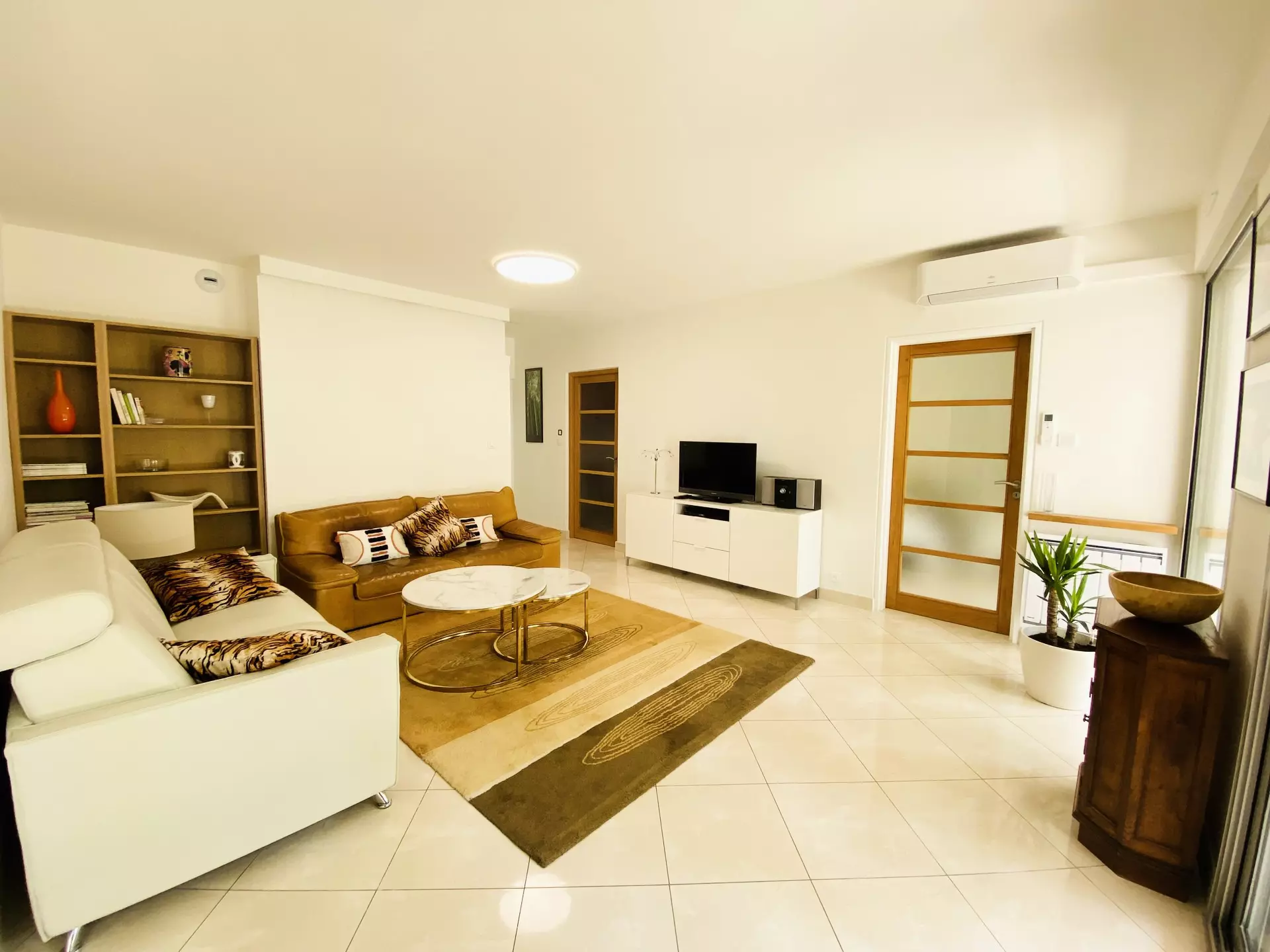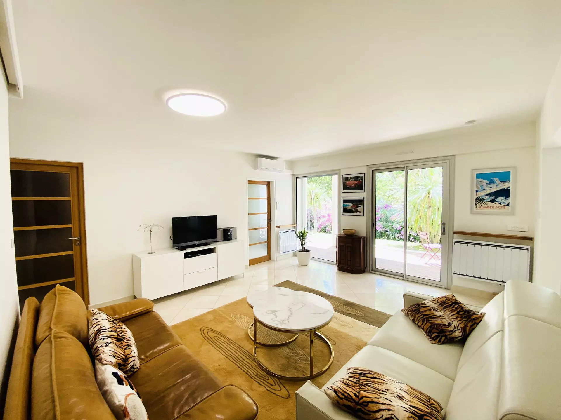 Its air-conditioned living room opens onto a beautiful terrace on the ground floor facing southwest. The apartment is composed of a living room with sofa, and 2 air-conditioned bedrooms, one equipped with a comfortable double bed (140), the other with two single beds (90), the third bed is the sofa convertible into a bed (140) in the living room.