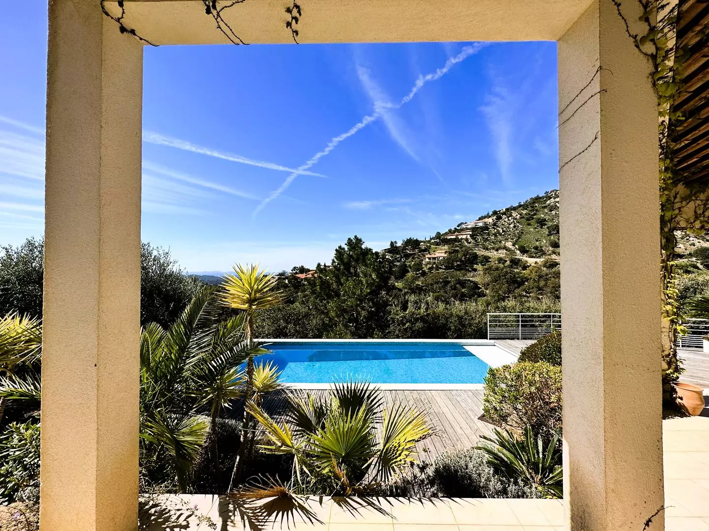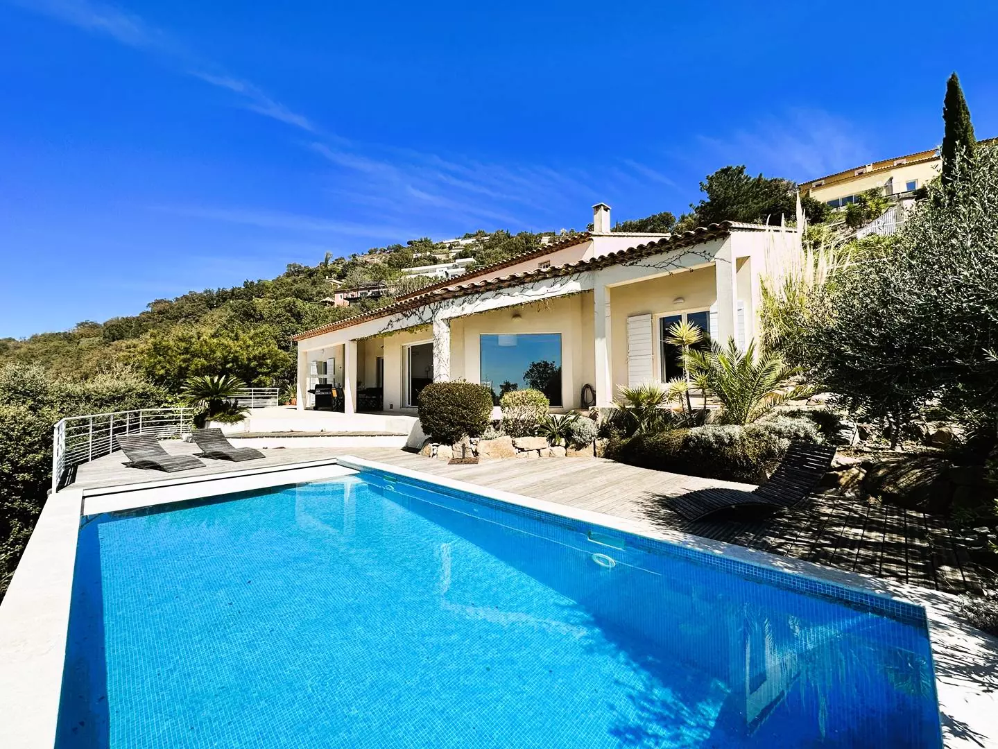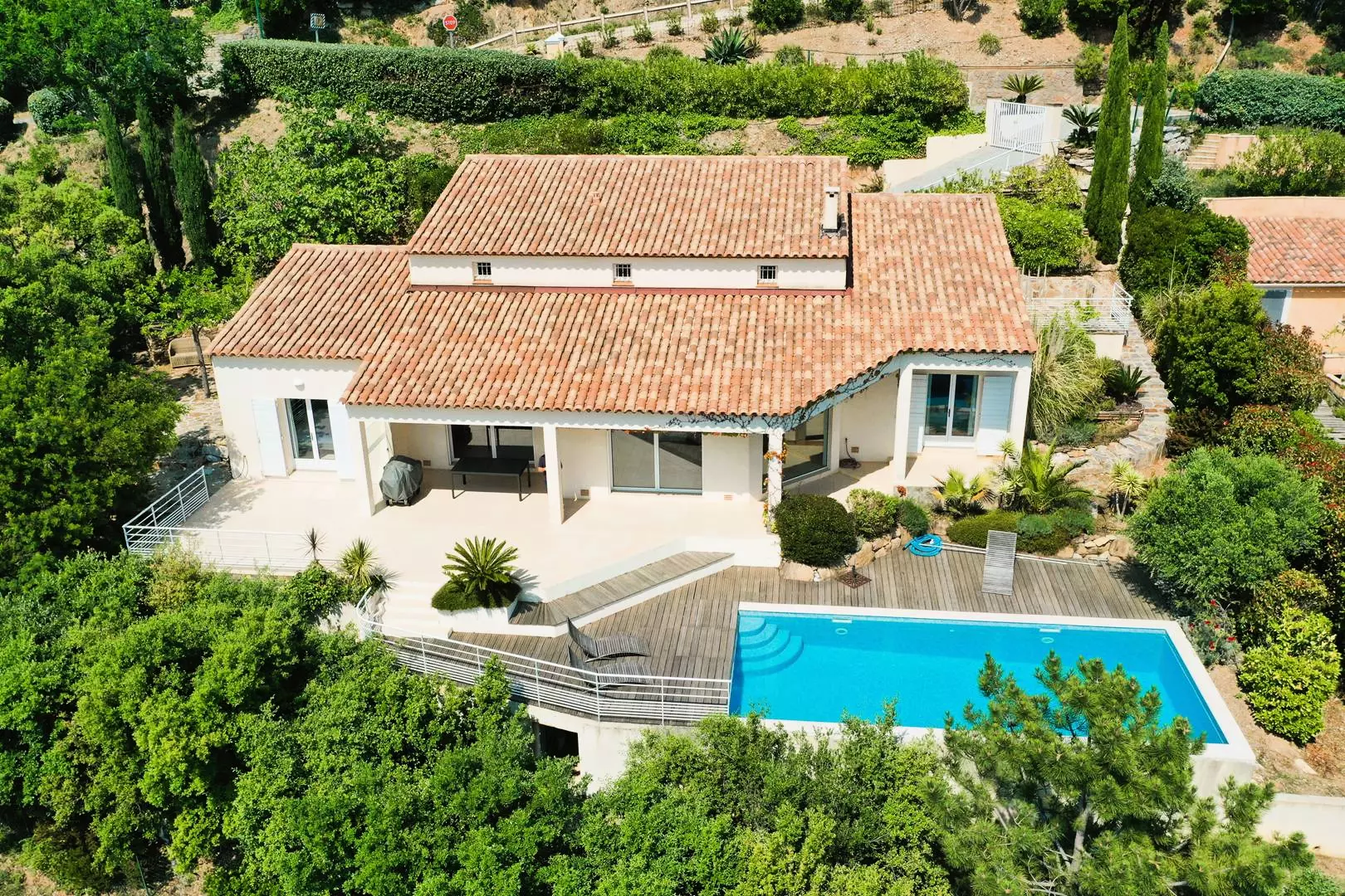 Type 5 villa for 8 people with 4 bedrooms, south-facing, with panoramic sea view, heated swimming pool and double garage, not overlooked on the Domaine de Valcros in La Londe-les-Maures.