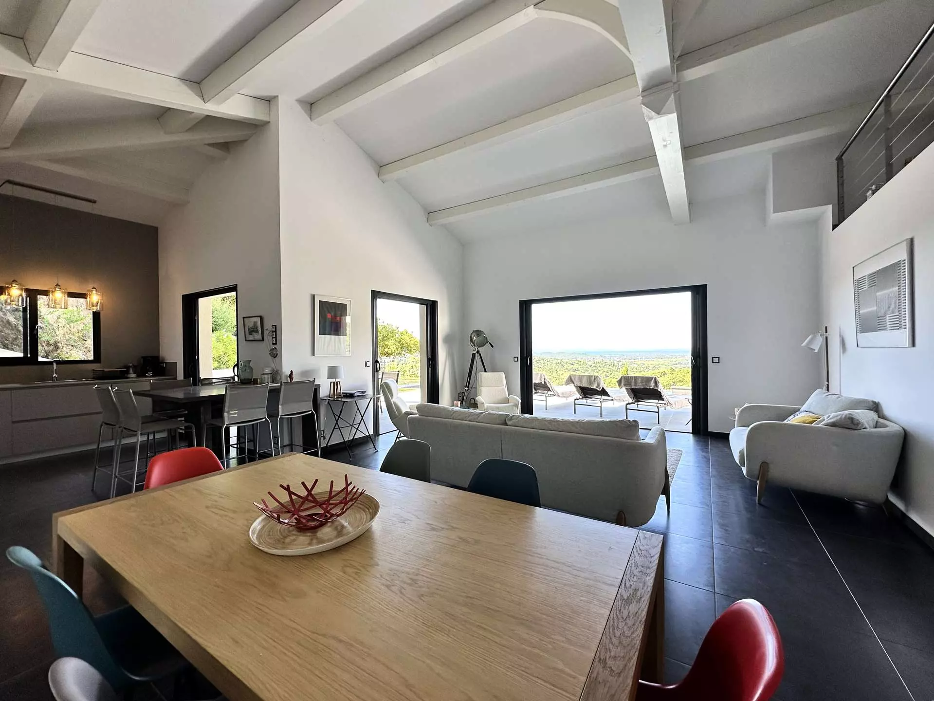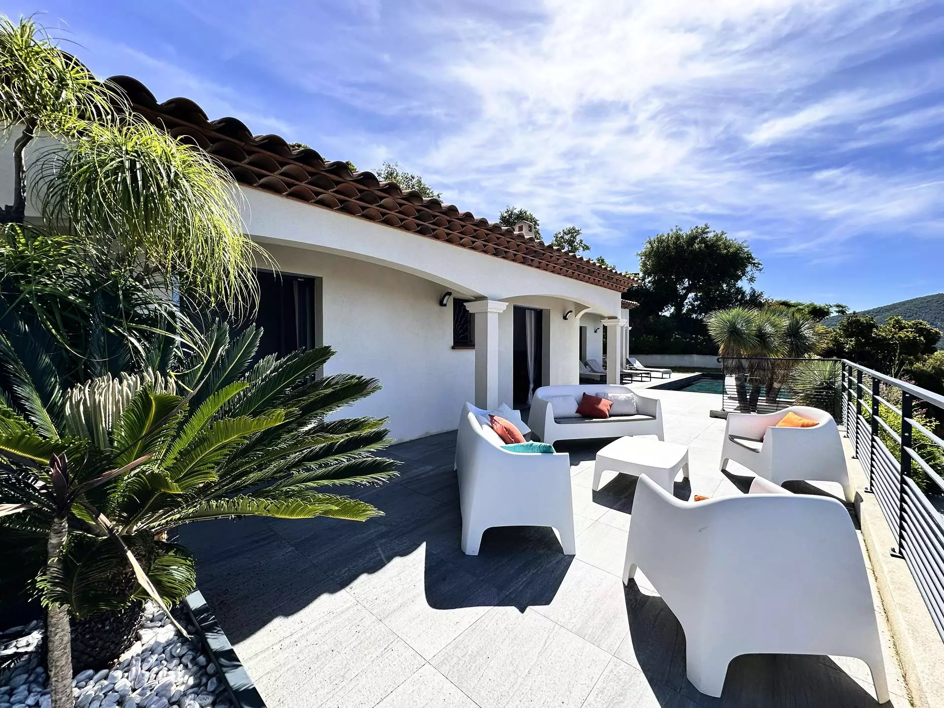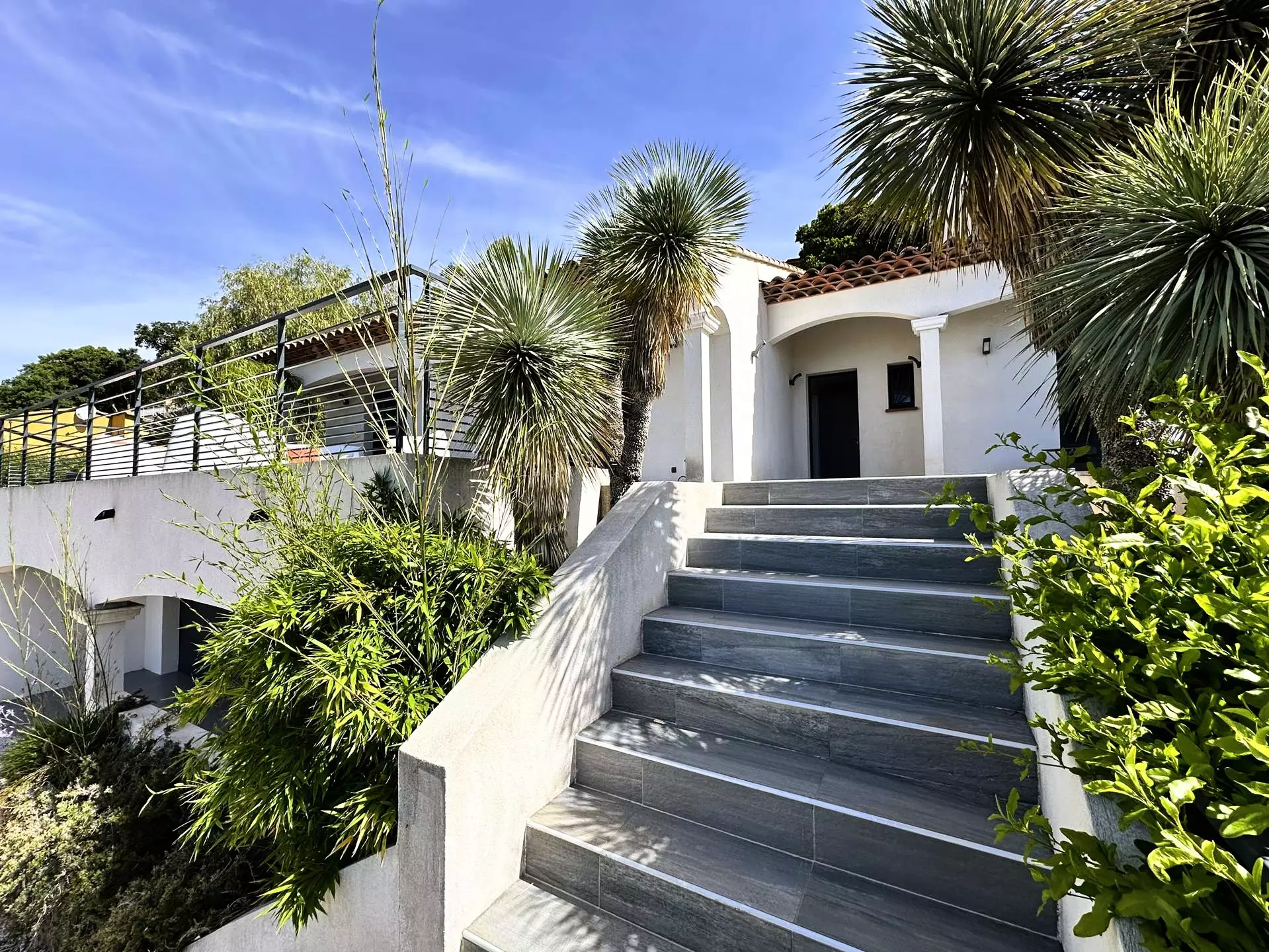 Upon arrival, it is a wonder: facing the Mediterranean, this superb villa offers a breathtaking view of the Golden Islands, Porquerolles, Port-Cros and the Giens peninsula.