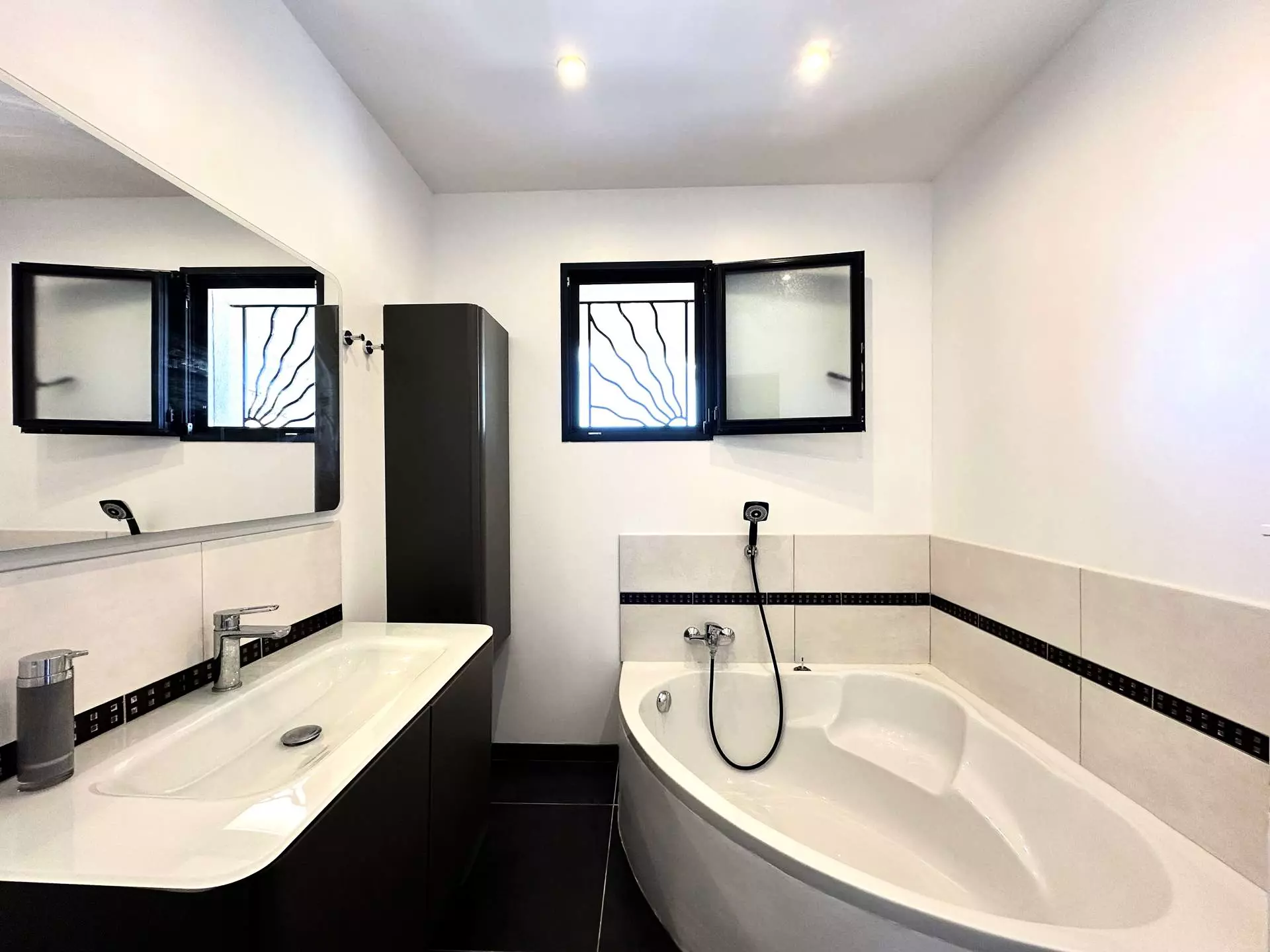 For your comfort: Secure estate, heated infinity pool (4x9m), WiFi Internet, air conditioning in the bedrooms, ping-pong table, two terraces, heated insulated outdoor shower, TV room, garage, water softener, dishwasher, laundry room with washing machine and dryer.
