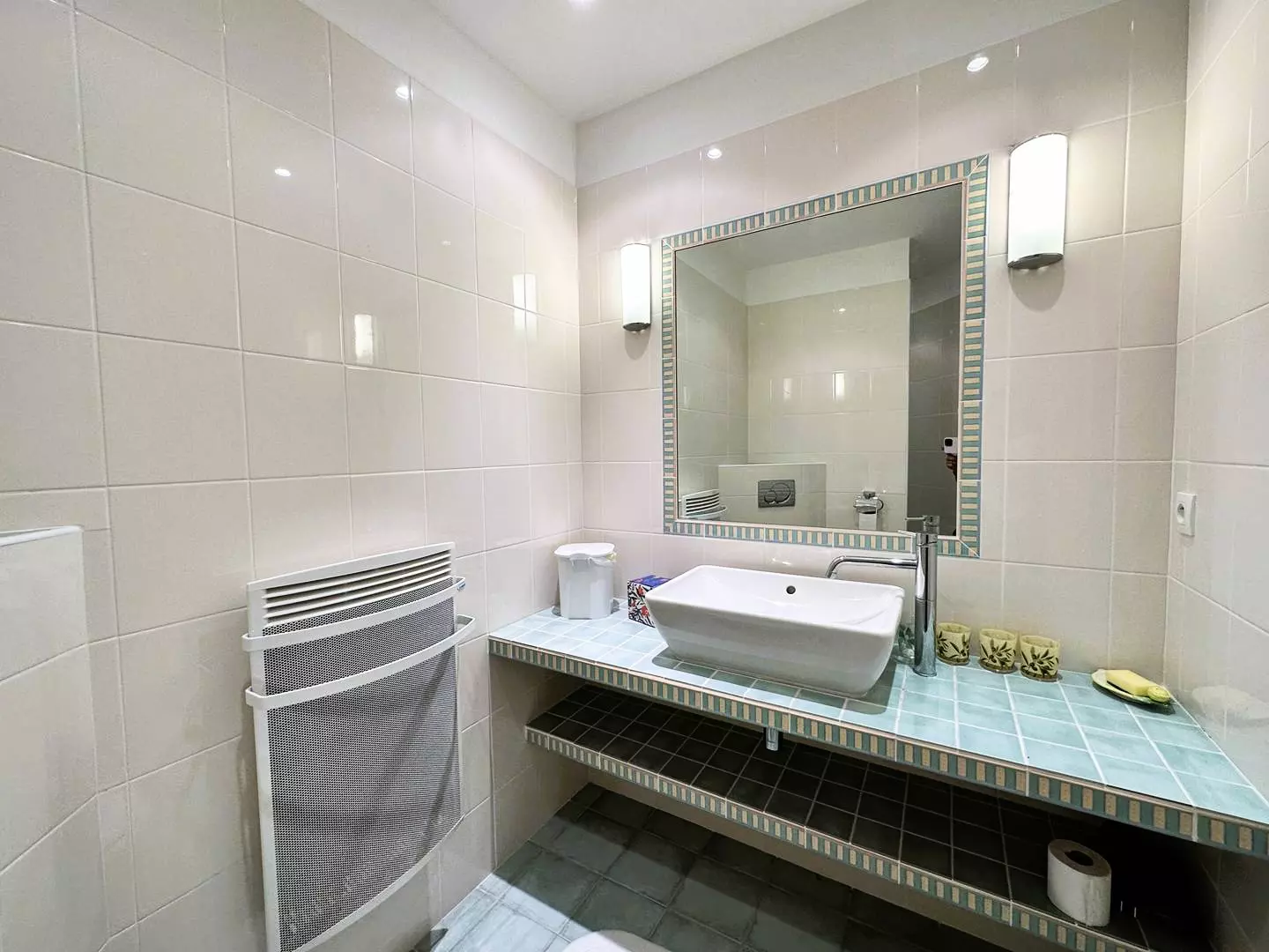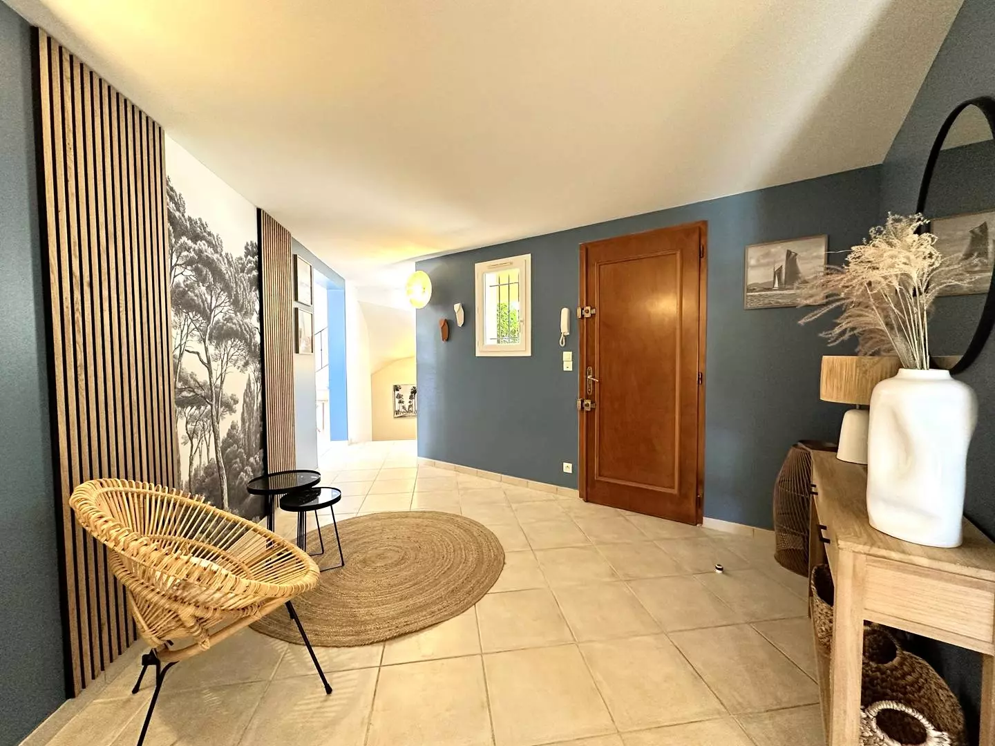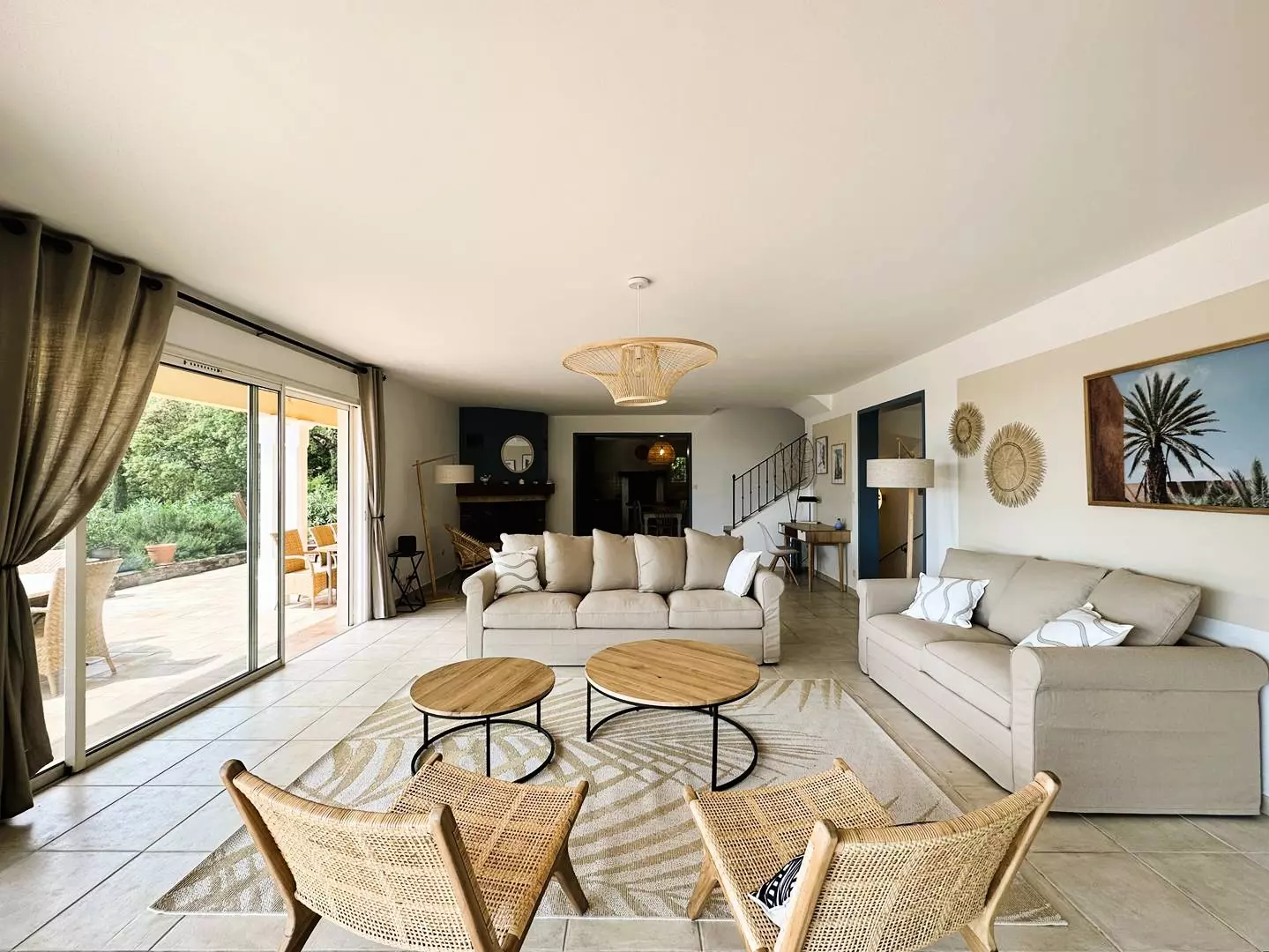 The entrance is via the main level, a vast living room and dining room, in its extension a large fully equipped kitchen, all immersed in a Mediterranean decor opening onto a vast terrace with sea and swimming pool views. Also at your disposal, an office space equipped with a very high-speed fiber internet connection.