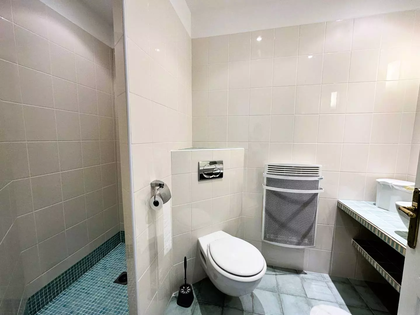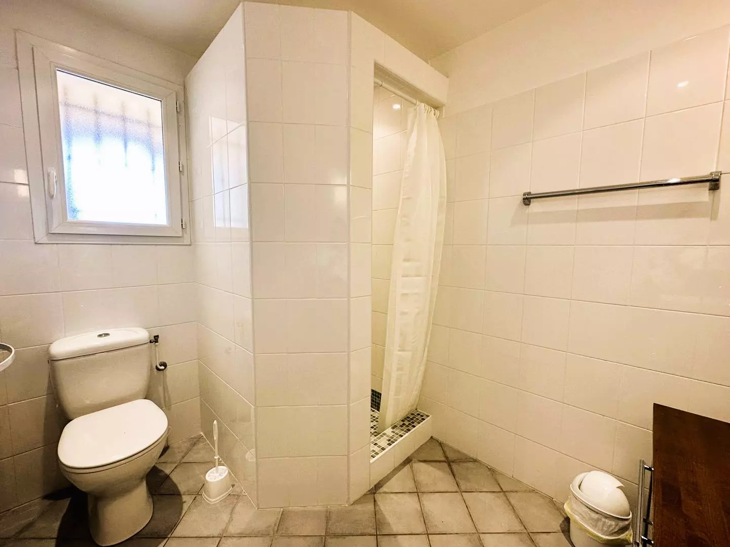 A bathroom/shower, a separate toilet.