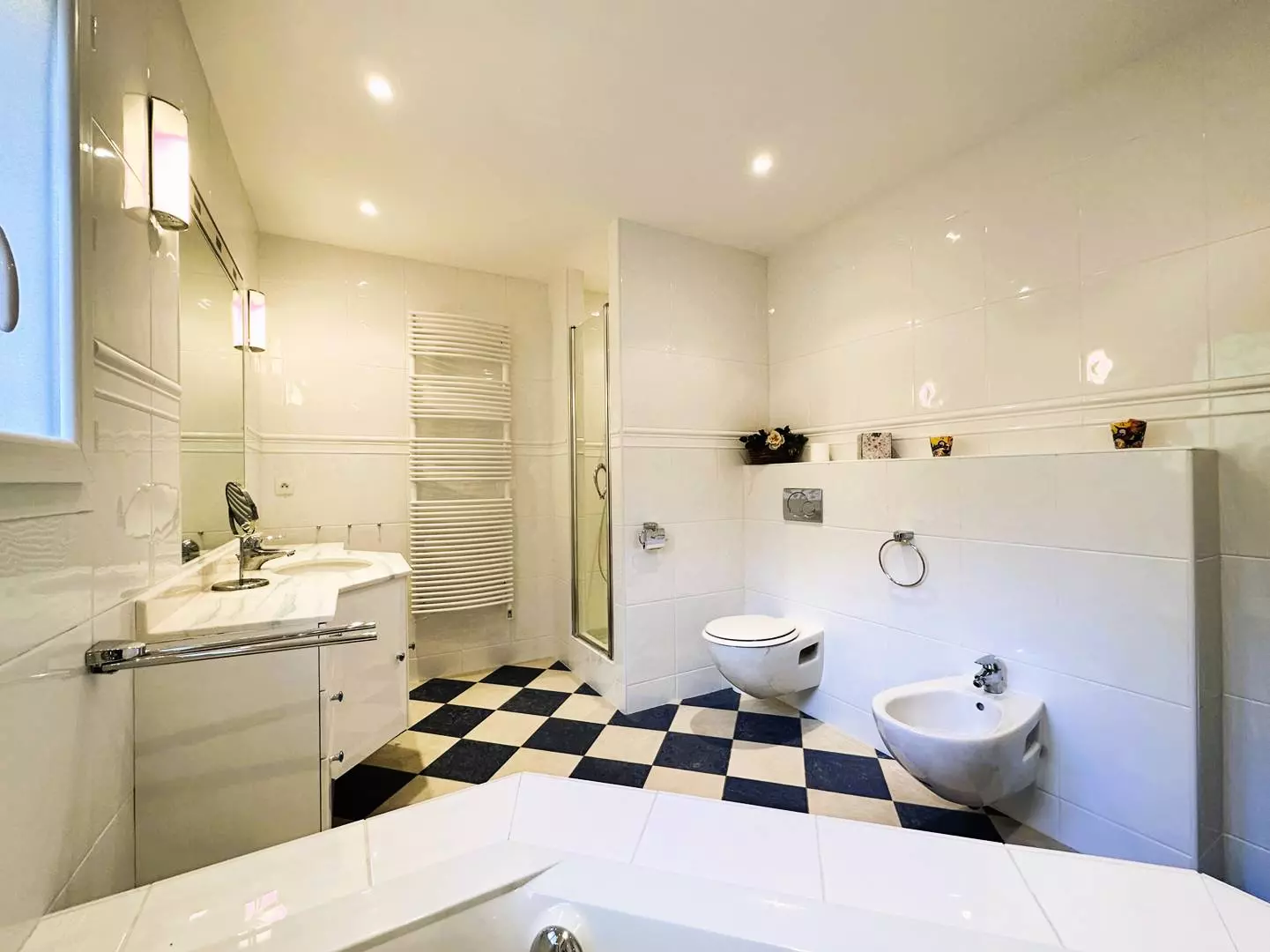 At your disposal, two garages, parking for two vehicles possible within the grounds of the villa as well as outside the villa.