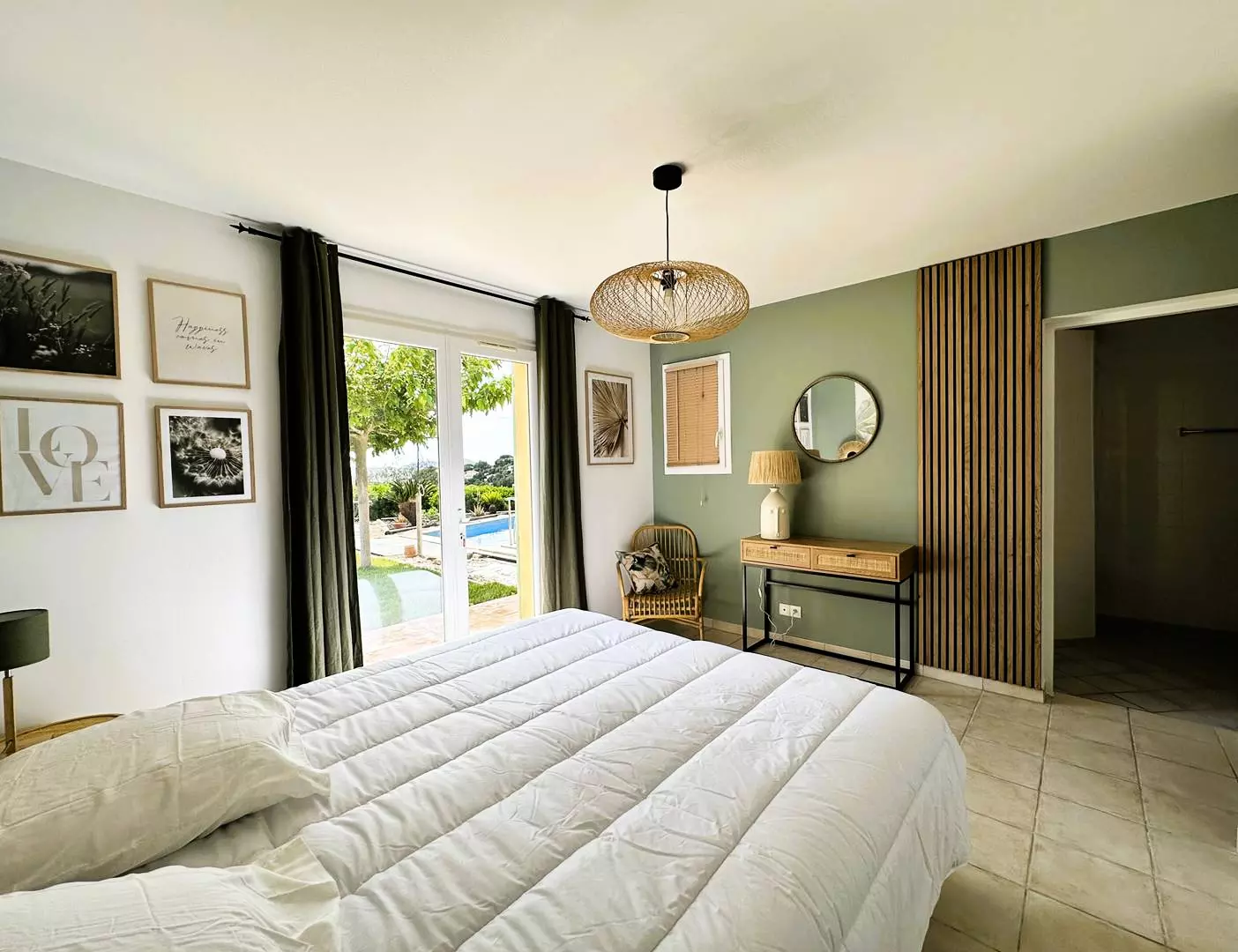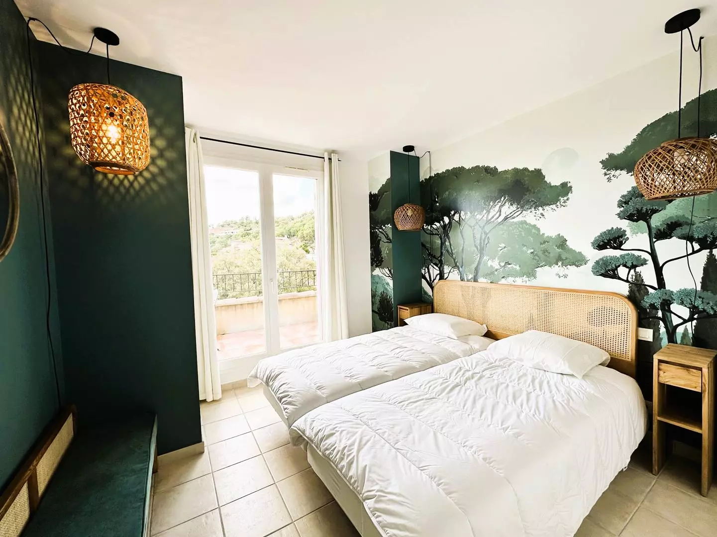 A double bedroom with 2 twin beds (80*200), storage, private terrace, superb sea and swimming pool view.