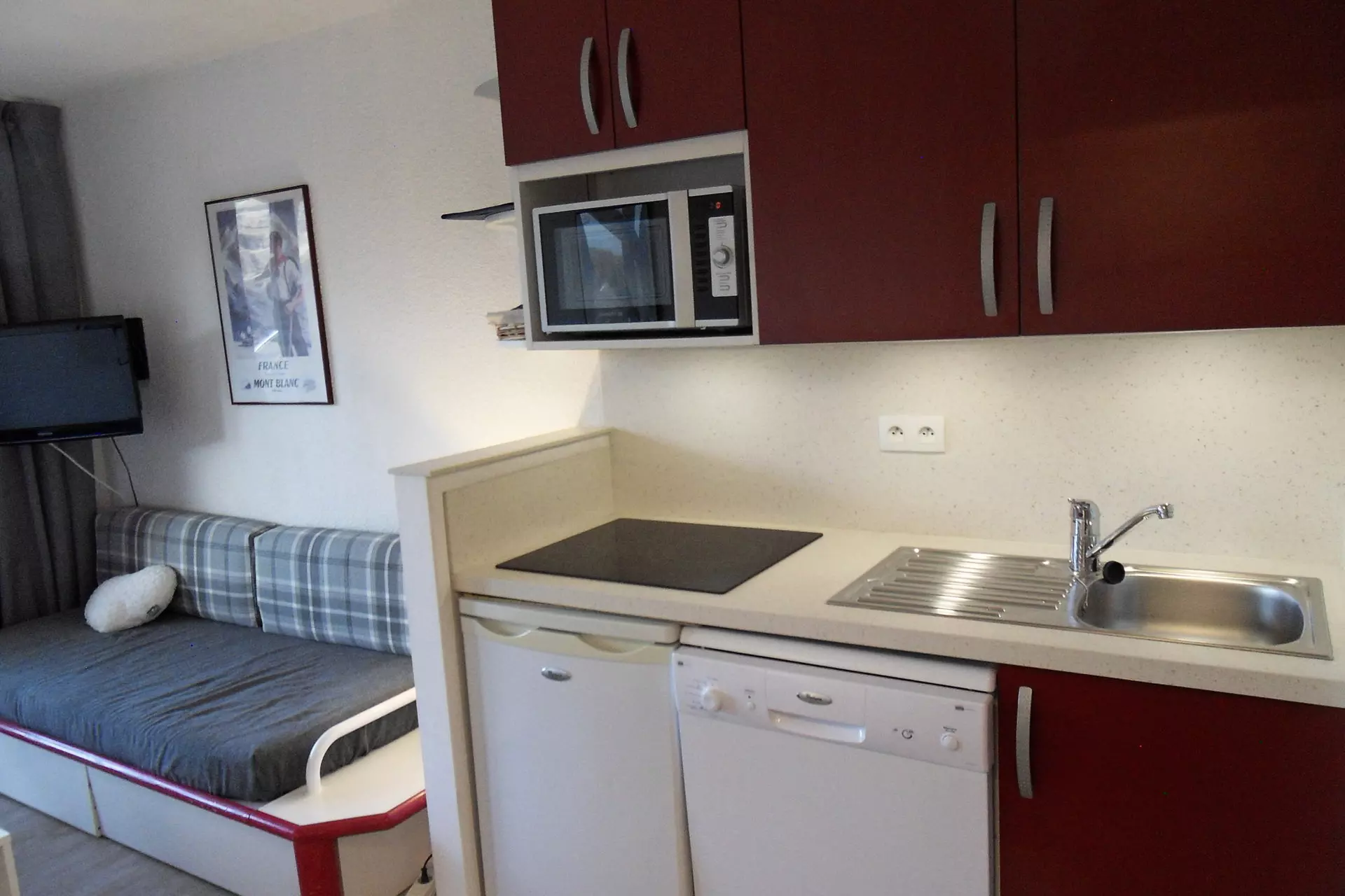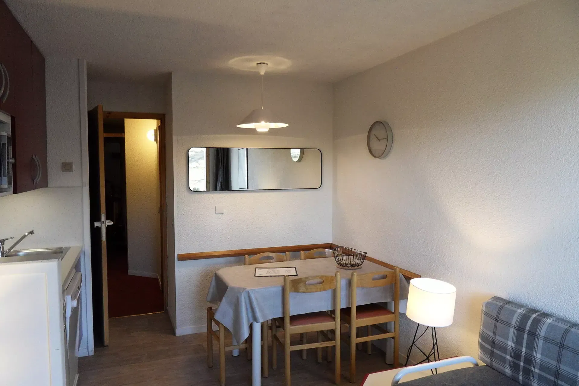 It is located south and on the 1st floor with a balcony and view of the slopes.