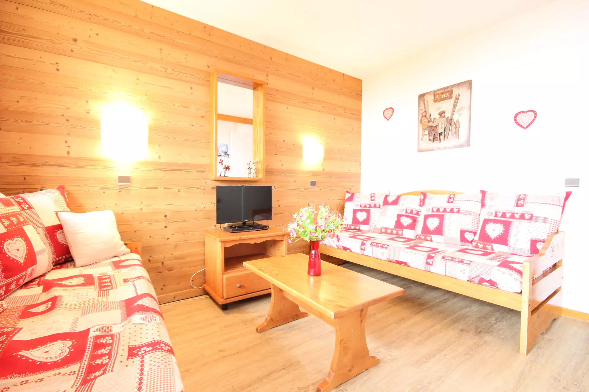 Located in the 1DE residence in Les Coches, 150m from the slopes and shops. This 41m² second-floor apartment sleeps 6 and features a balcony, dual north-west/south exposure, and Mont Blanc views.