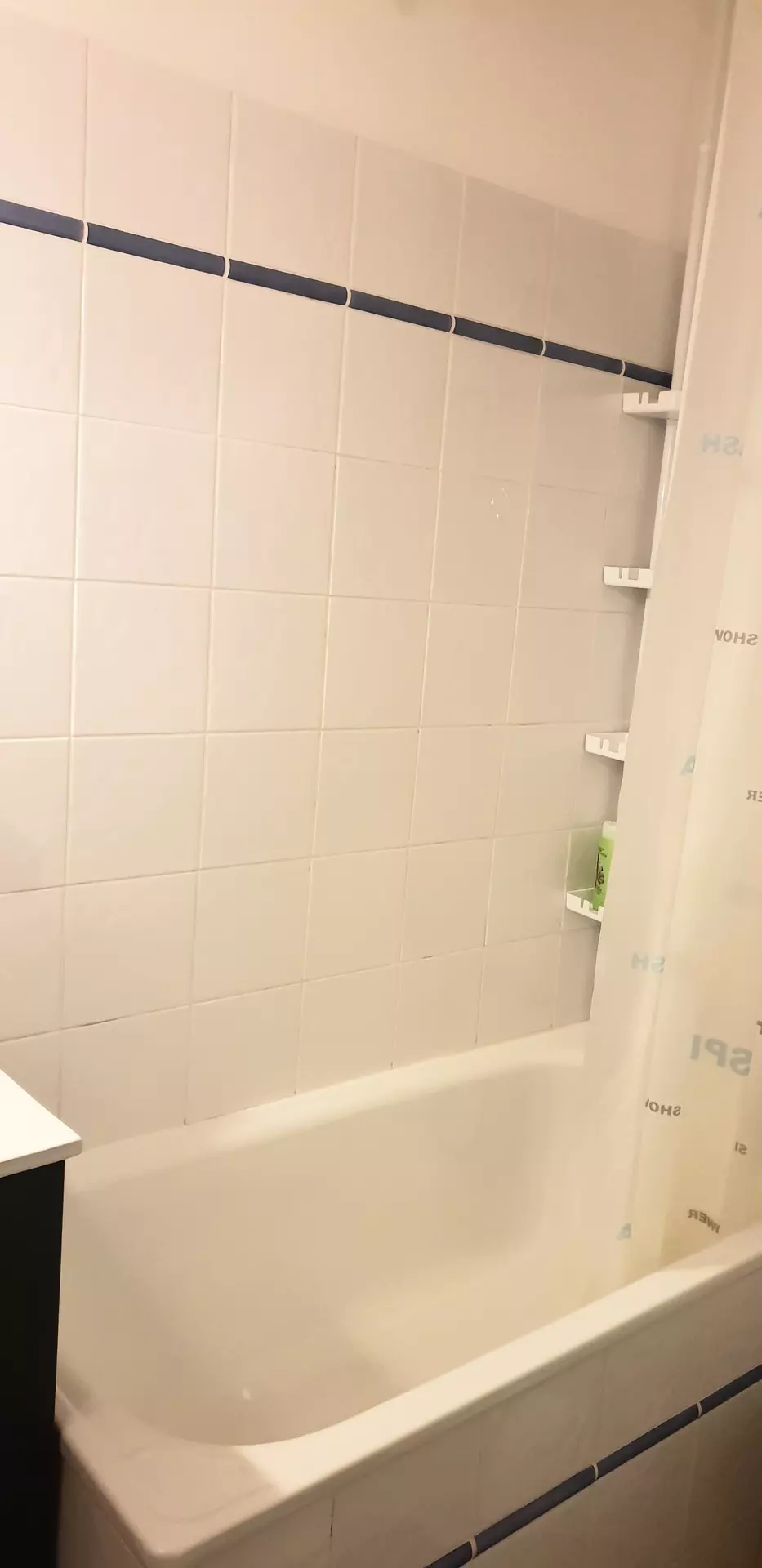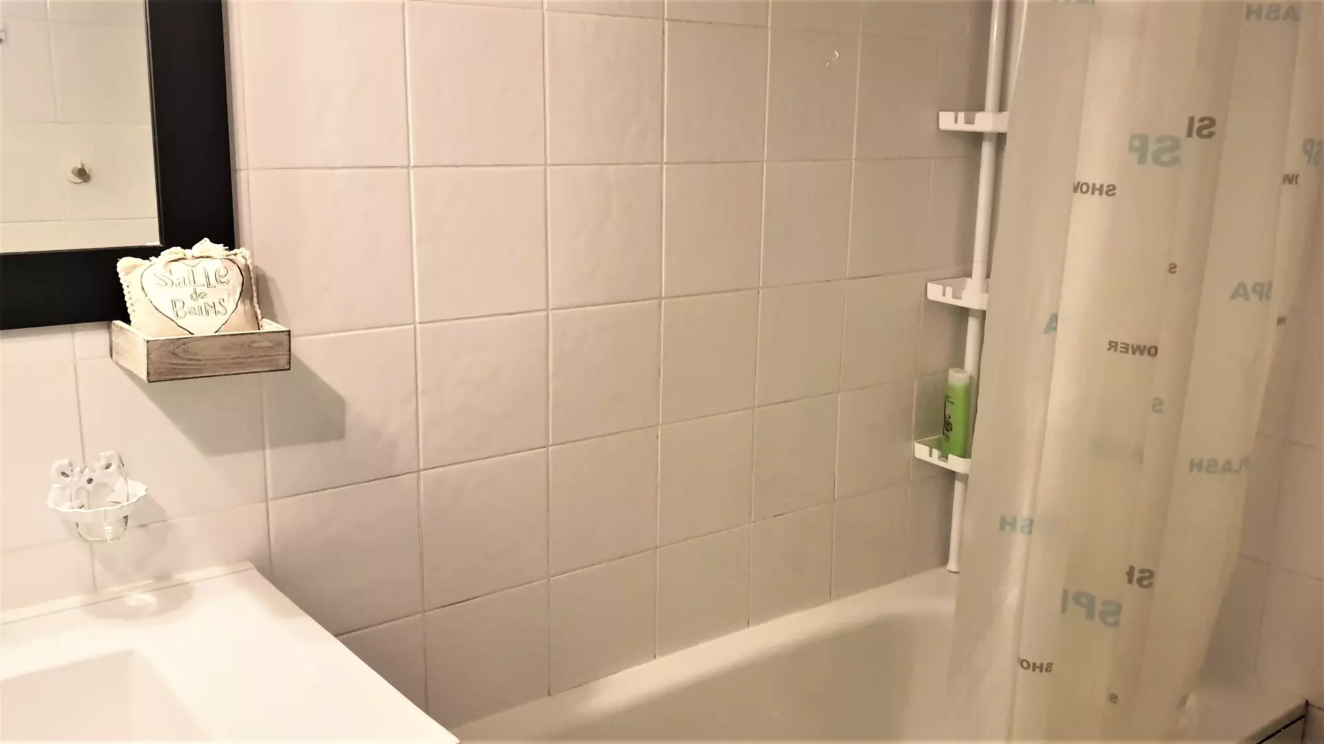The kitchen, located in the entrance, is equipped with a microwave, 2 electric hotplates, a top refrigerator and a dishwasher.