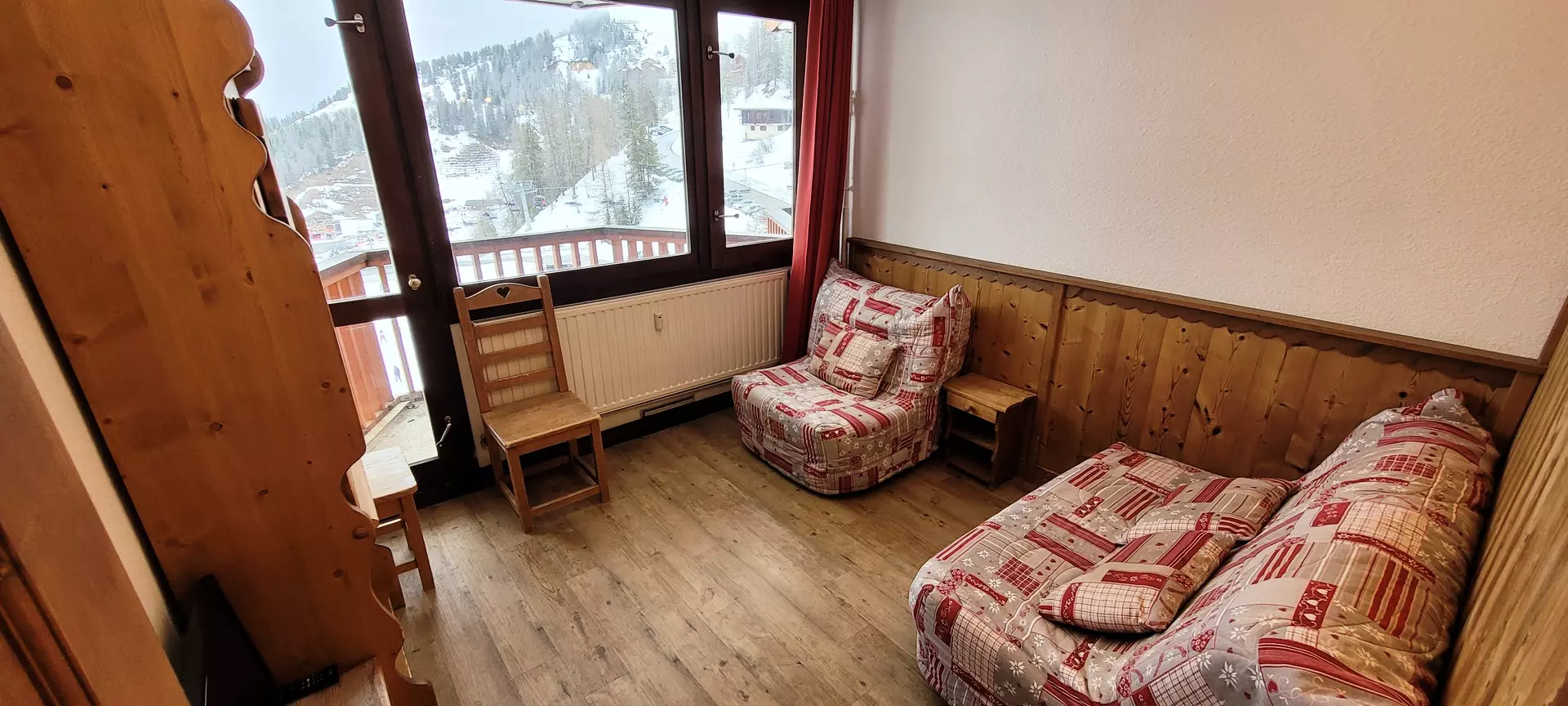 Located in the Le France residence, at the foot of the Plagne Centre slopes. This 16m² comfort studio for 2 people has been renovated in a modern mountain style and features a balcony overlooking Mont Blanc.