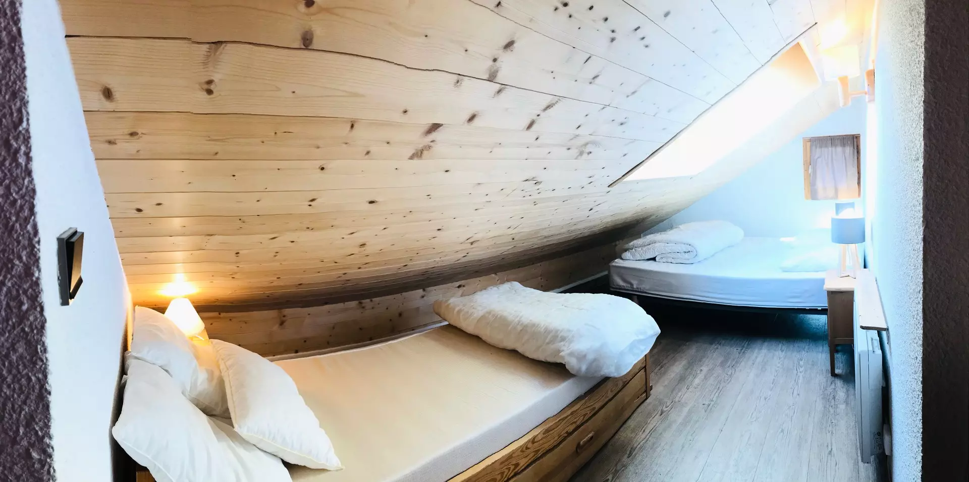 The accommodation is equipped with duvets