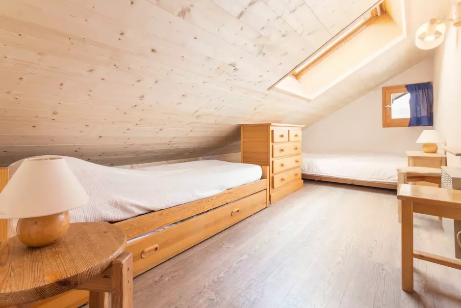 Its attic bedroom is equipped with 1 single bed + 1 double bed and separate toilet.