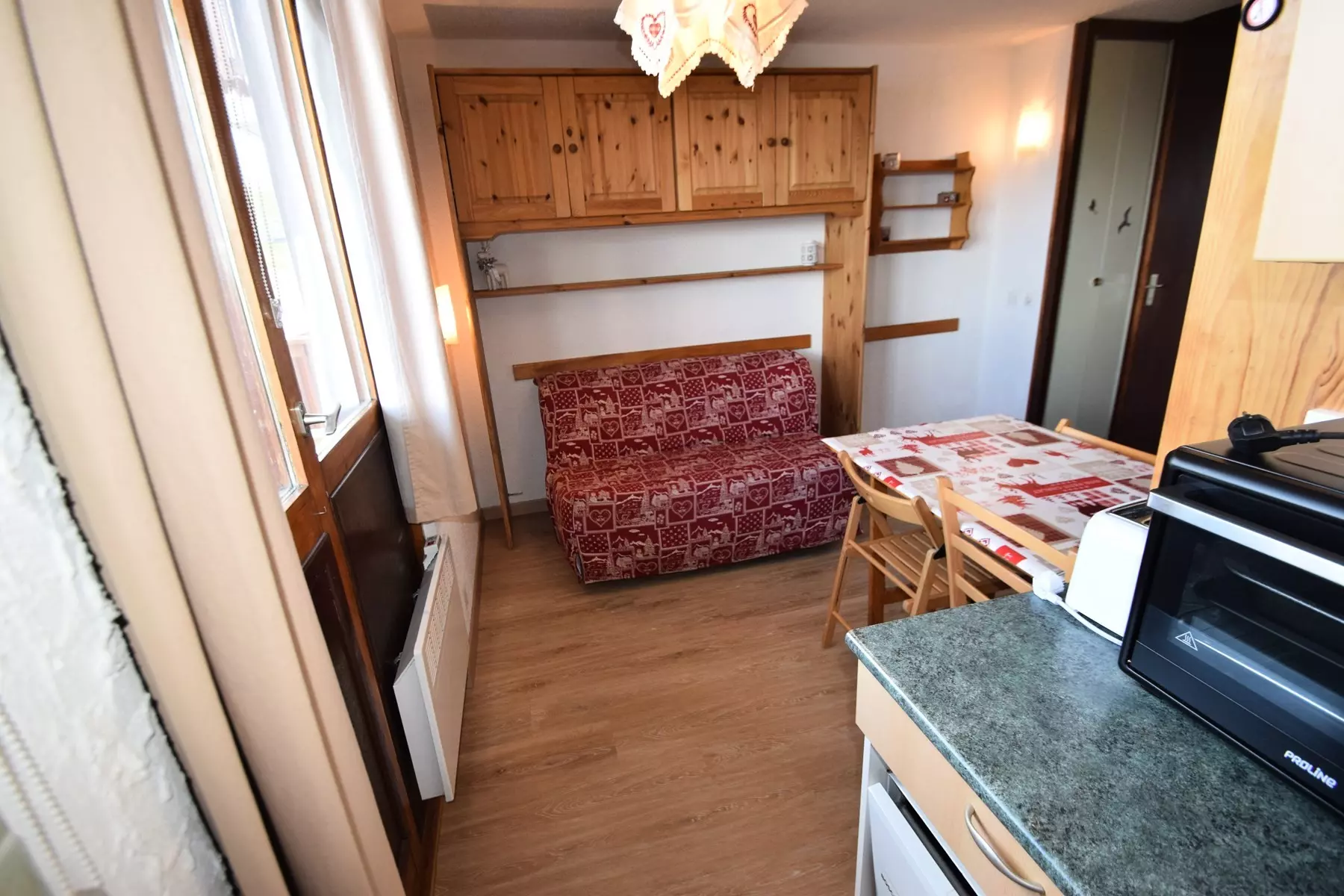Studio 3/4 pers, 20 m2, balcony facing North, mountain and valley view, 1st floor, elevator + stairs - Kitchen: 2 ceramic hobs, dishwasher, refrigerator, oven and microwave. - Living room: dining area, a BZ sofa bed 140x190cm, TV - Cabin area: 2 bunk beds (80x190cm) - Bathroom: bathtub, WC included. Bedding: duvets - floors: vinyl planks for living room/entrance - Tiles for bathroom/kitchen Ski locker n°165 on the ground floor, 1 floor below the slope. Very pleasant studio - Pets not allowed - The residence: 4 floors, quiet, at the foot of the slopes and ski lifts, close to shops, shuttles and Télébus (direct express link to Plagne Centre) - Free outdoor parking in front of the building - Reception and key collection: ALP AGENCE - Galerie Le Pelvoux - 73210 PLAGNE CENTRE - Tel: 04 79 55 12 20