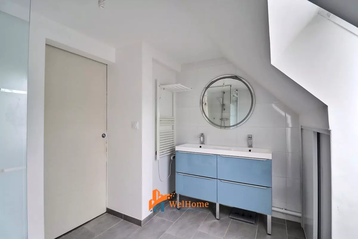 On the ground floor, a comfortable bedroom with a 160x200 cm bed provides a peaceful space for the night. The bathroom is equipped with a shower, a bathtub, and two sinks, and a separate toilet adds to the convenience.