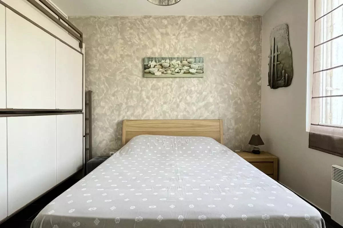 The apartment is decorated in a nautical style and is located in an enclosed courtyard, which allows for safe parking.