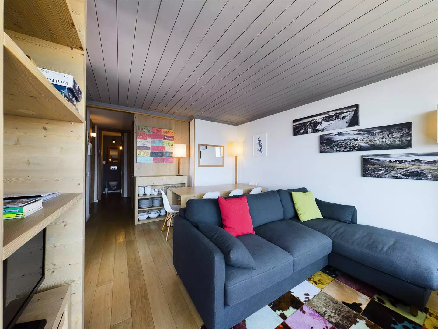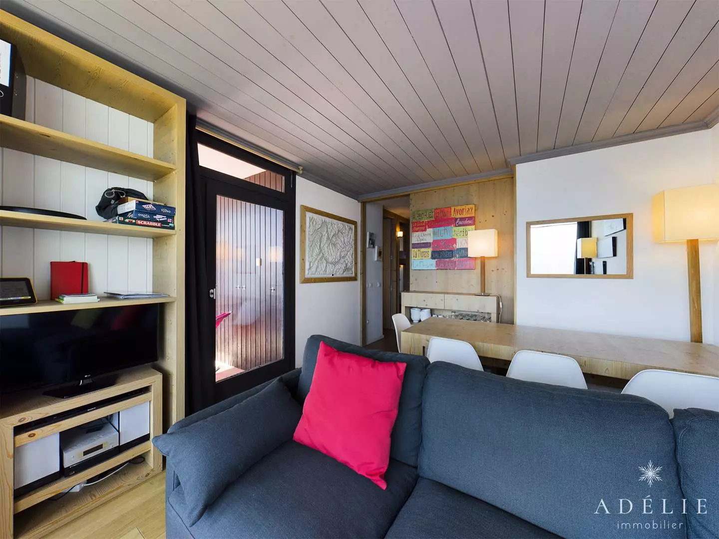 Living room with dual exposure, south and west, and access to two balconies. Double sofa bed.