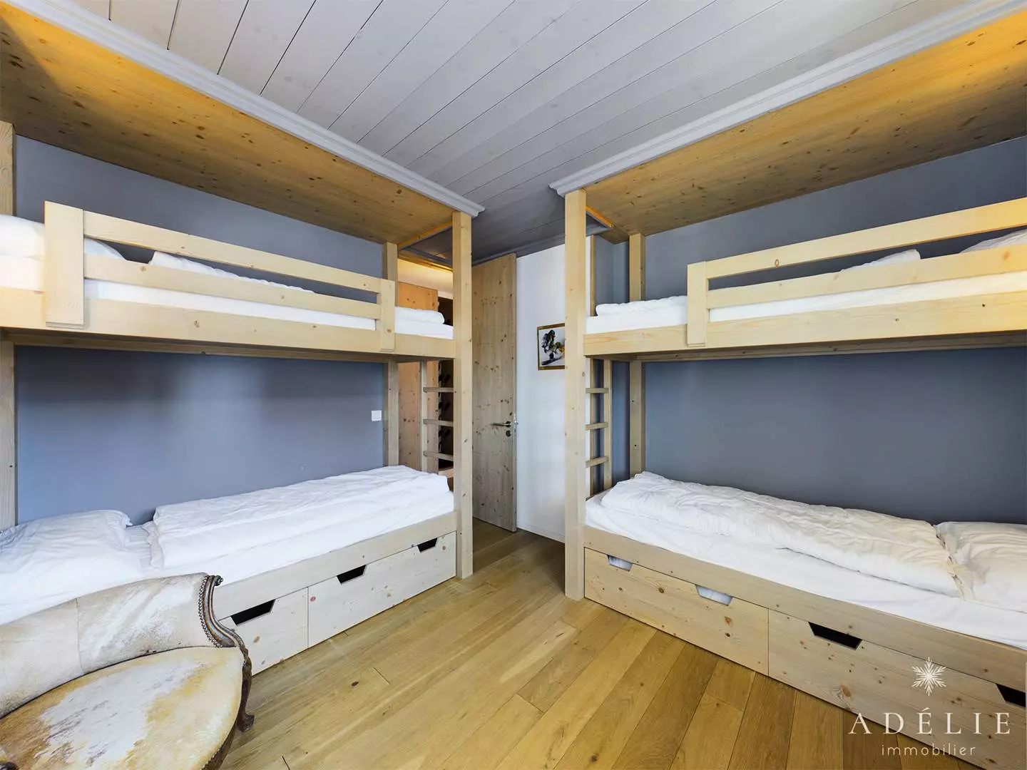 Bedroom with 2 x 2 bunk beds of 80cm x 190cm.