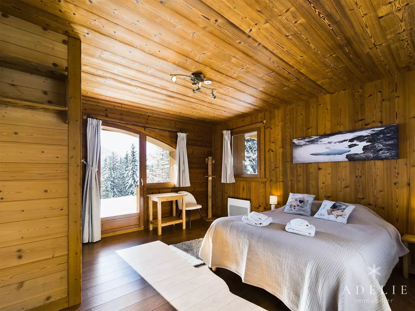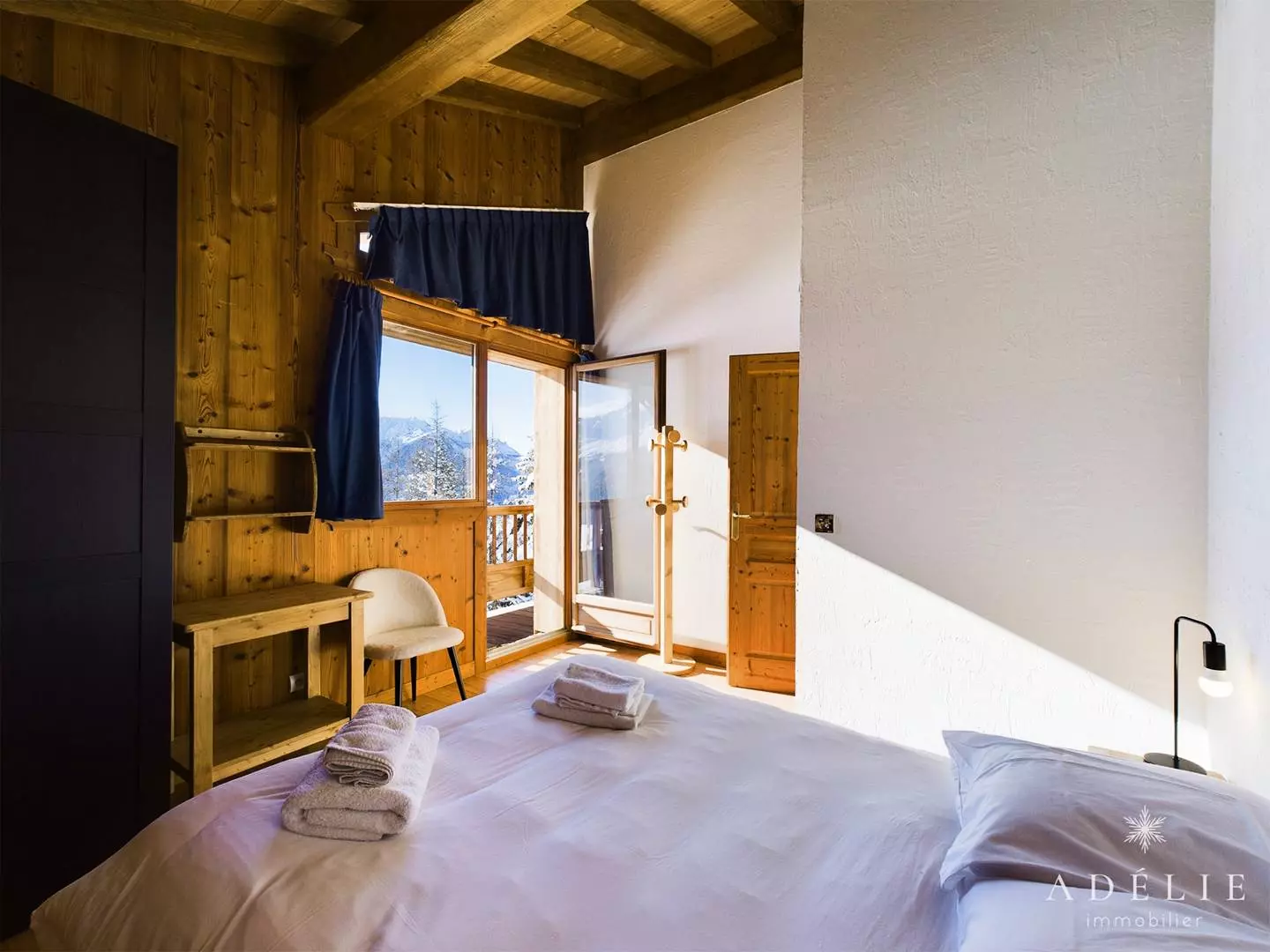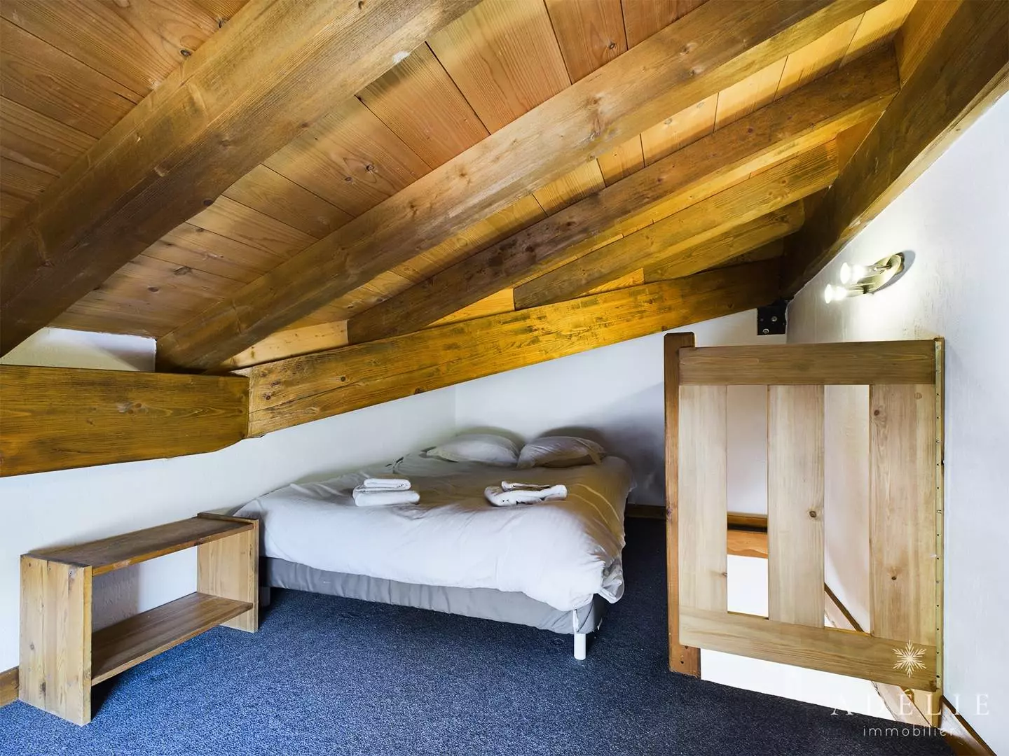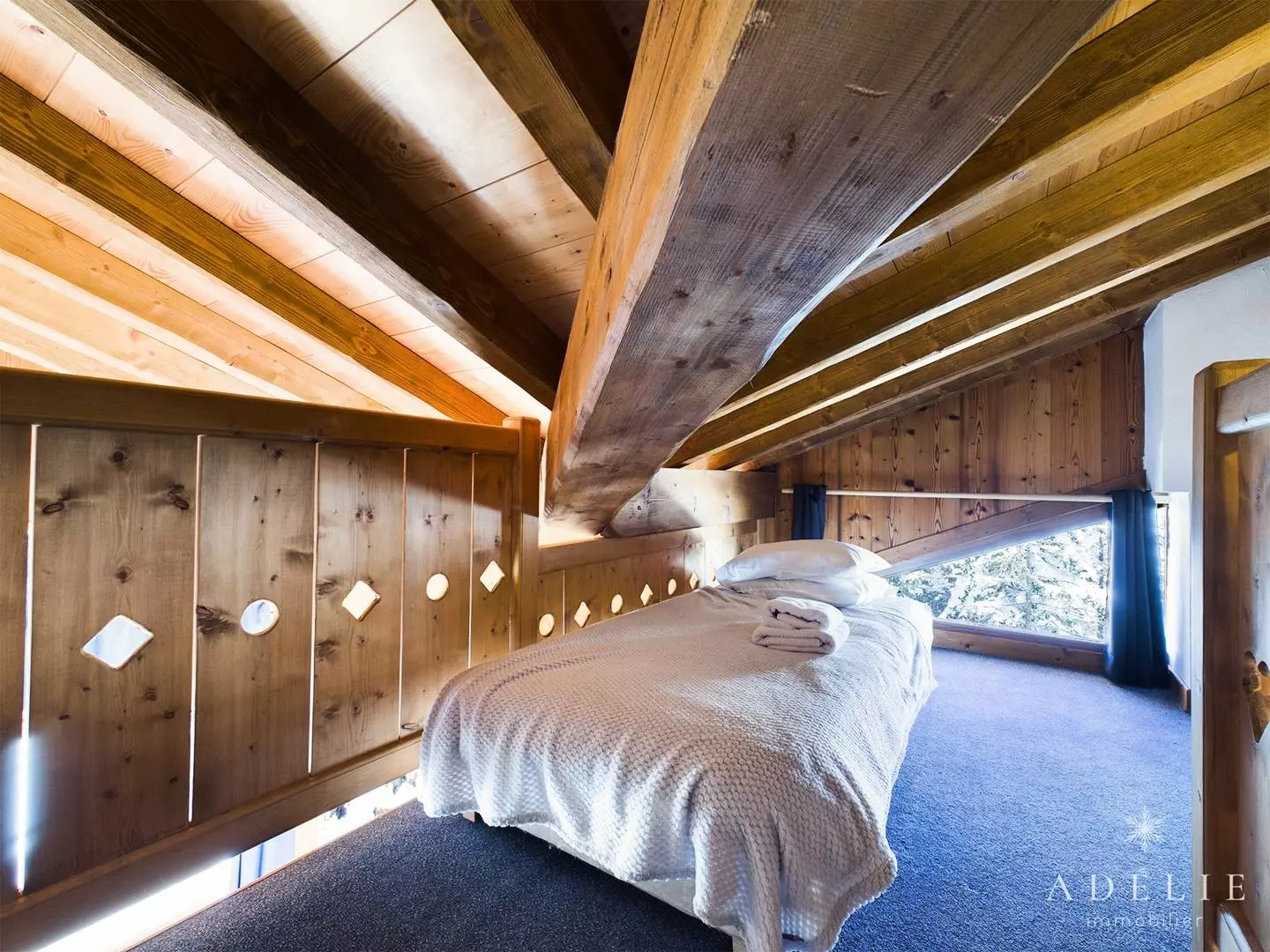 -on the 2nd floor: living room, bathroom with WC, 2 bedrooms with mezzanine 1m80 1 with double bed and single bed, 1 with 2 single beds +2 single beds, 1 master bedroom with double bed. Private balcony of 13 m2.