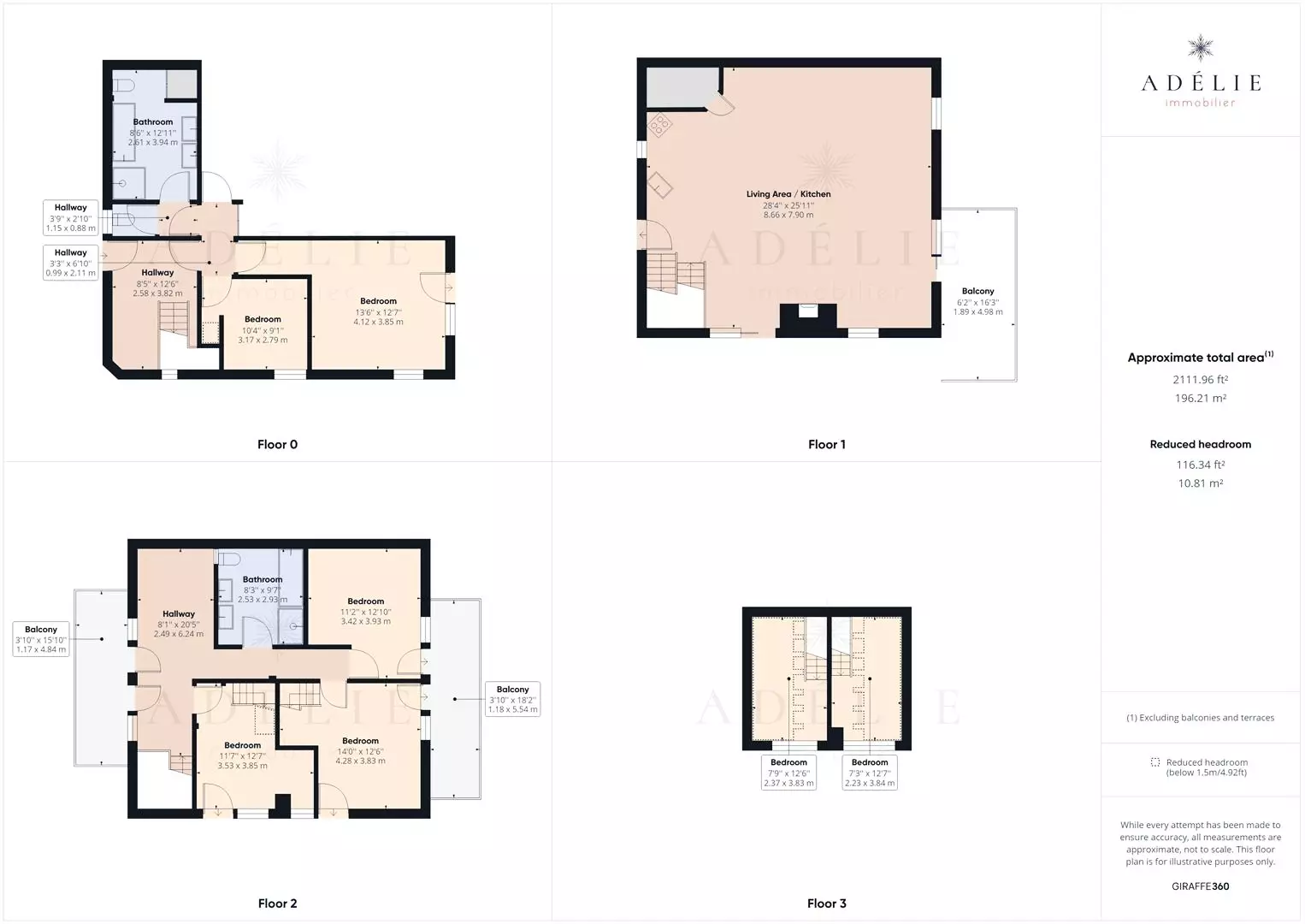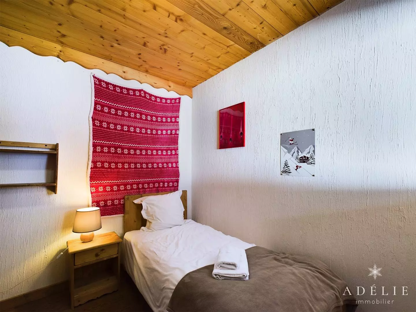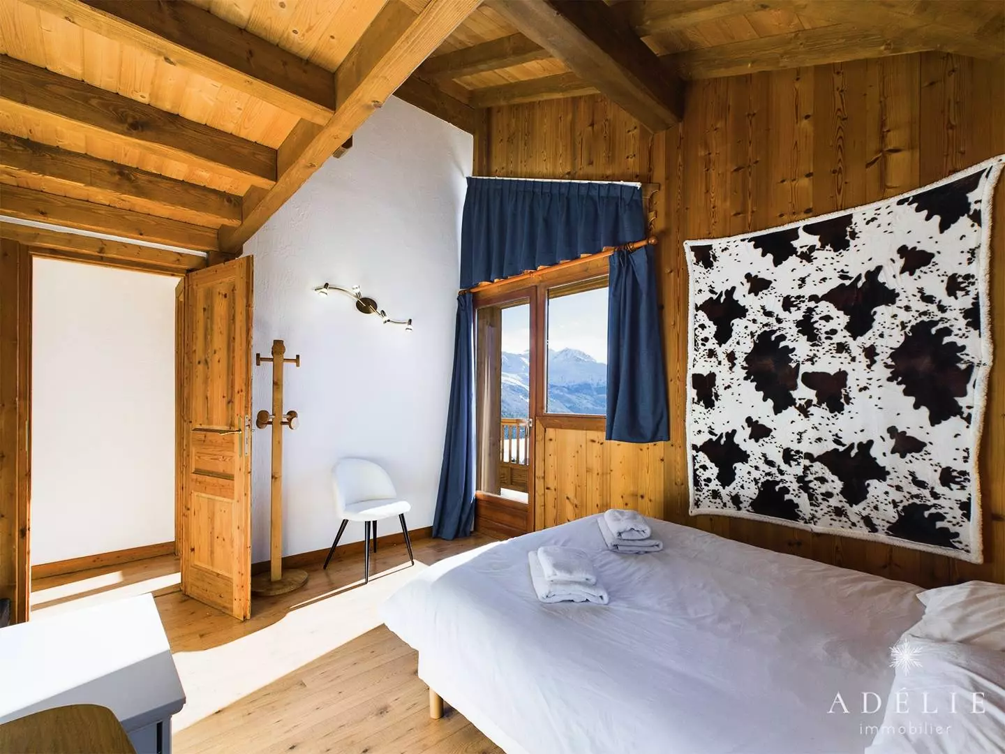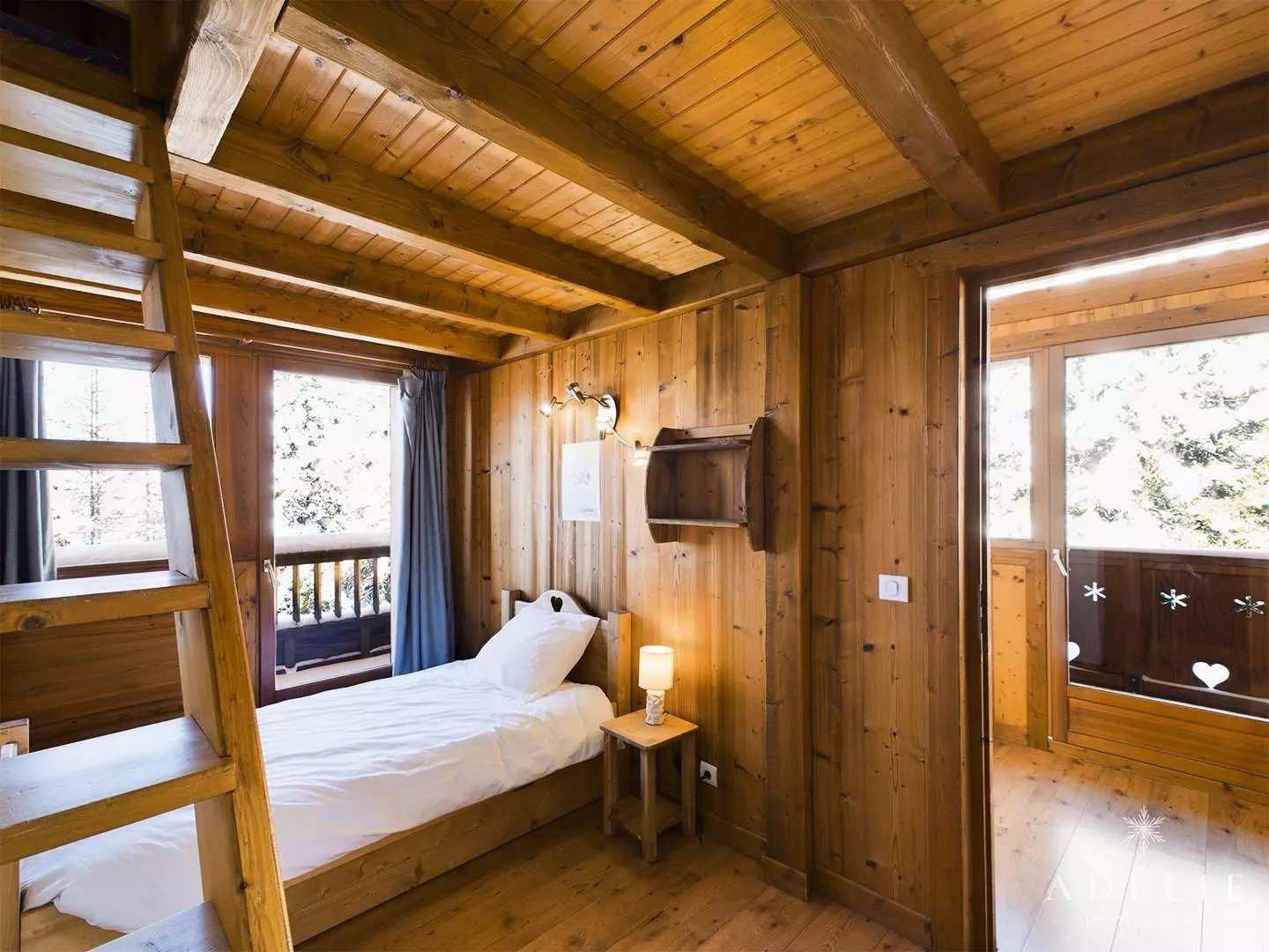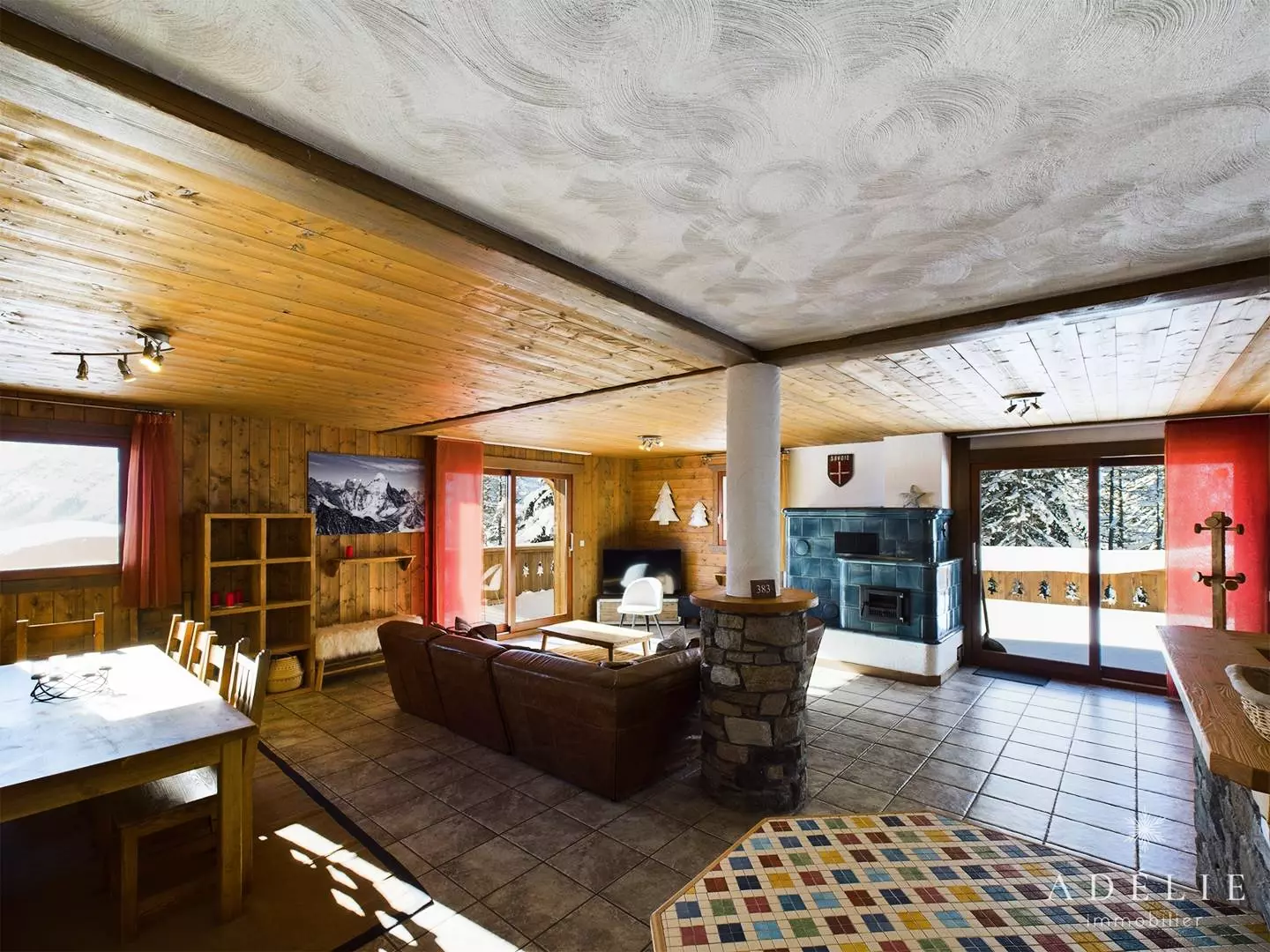 -on the 2nd floor: living room, bathroom with WC, 2 bedrooms with mezzanine 1m80 1 with double bed and single bed, 1 with 2 single beds +2 single beds, 1 master bedroom with double bed. Private balcony of 13 m2.