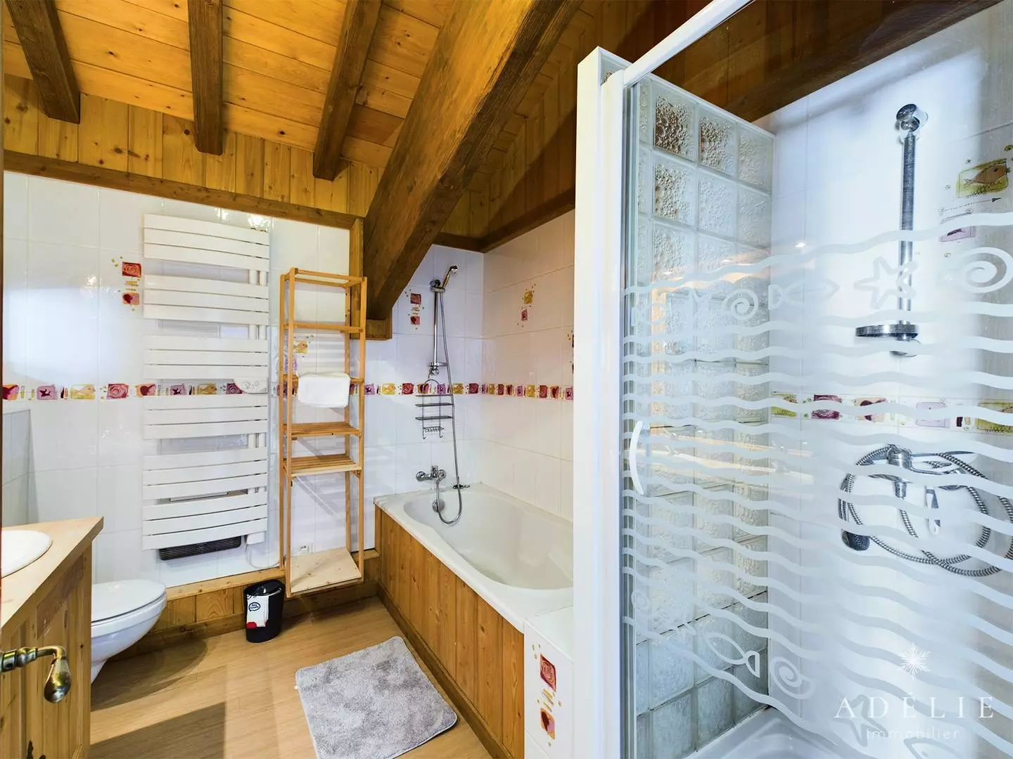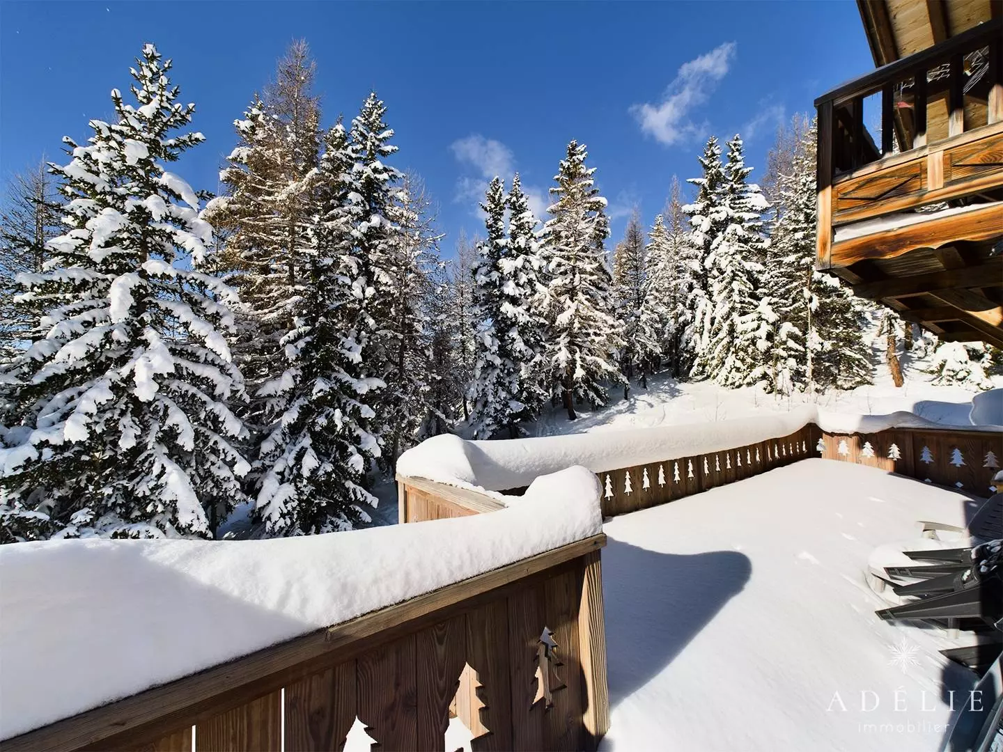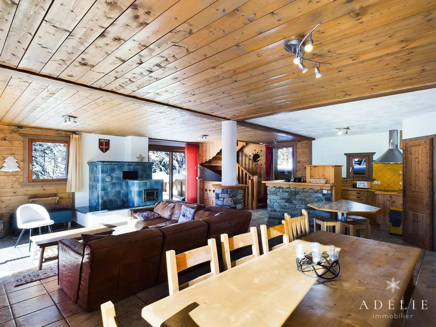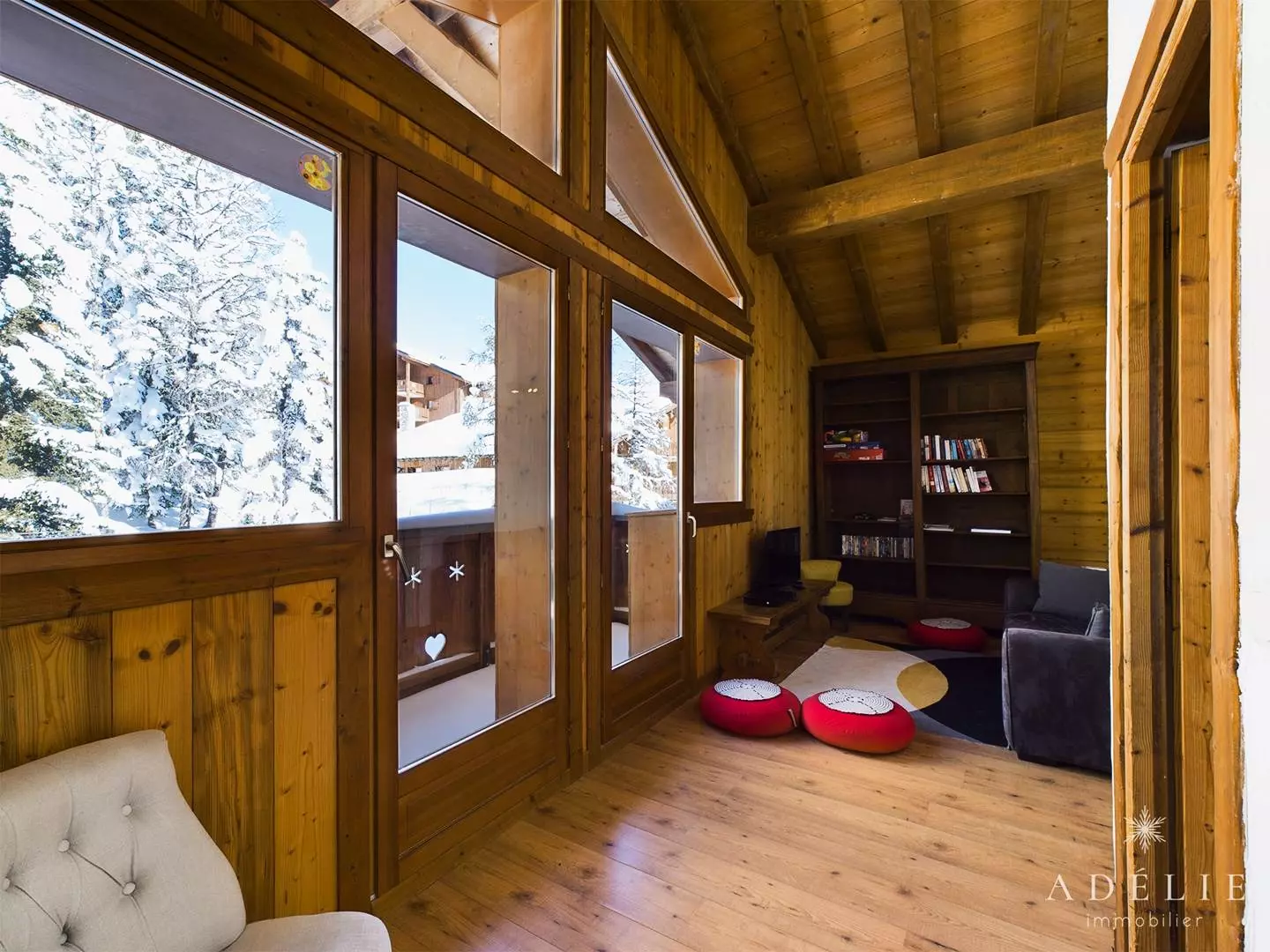 -on the 2nd floor: living room, bathroom with WC, 2 bedrooms with mezzanine 1m80 1 with double bed and single bed, 1 with 2 single beds +2 single beds, 1 master bedroom with double bed. Private balcony of 13 m2.