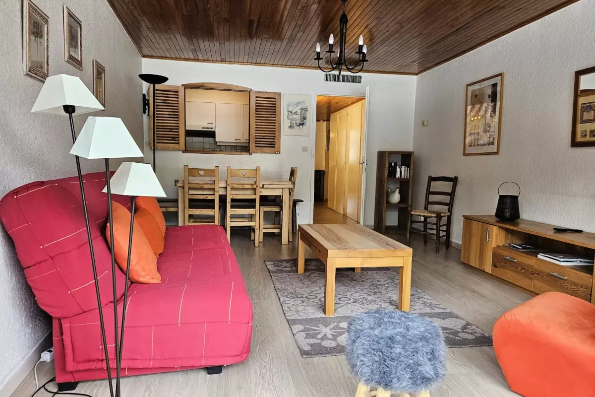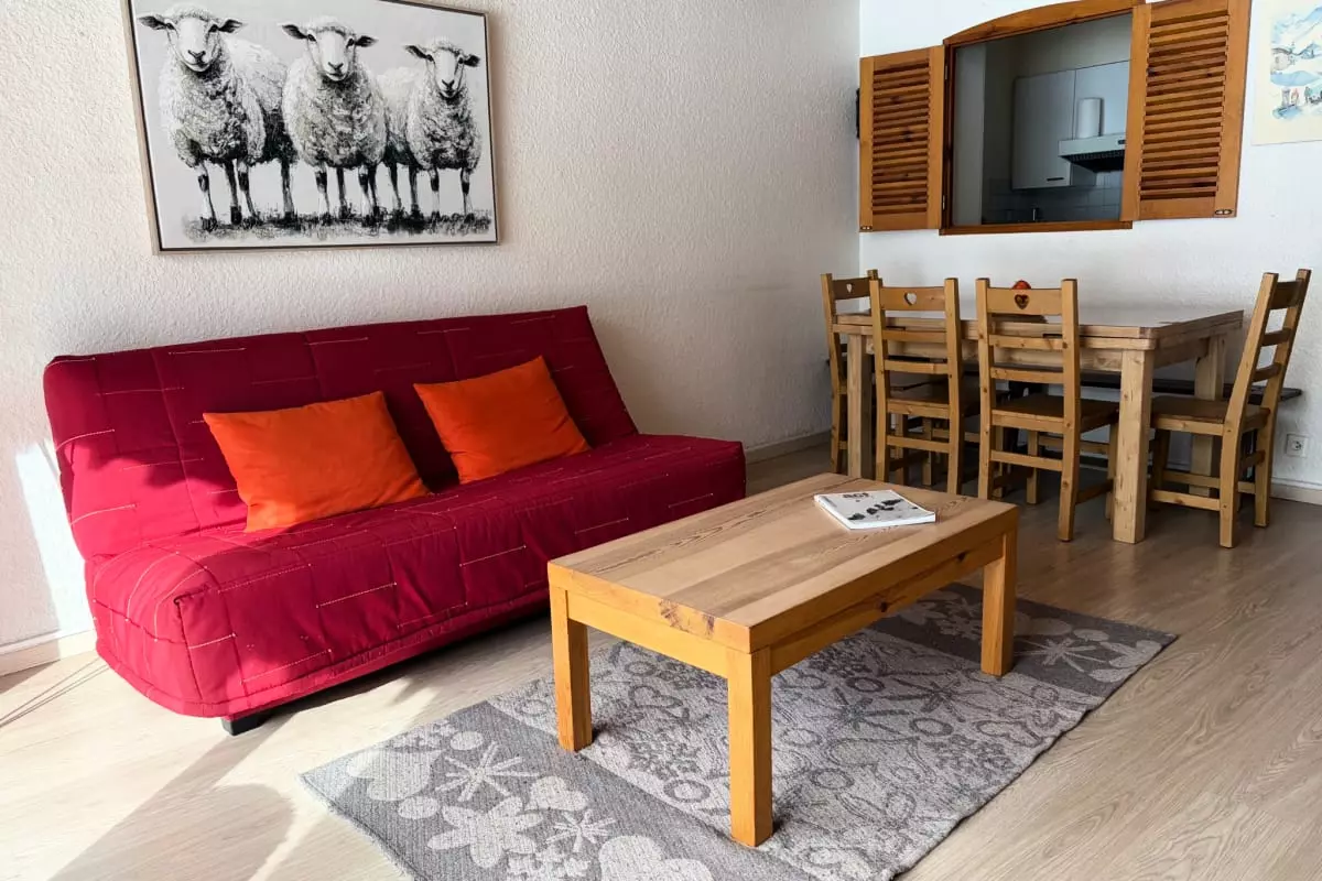 - a living room with a convertible sofa to relax after a day of walking.