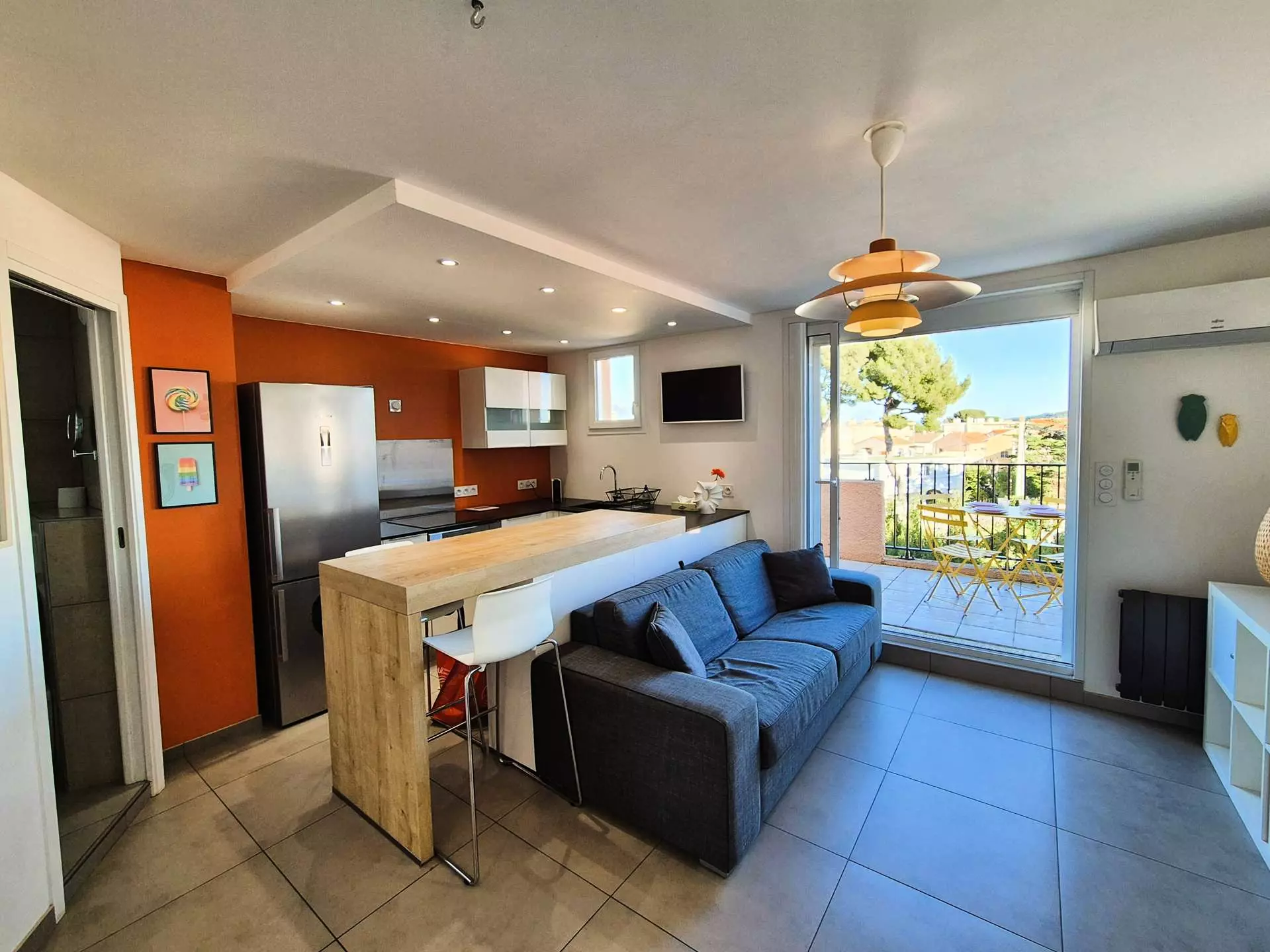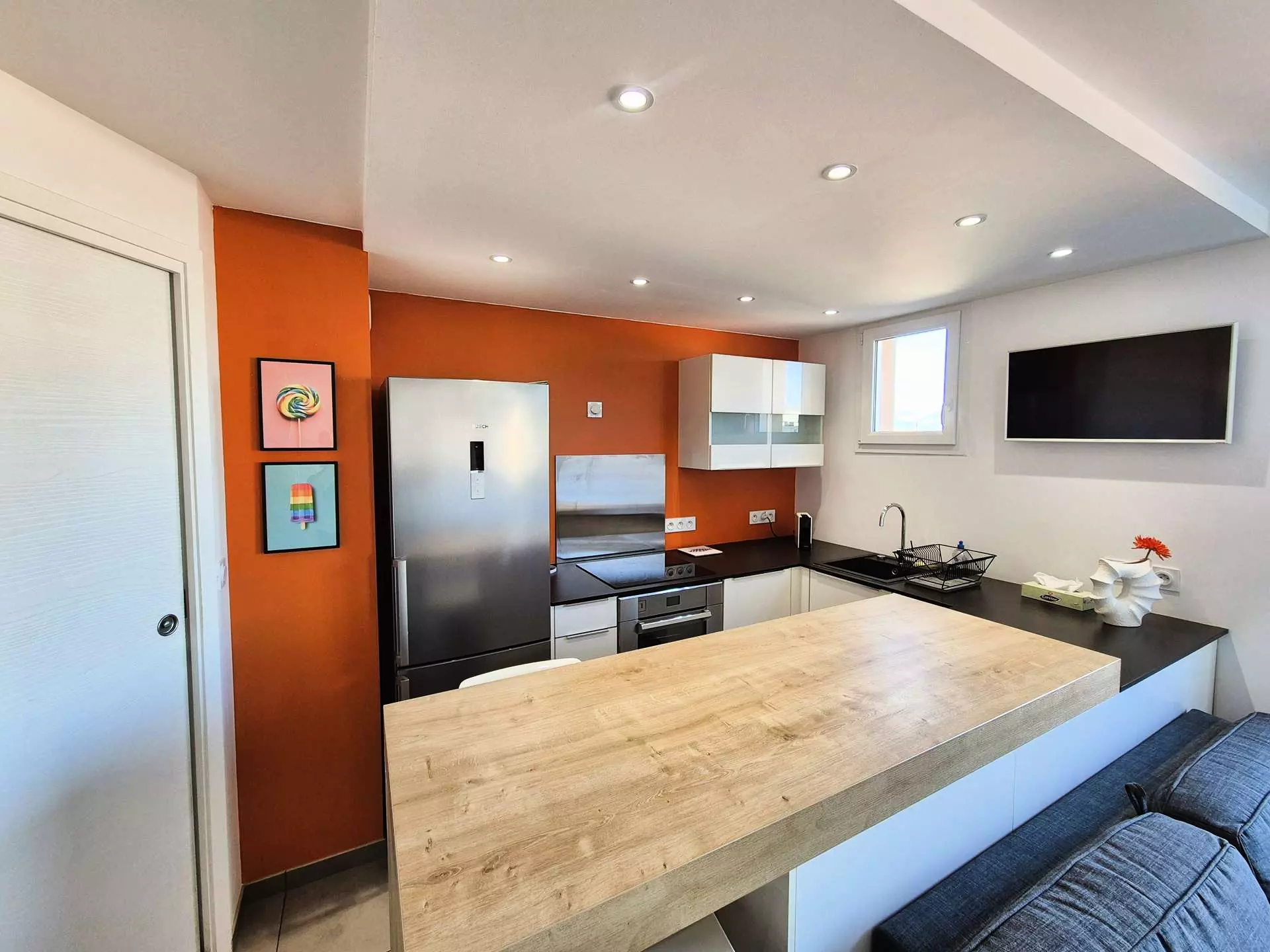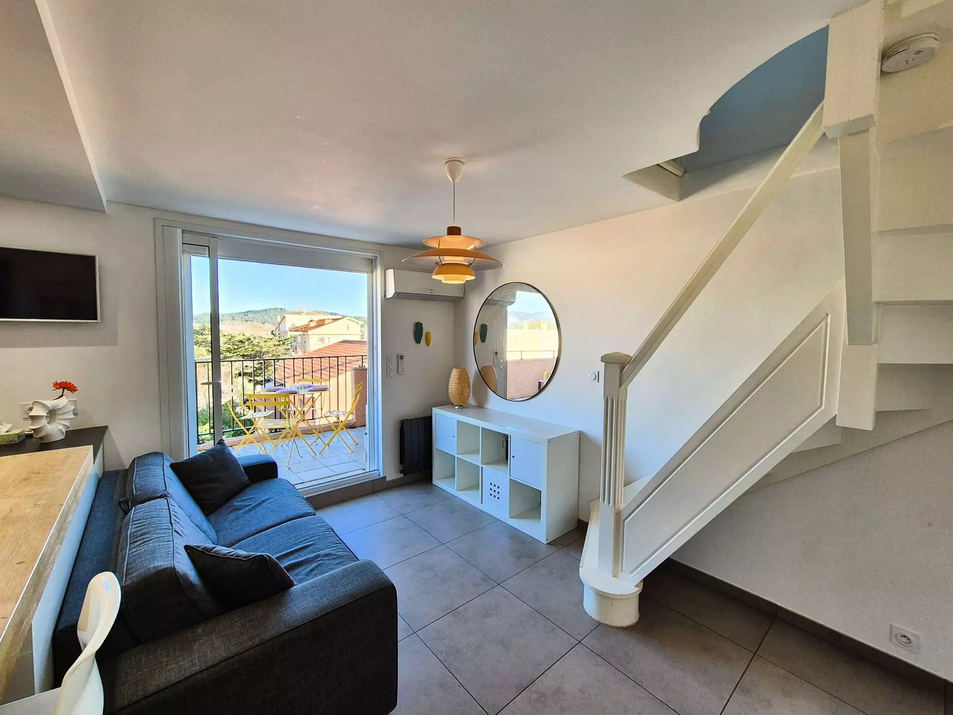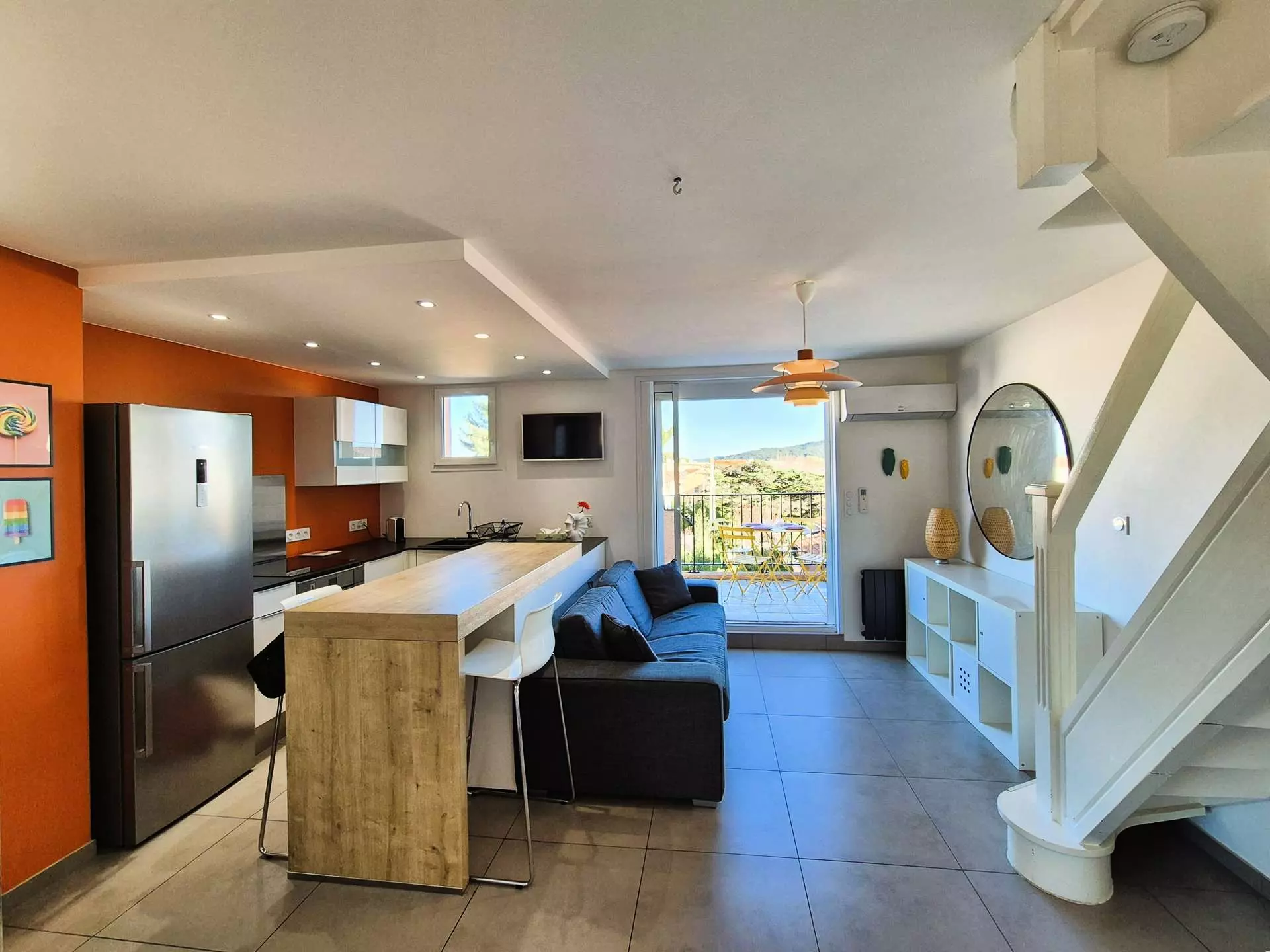 Magnificent contemporary duplex, all comfort, comprising a 26 m² living room and a 10 m² mezzanine under the eaves converted into a sleeping area.