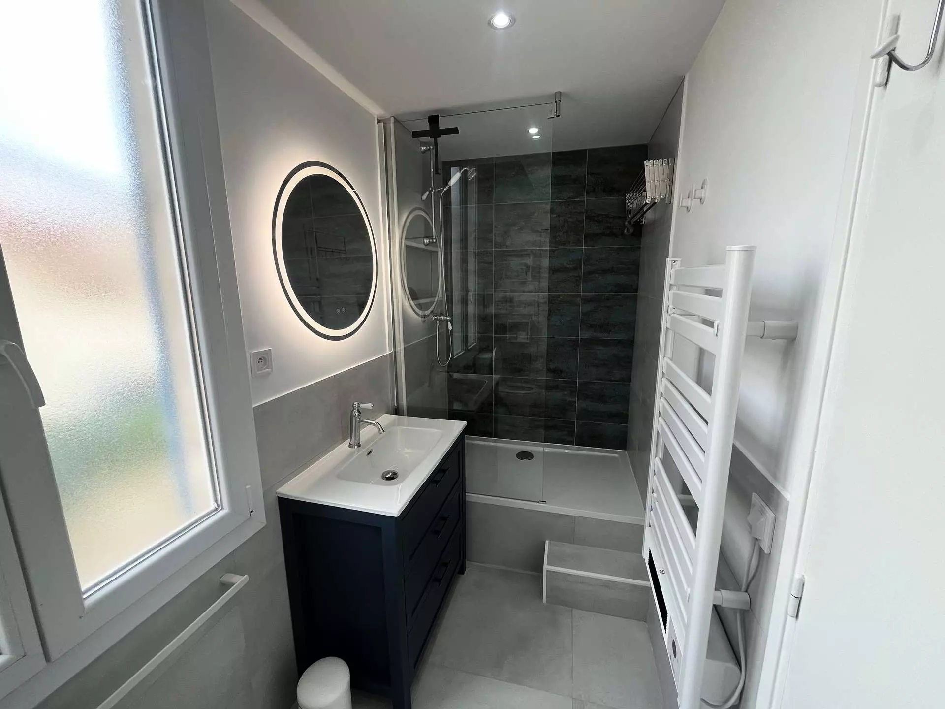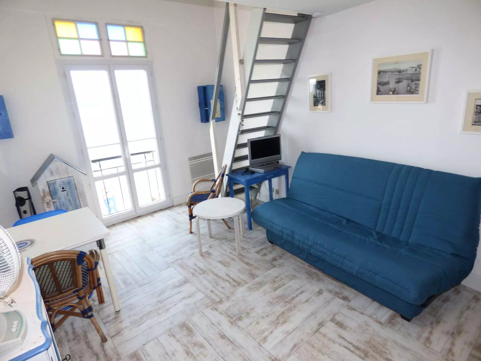 Small residence on 1 floor (no elevator), pretty mezzanine studio of 27 m², sleeps 4, on the 1st and last floor, south facing, kitchen area (electric hob, extractor hood, 1 microwave-oven combination, 1 table top refrigerator, electric coffee maker, kettle, toaster... Living room with 2-seater sofa bed, television, bathroom, WC included, mezzanine (attention, Miller's ladder style staircase) with a 140 double bed, fan, vacuum cleaner, internet...