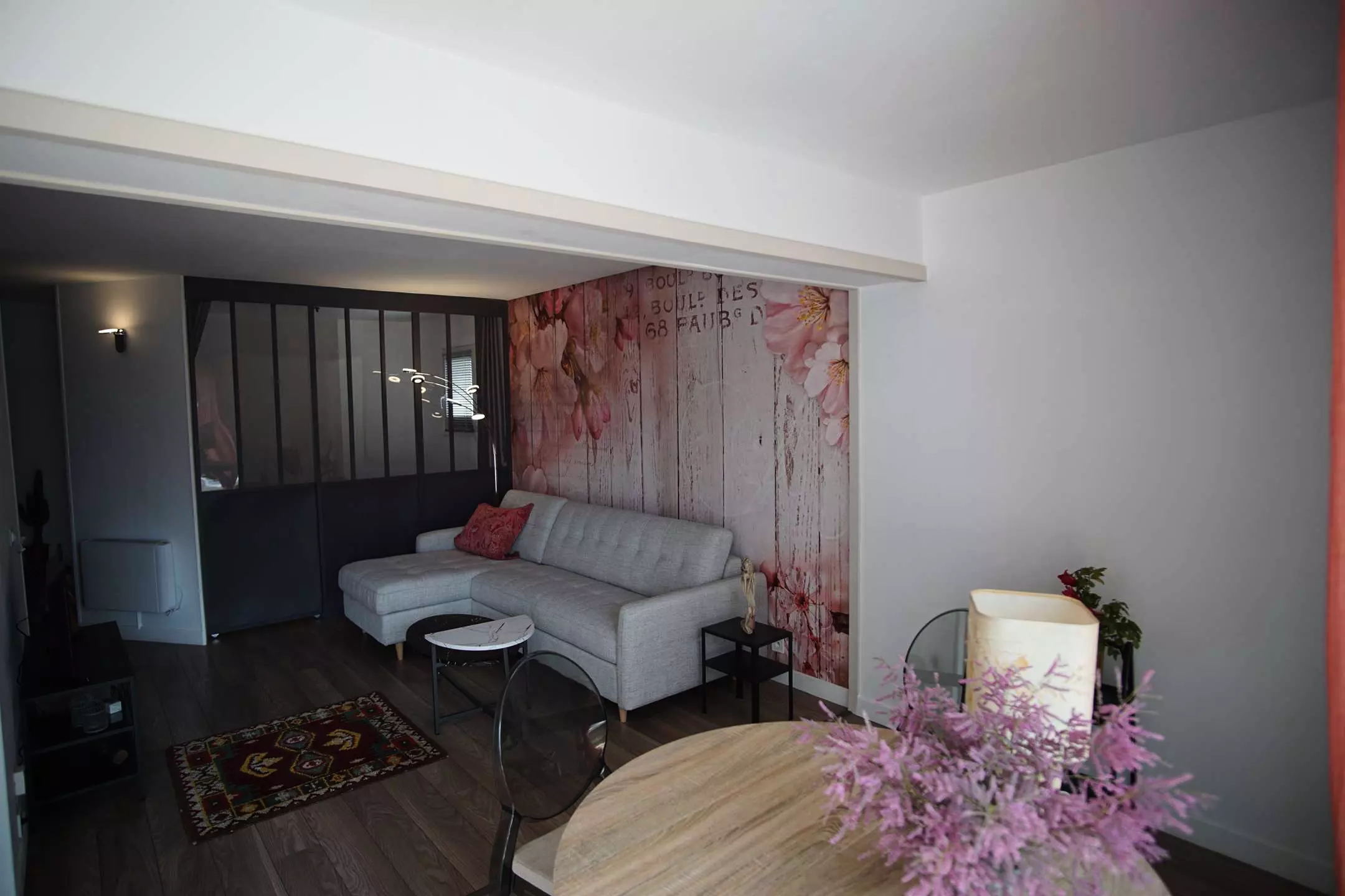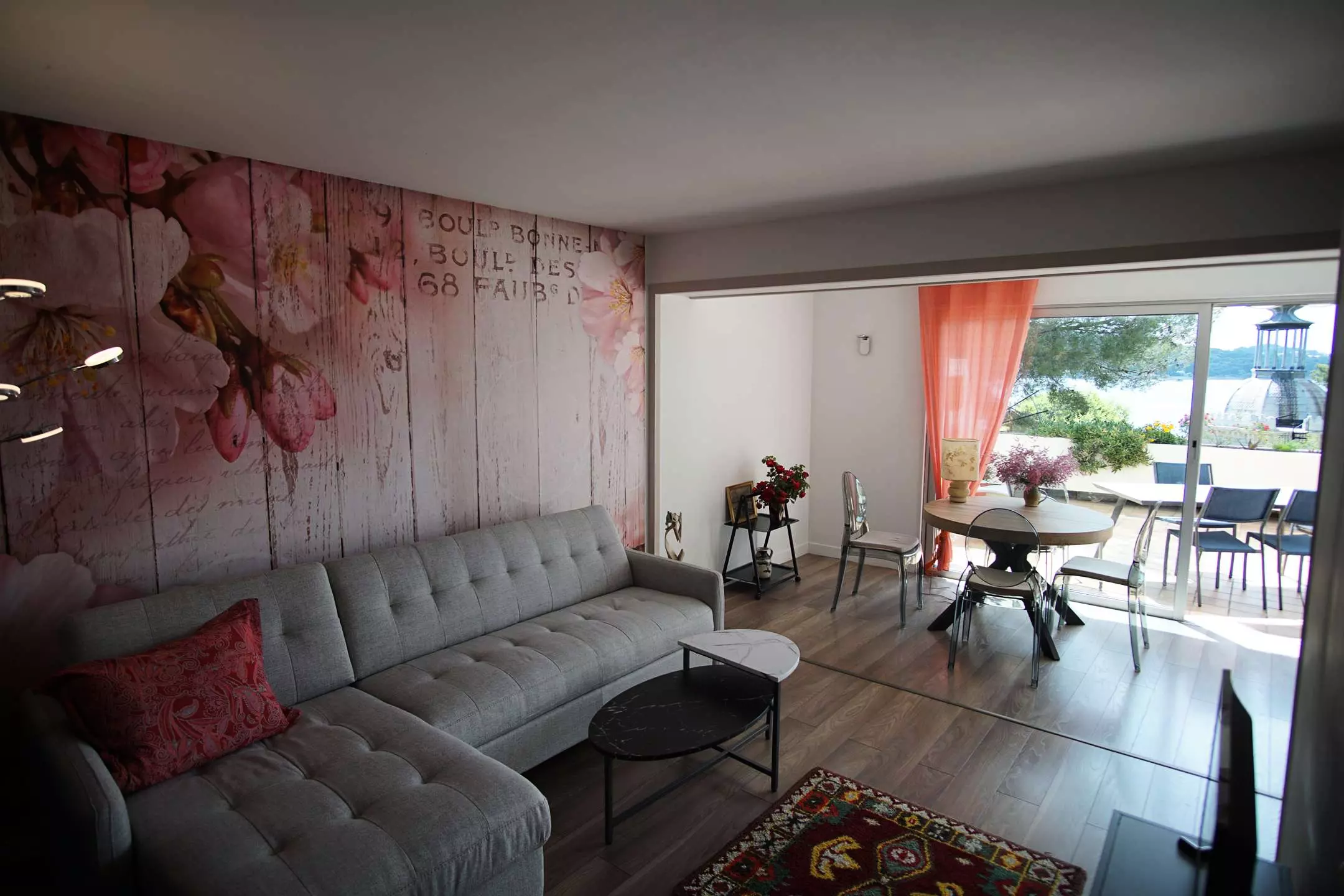 Large, bright living room, 2-seater sofa bed with fan